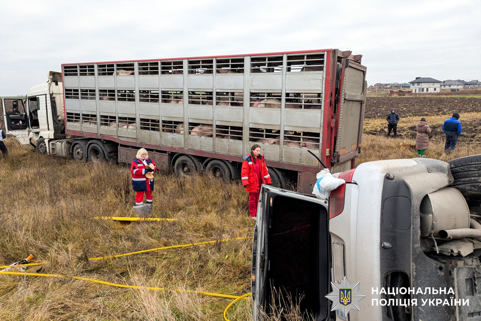 Попередньо встановлено, що водій автомобіля «BMW X5», 55-річний житель Колоденки, виїхав на зустрічну смугу, де допустив зіткнення із вантажівкою «MAN», яка була завантажена тваринами. Від удару обидва транспортні засоби злетіли у кювет, а позашляховик — ще й перекинувся.