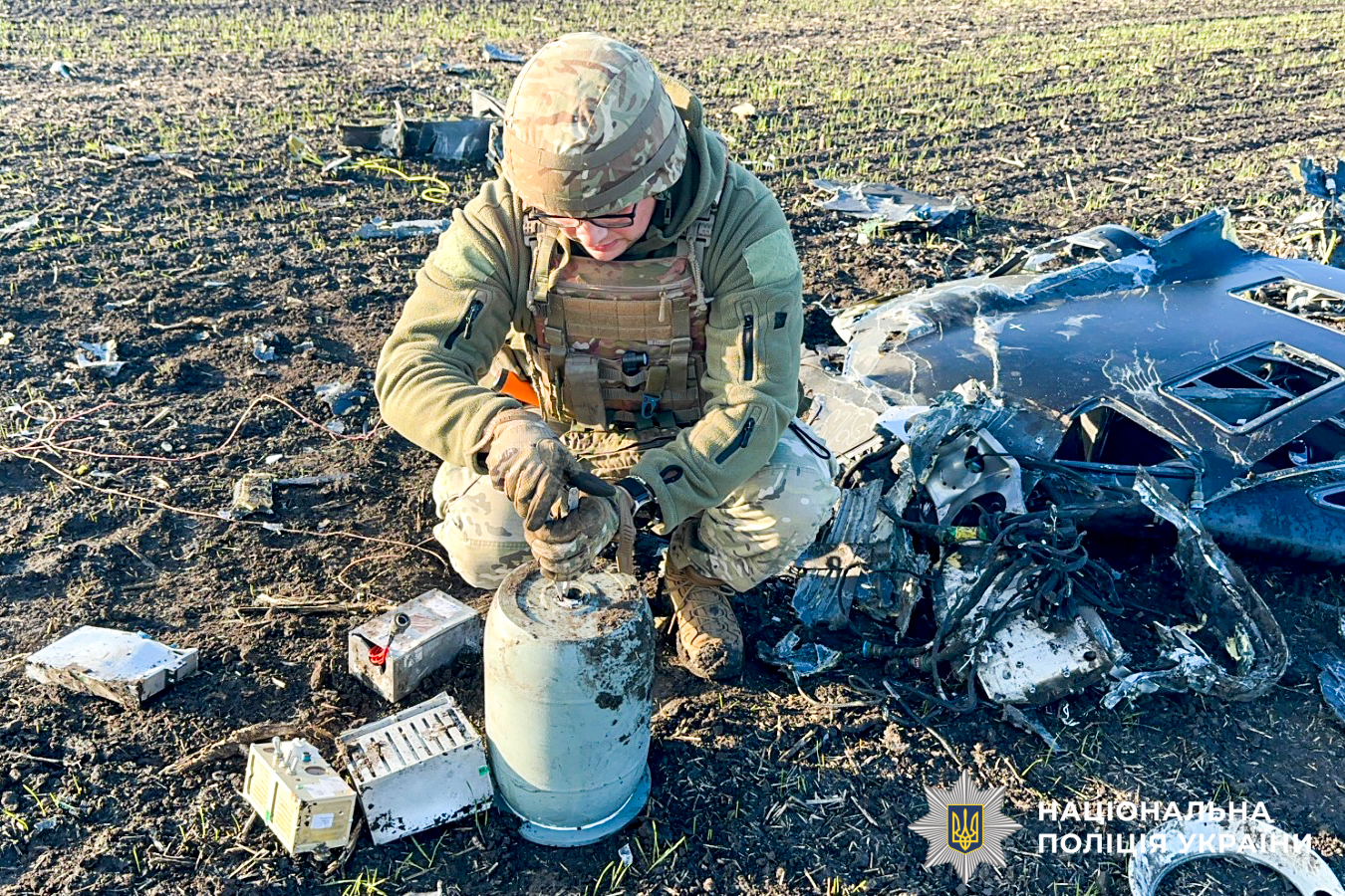 Крім того, до поліцейських звернувся місцевий фермер, який під час польових робіт виявив уламки БПЛА. Фахівці вибухотехнічної служби поліції Рівненщини негайно прибули на місці події та розрядили бойову частину шахеду, яка не розірвалась. Потому, відвезли на підривний майданчик та знешкодили.