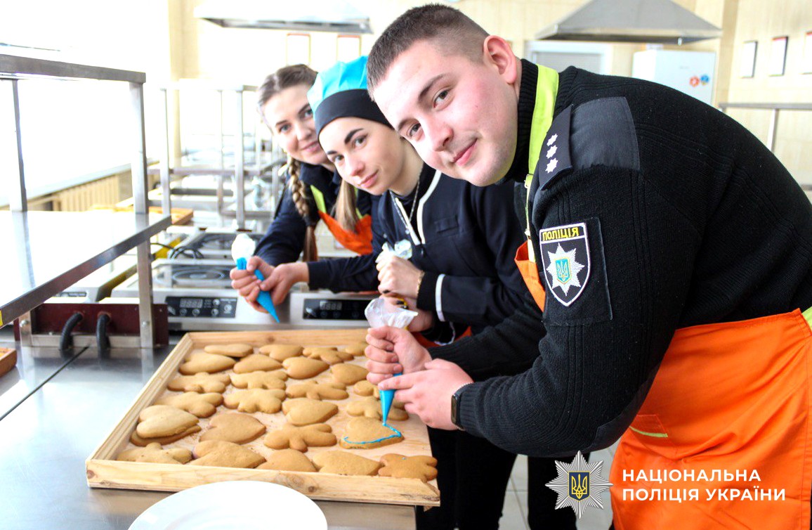 Разом із дітками, батьки яких боронять нас і нашу державу, поліцейські випікали смаколики у формі «сердечок» і «миколайчиків». Увесь виробничий процес відбувався під пильним керівництвом професійних кондитерів-викладачів.