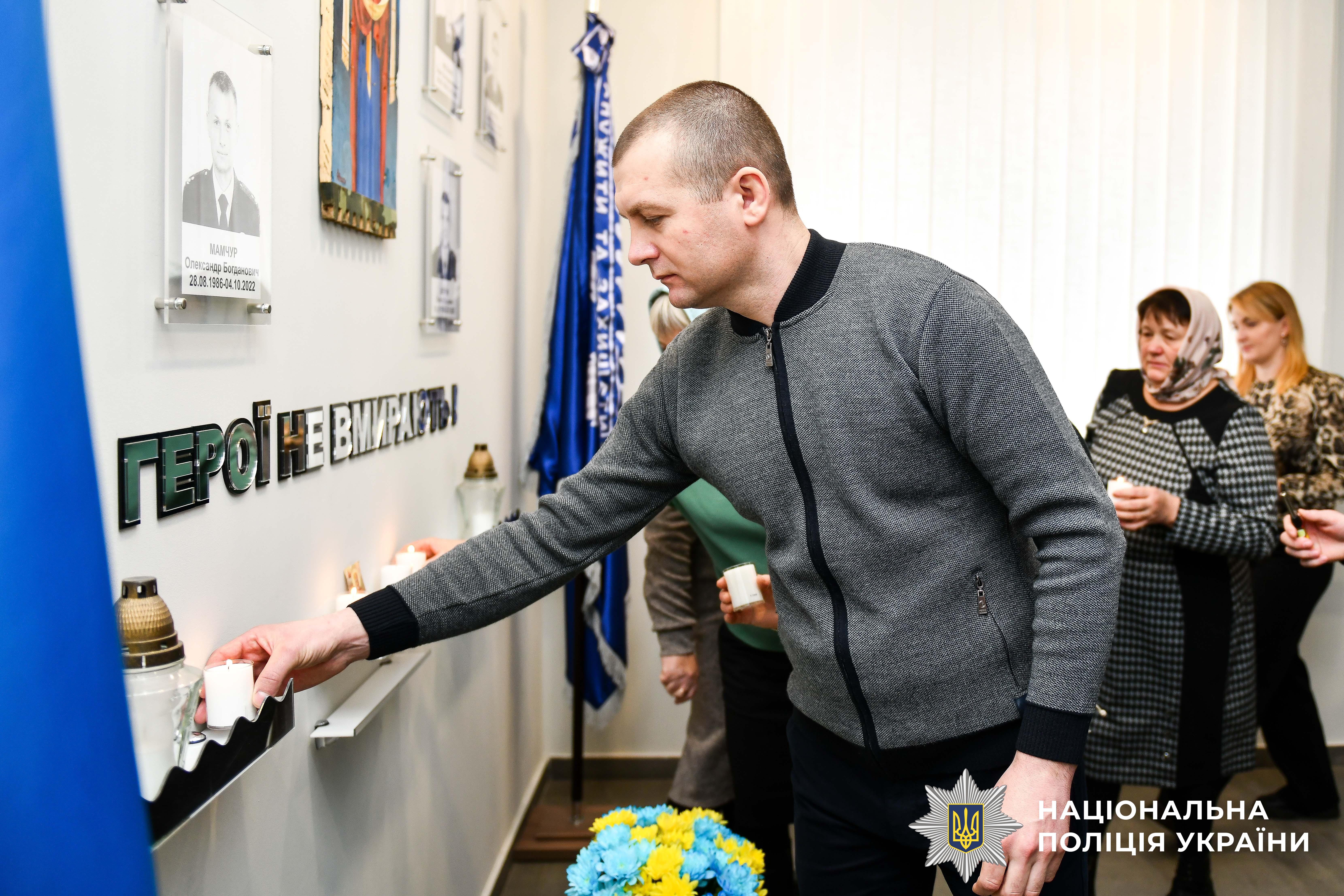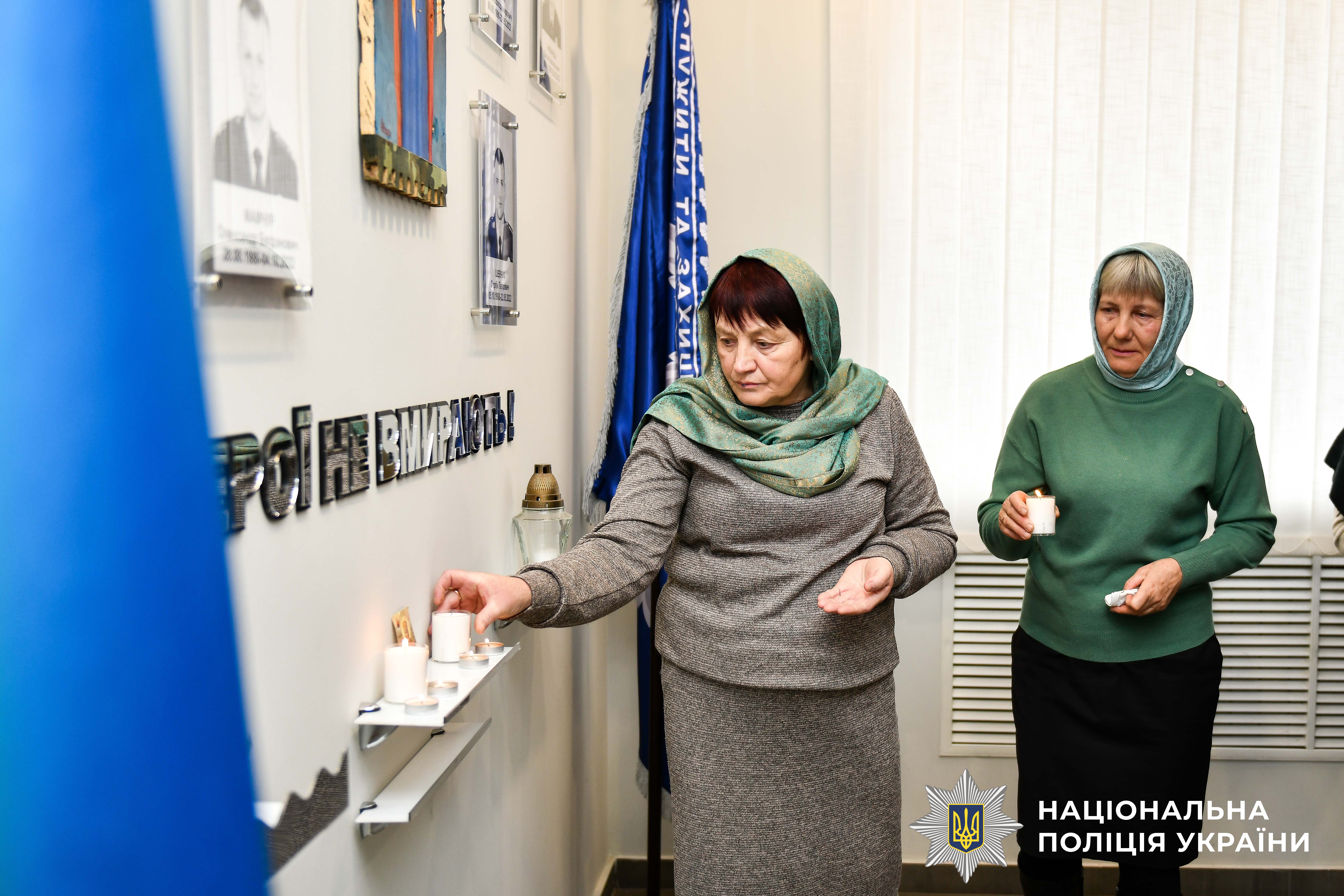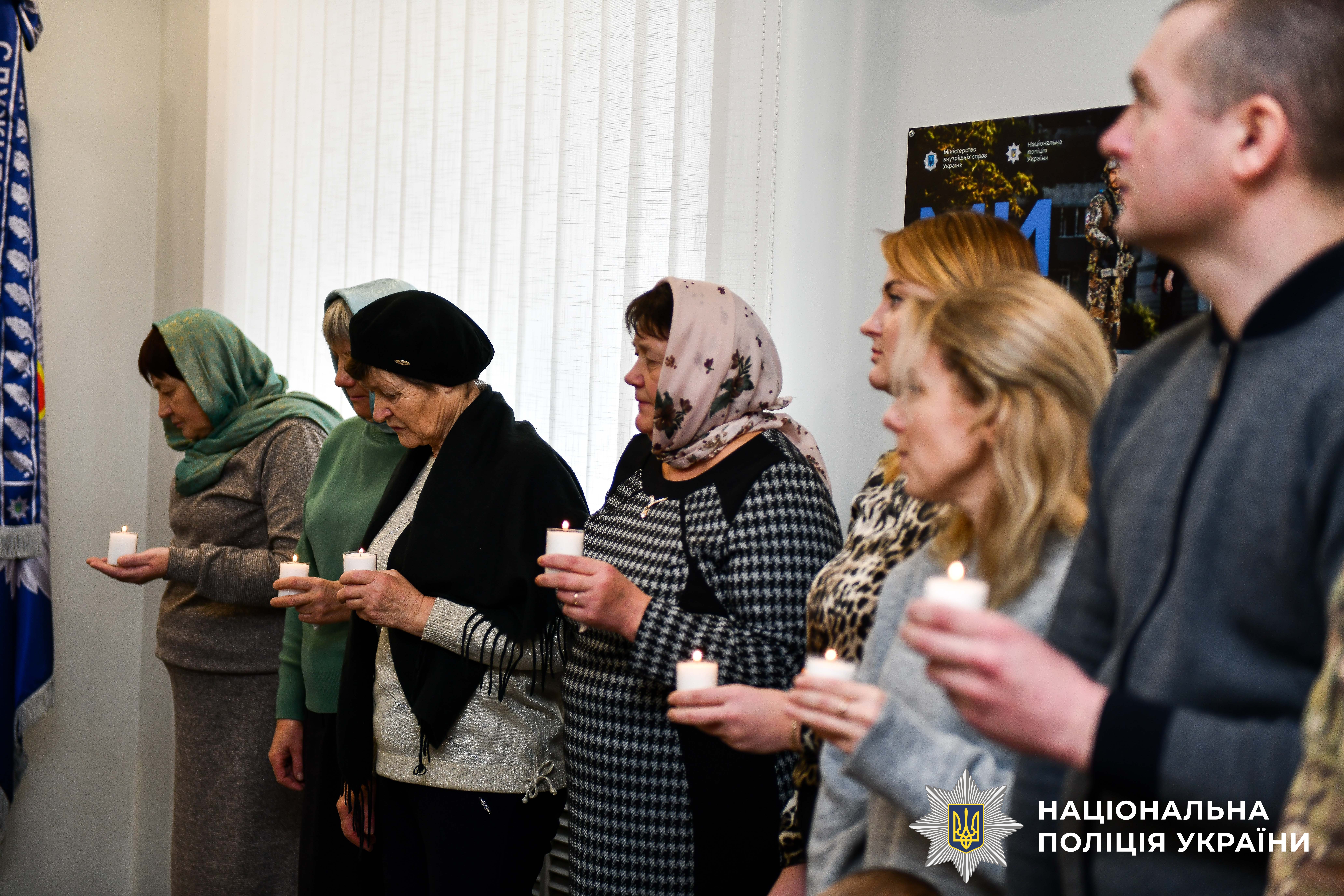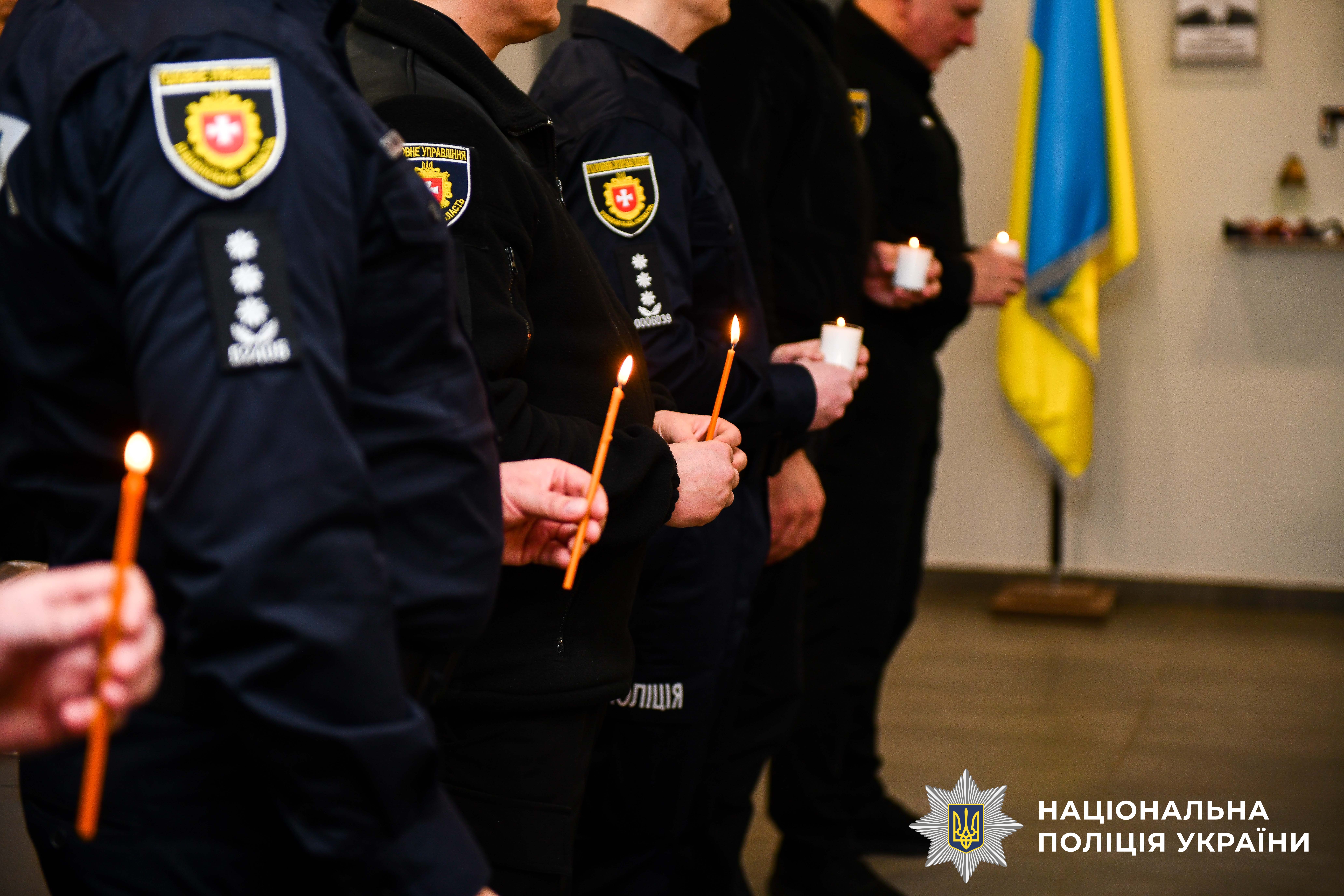 Біля «Дошки пам’яті» сьогодні зібралися працівники поліції області, аби схилити голови в пам'ять про тих, хто загинув за незалежність України. Долучаються до нього і родини Героїв. Їхні батьки, дружини та діти запалюють свічки за тих, хто поклав свої життя у боротьбі за волю України.