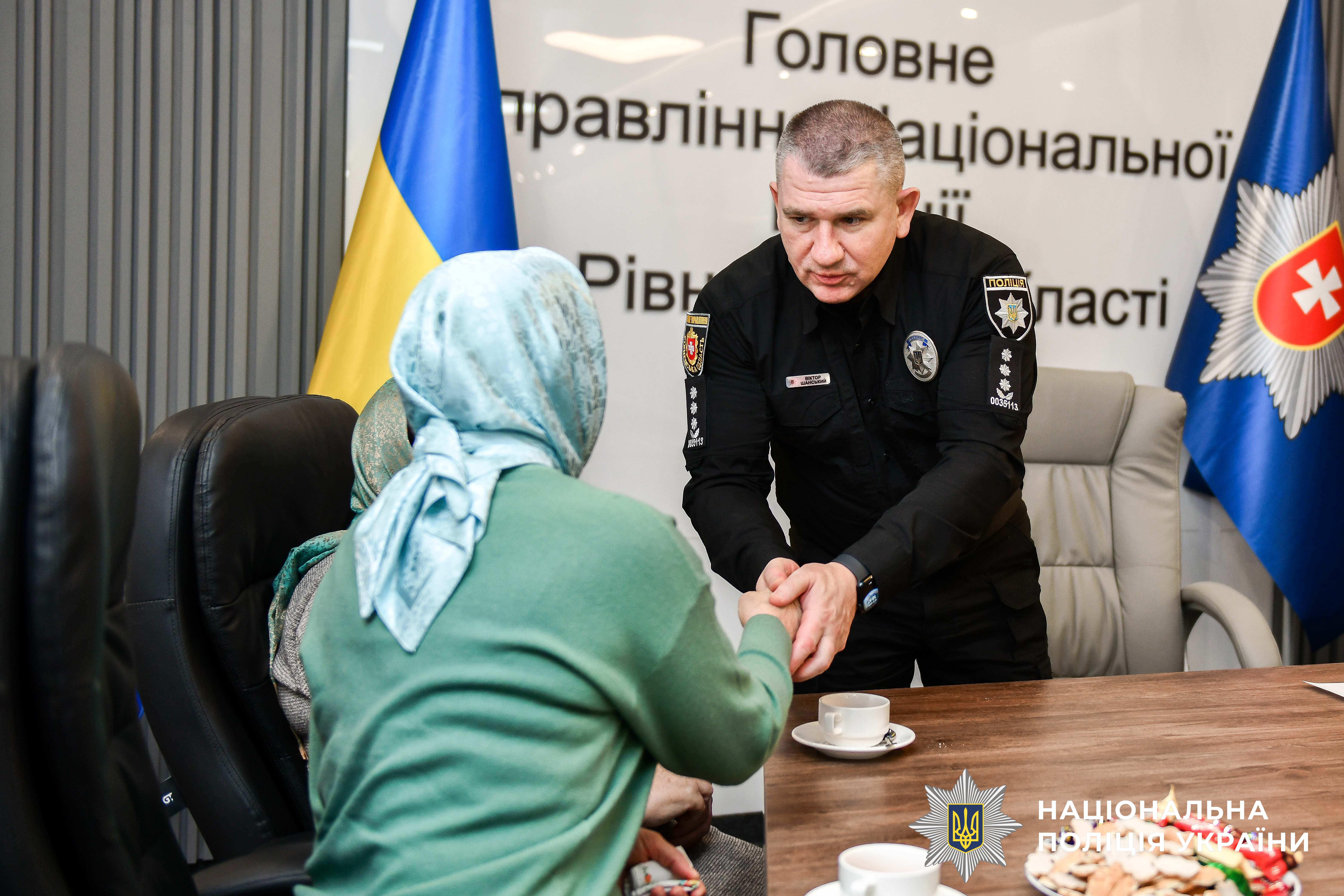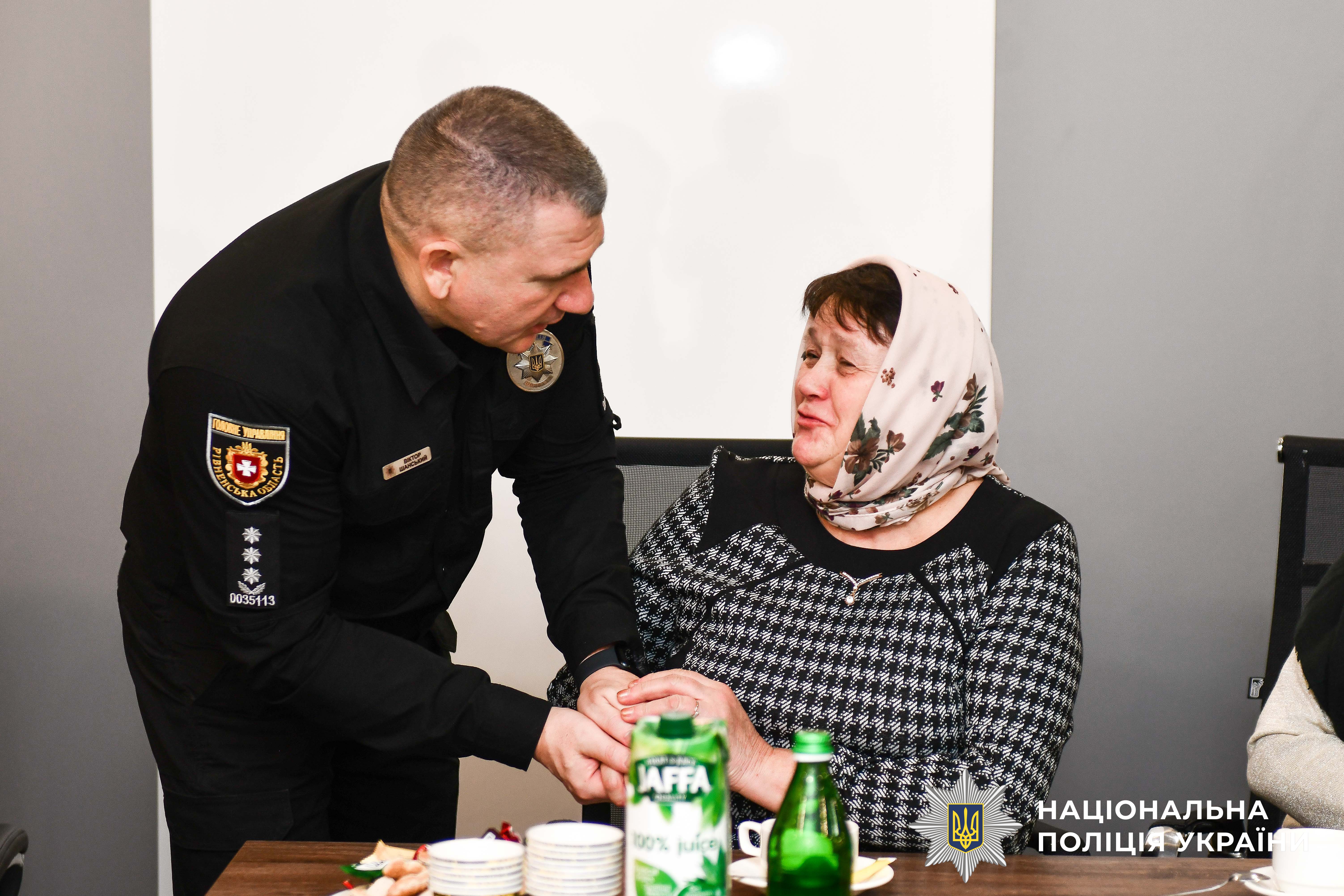 Після спільної молитви, за традицією, очільник поліції Рівненщини Віктор Шанський спілкується із родинами полеглих бійців: «Ми не можемо повернути час назад, проте низько вклоняємо голови за те, що Ви віддали найдорожче. Ми пам’ятаємо і шануємо».