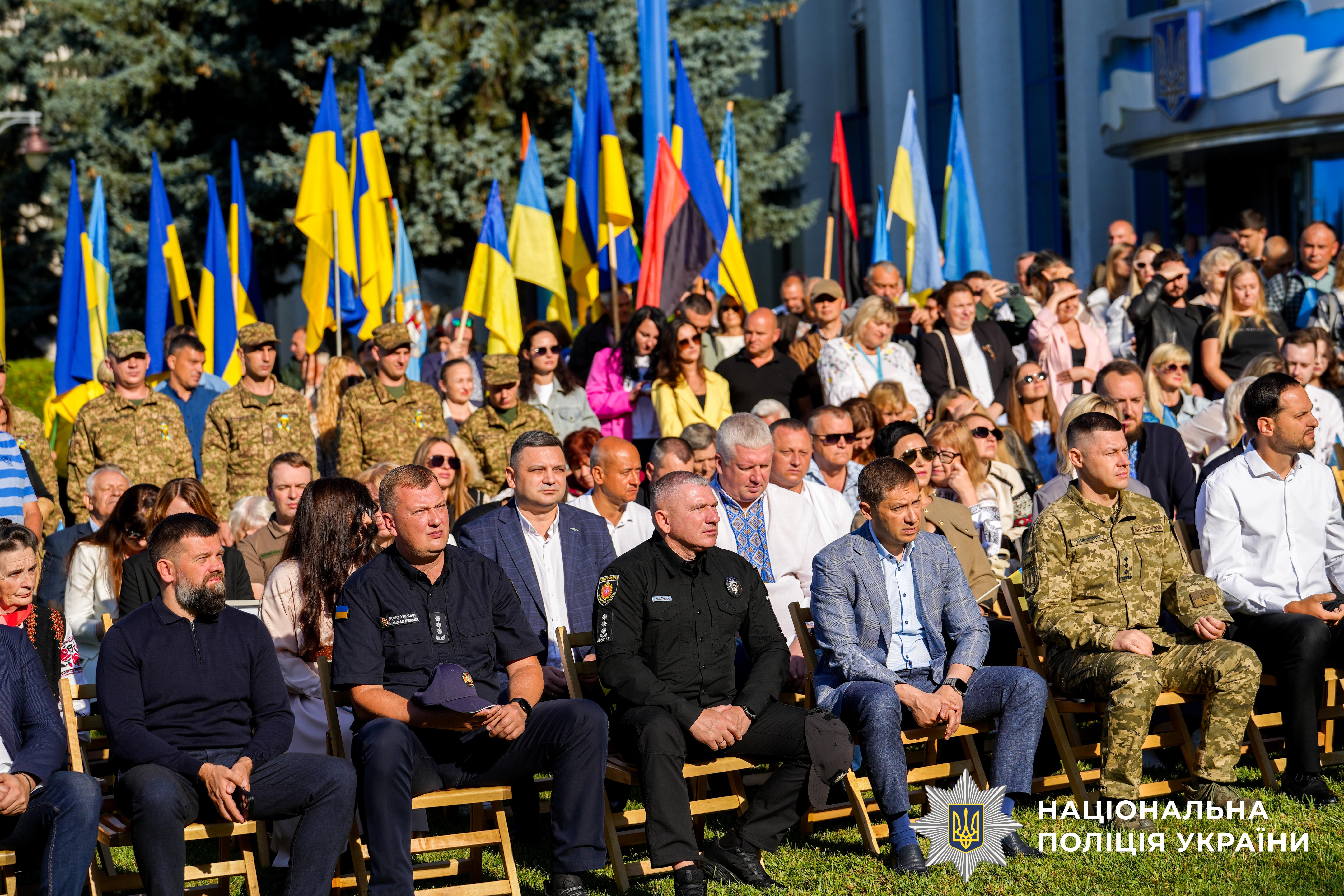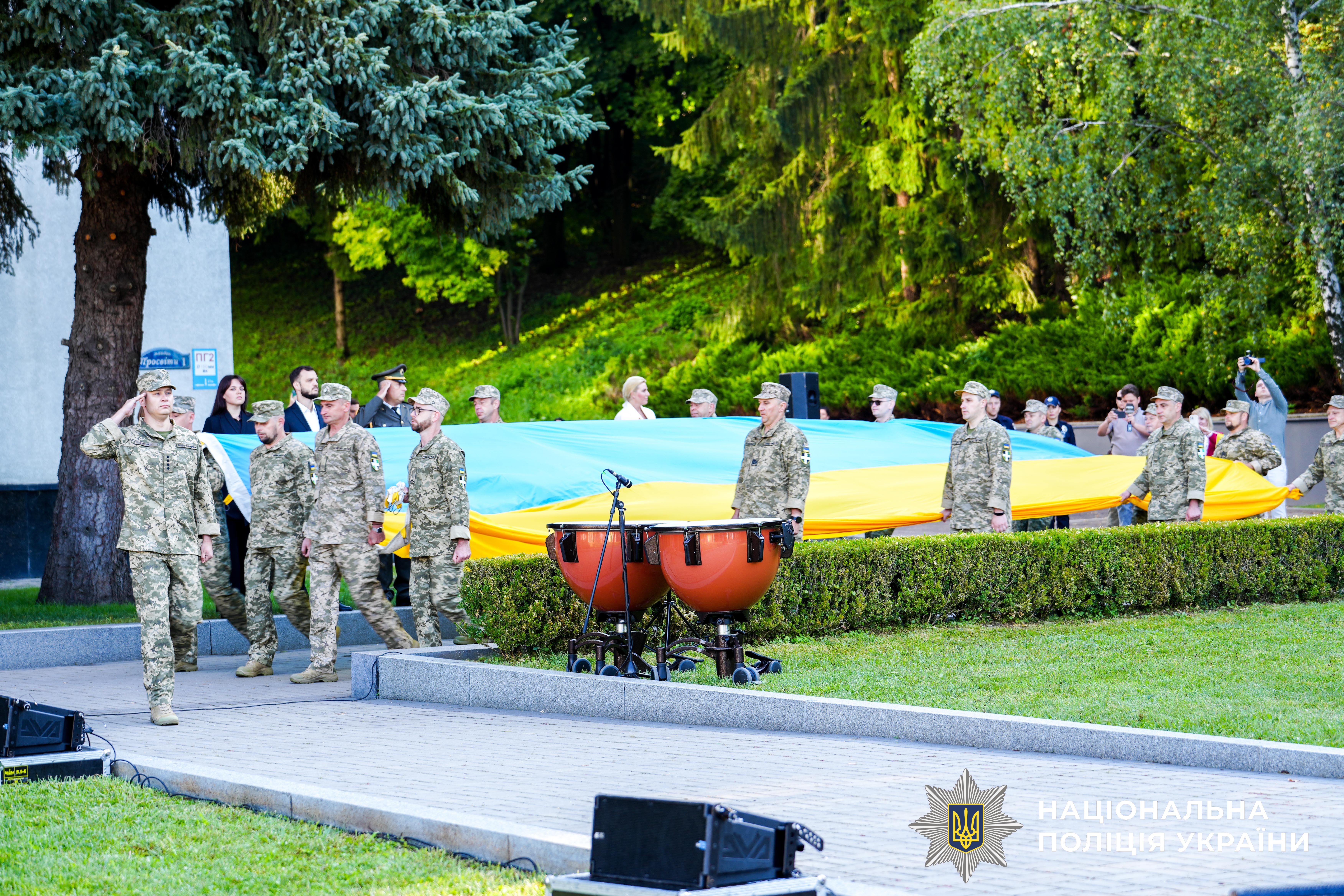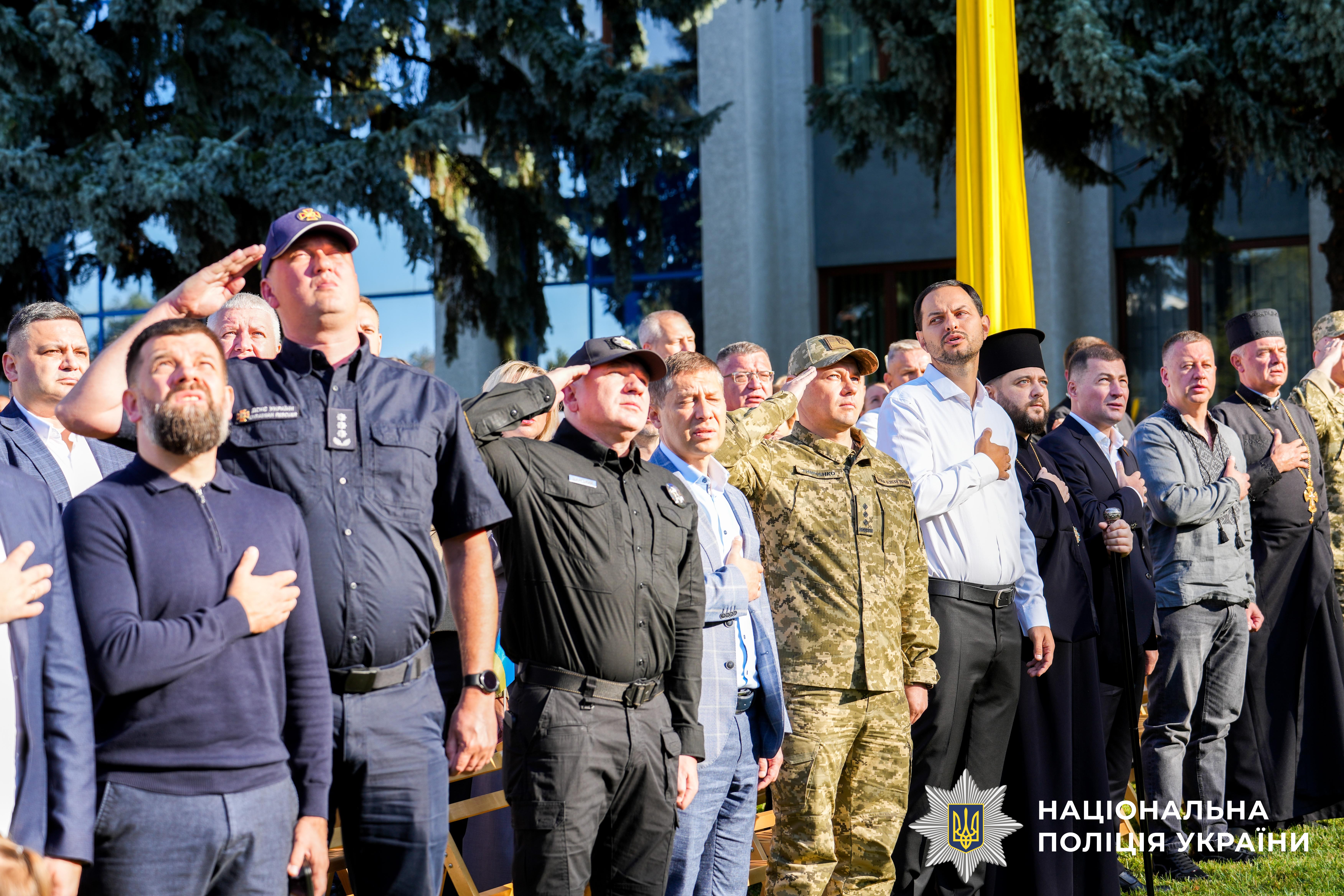 Участь в урочистому піднятті синьо-жовтого стяга взяв особисто начальник Головного управління Національної поліції області Віктор Шанський.