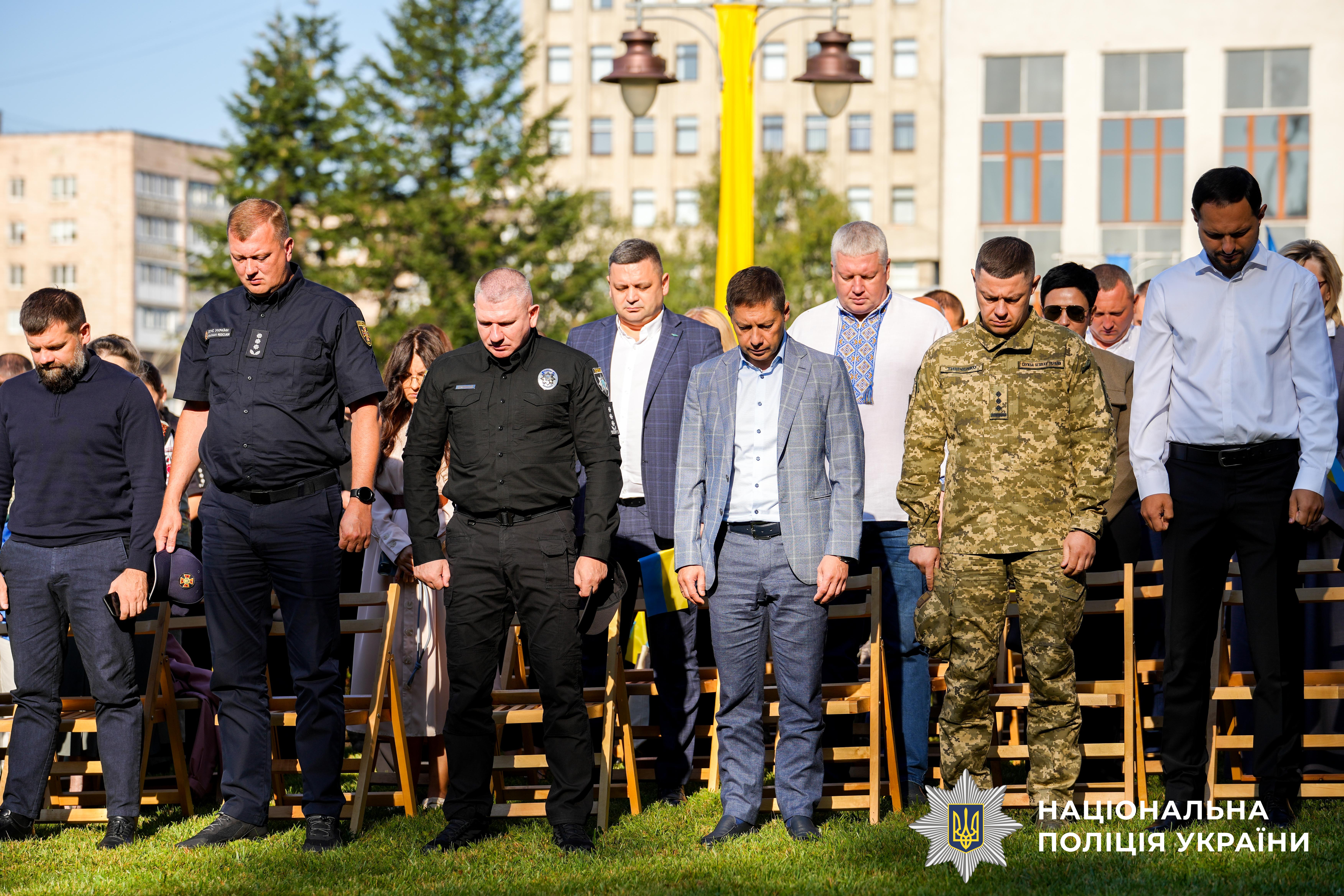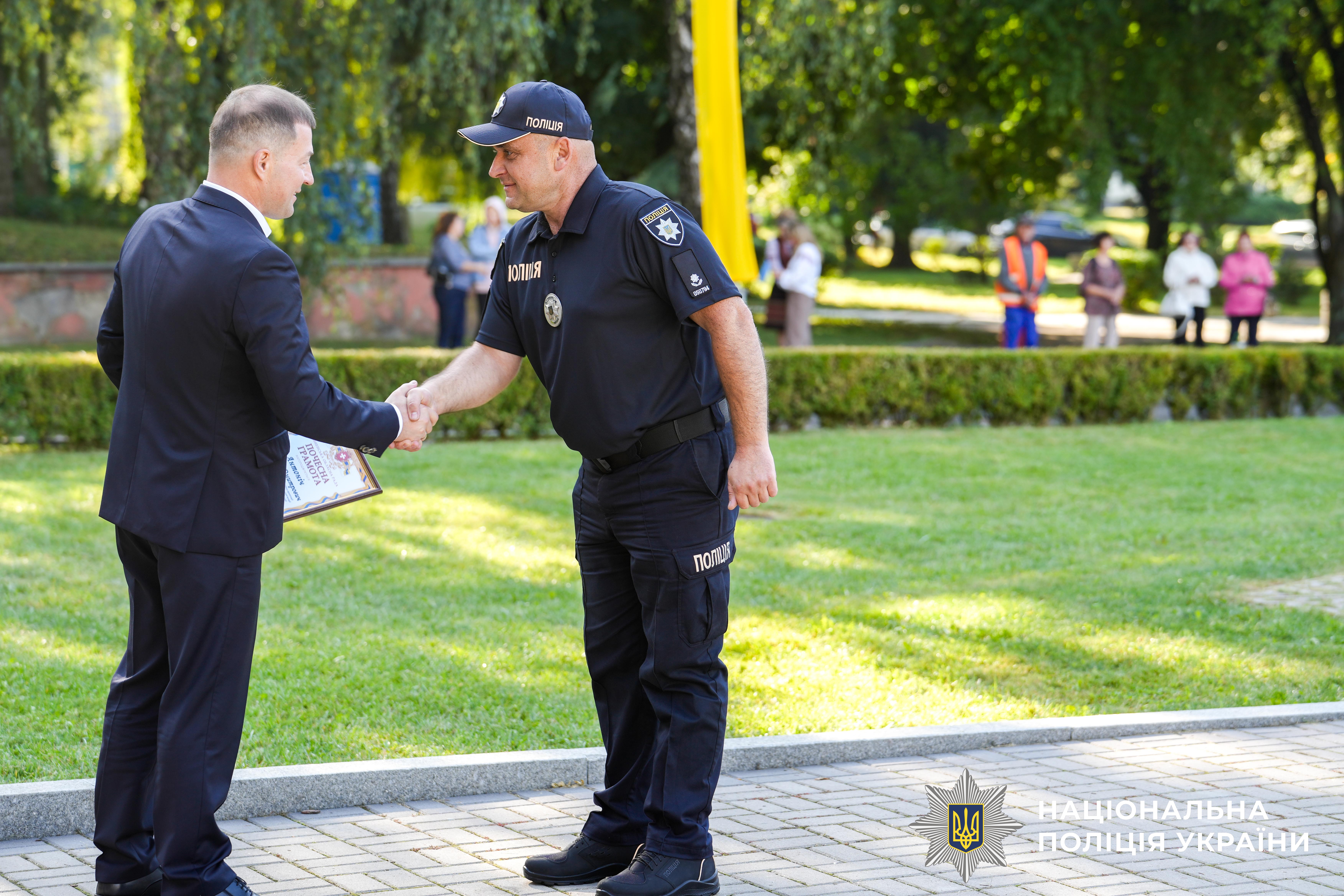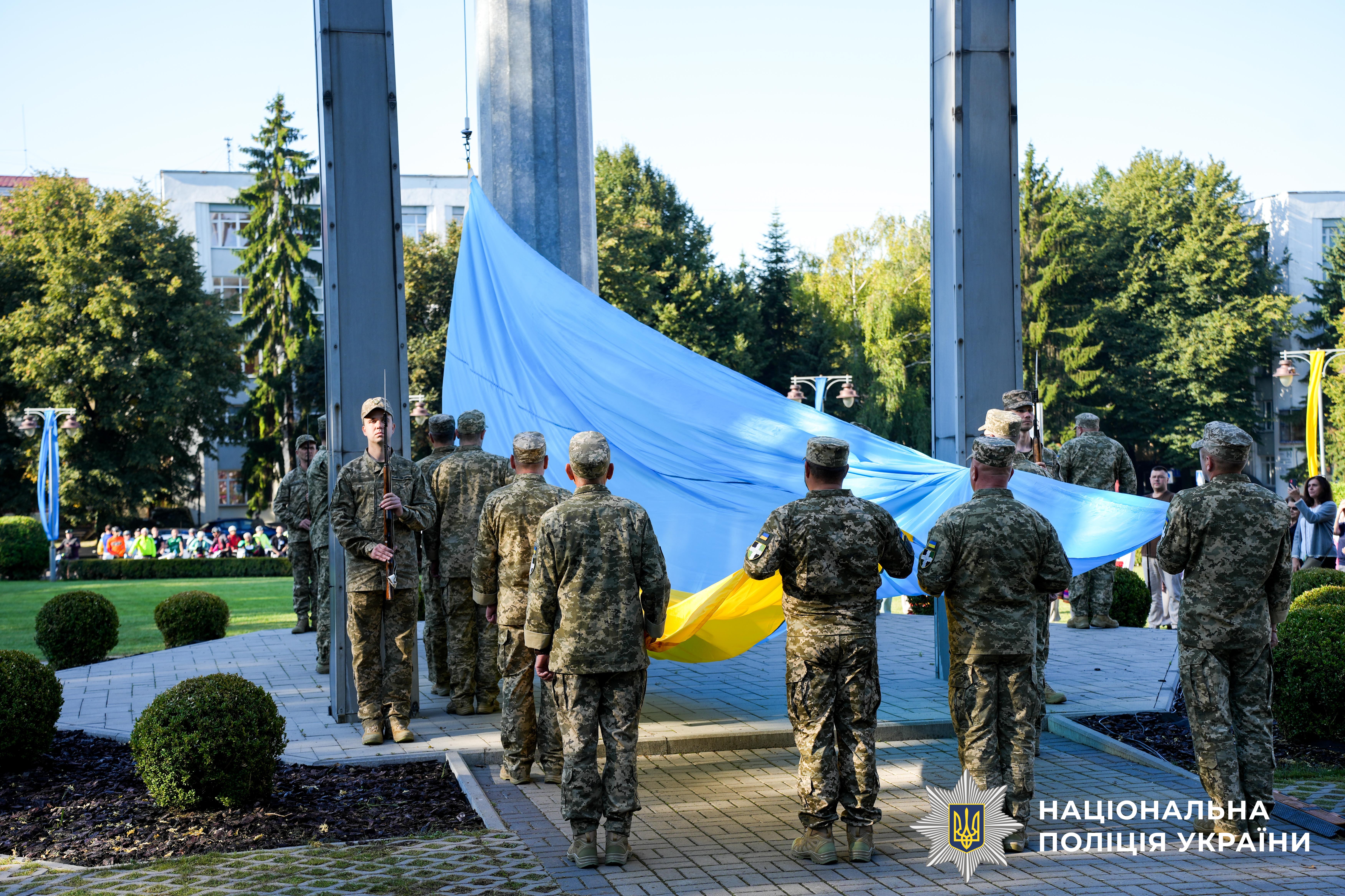 Участь в урочистому піднятті синьо-жовтого стяга взяв особисто начальник Головного управління Національної поліції області Віктор Шанський.