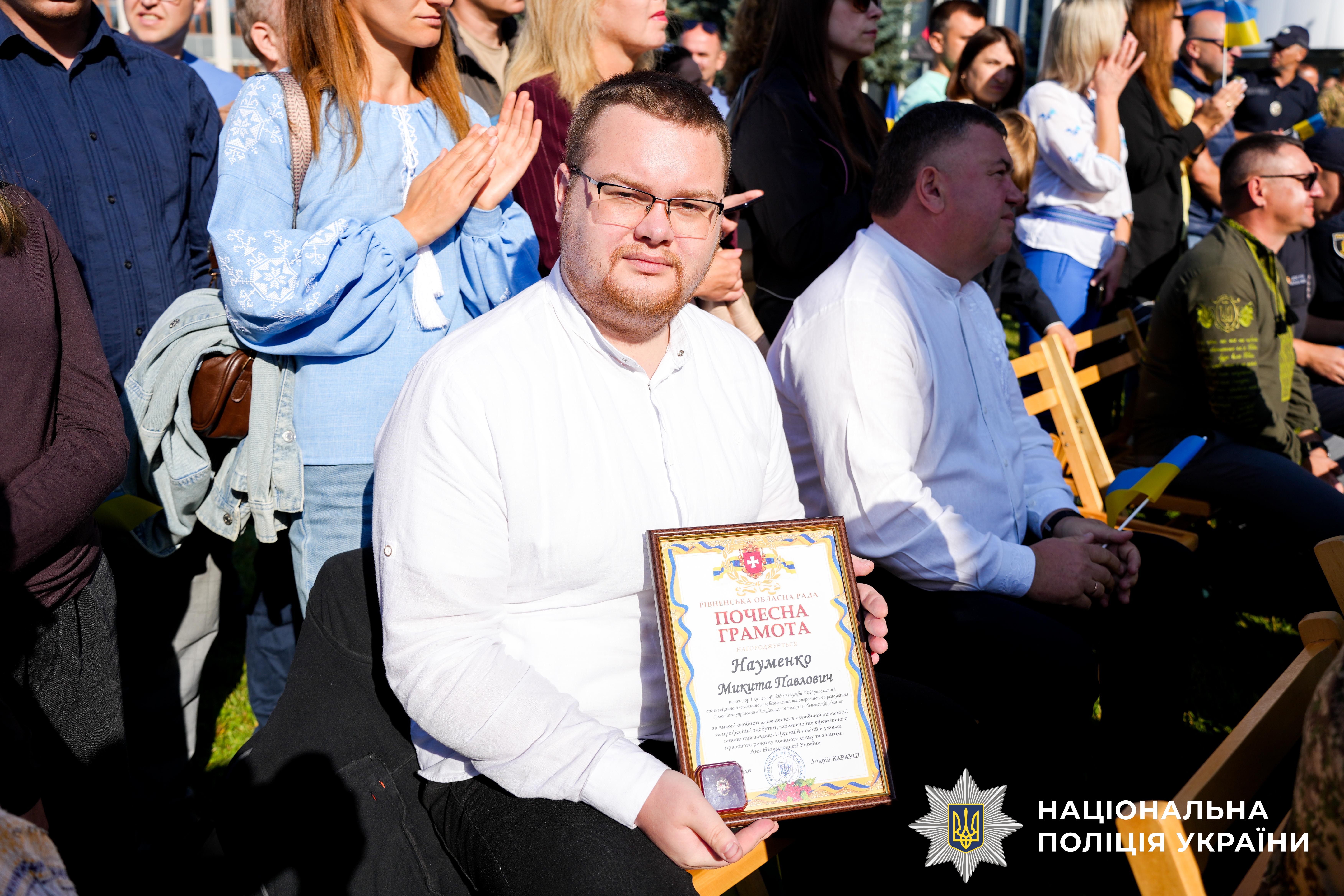 З нагоди свята ветерана війни, а нині співробітника служби 102 Микиту Науменка відзначило керівництво обласної ради. Захисник отримав тяжке поранення на полі бою, а після лікування та реабілітації став до строю Національної поліції України.