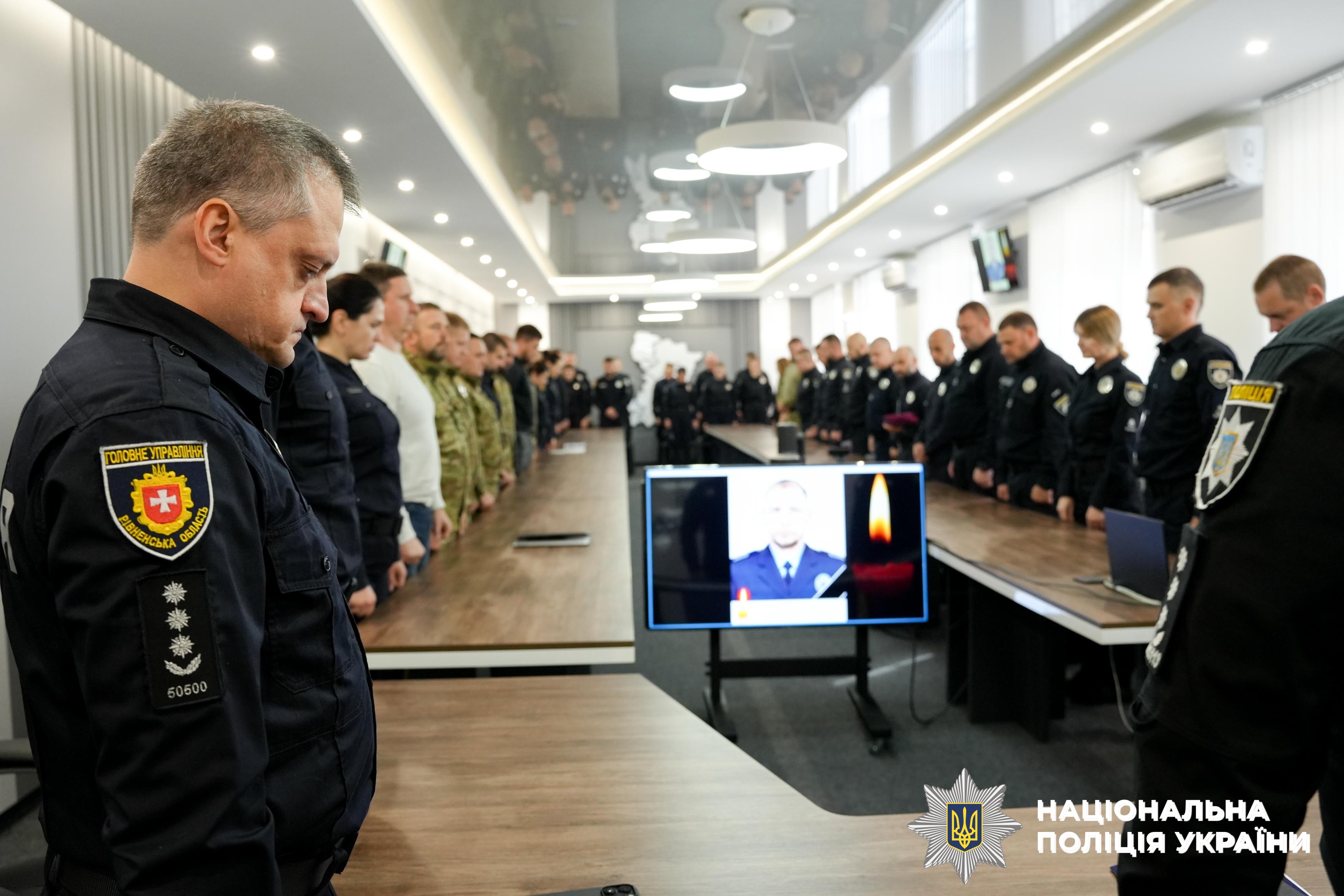 Хвилиною мовчання присутні вшанували пам’ять правоохоронців та усіх, хто у боротьбі з російською агресією поклав своє життя за вільну й незалежну Україну.