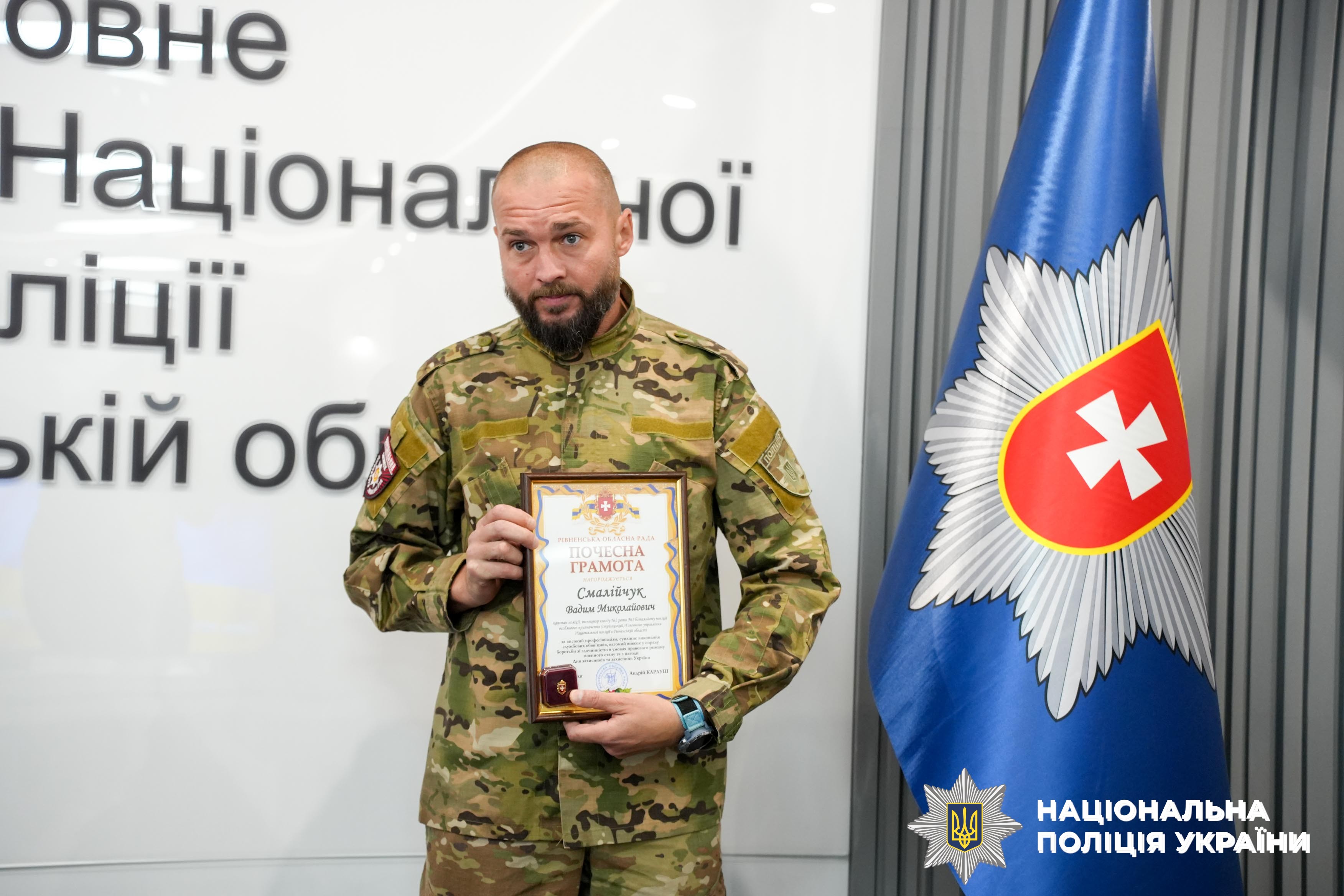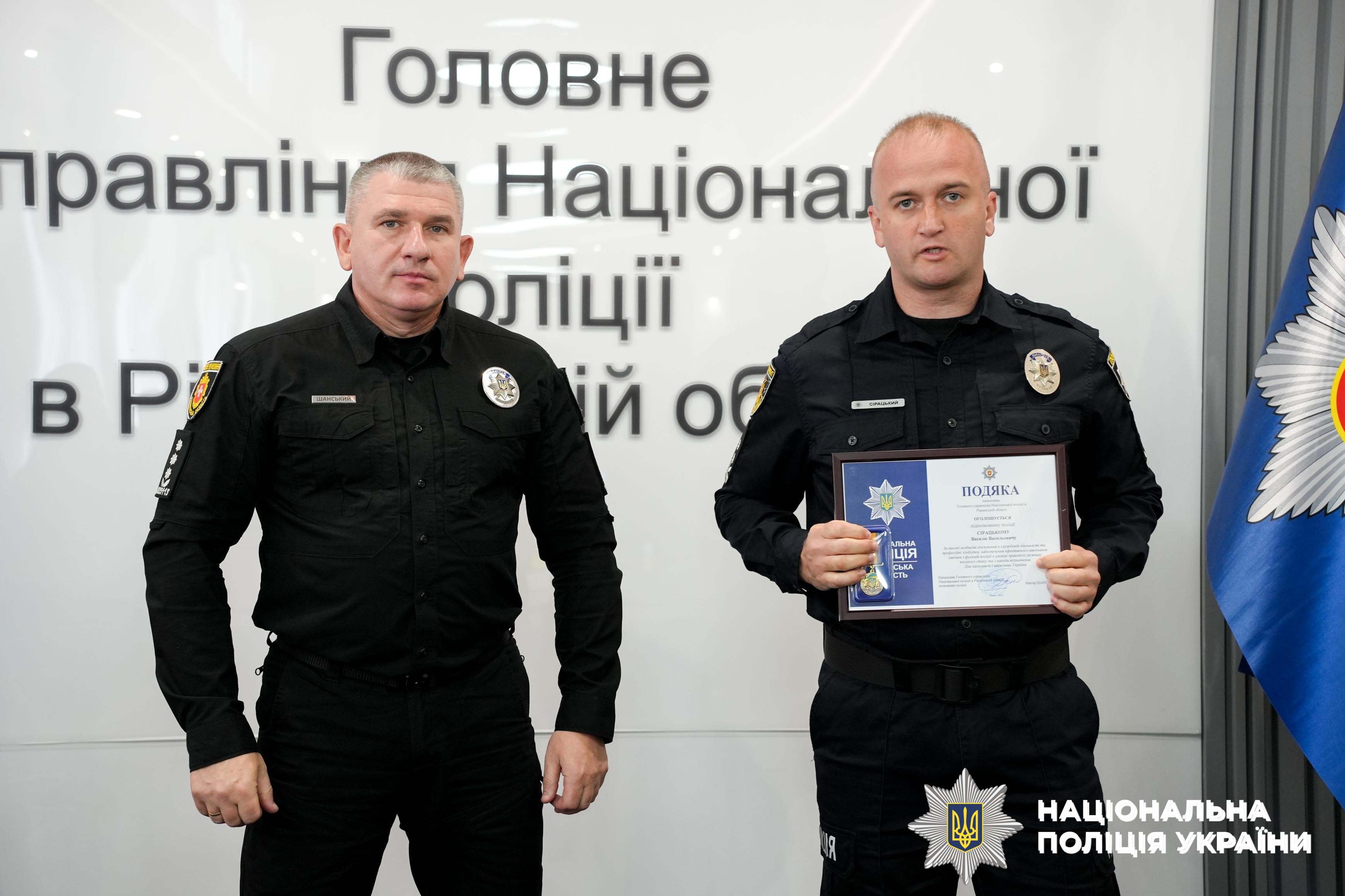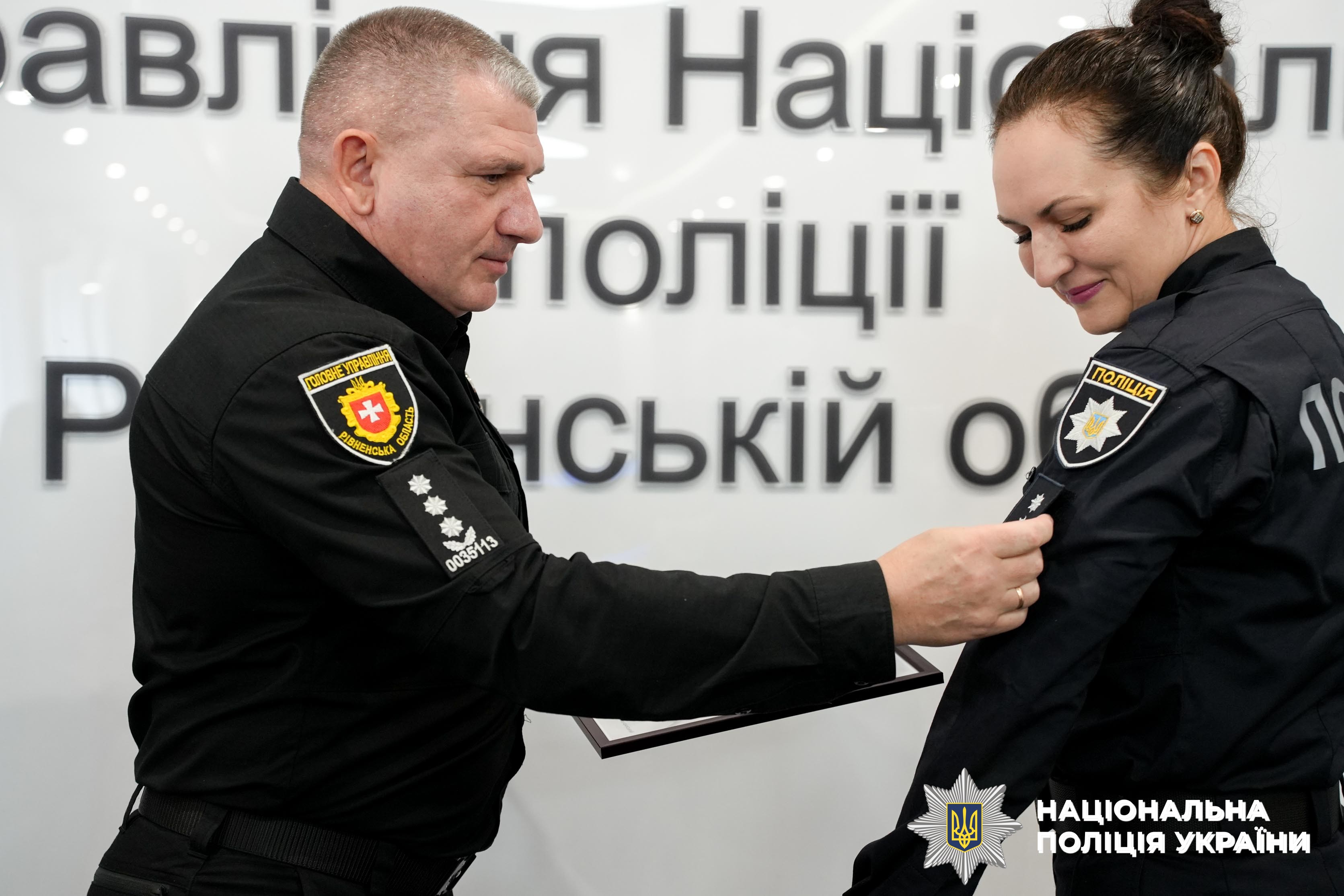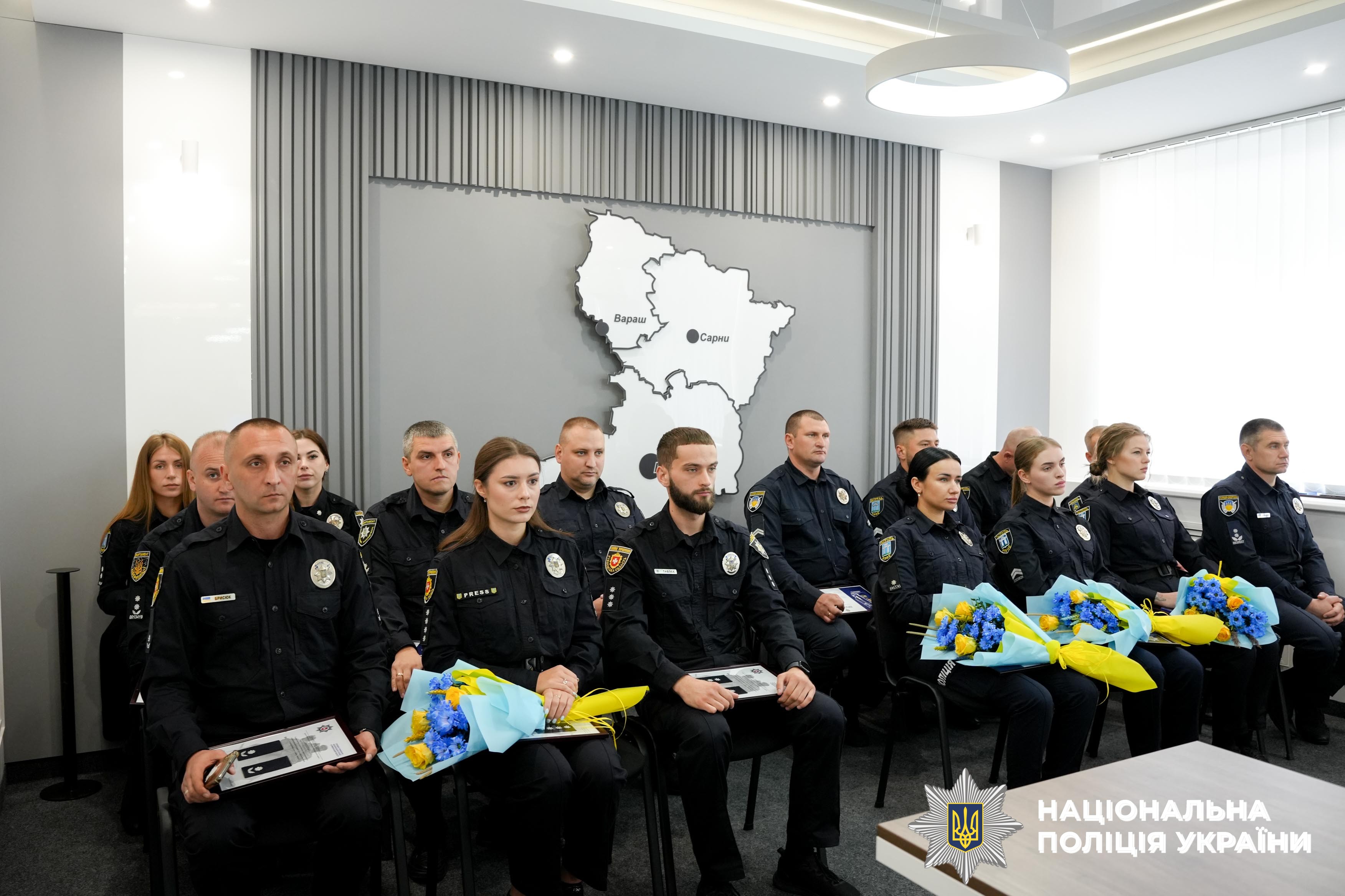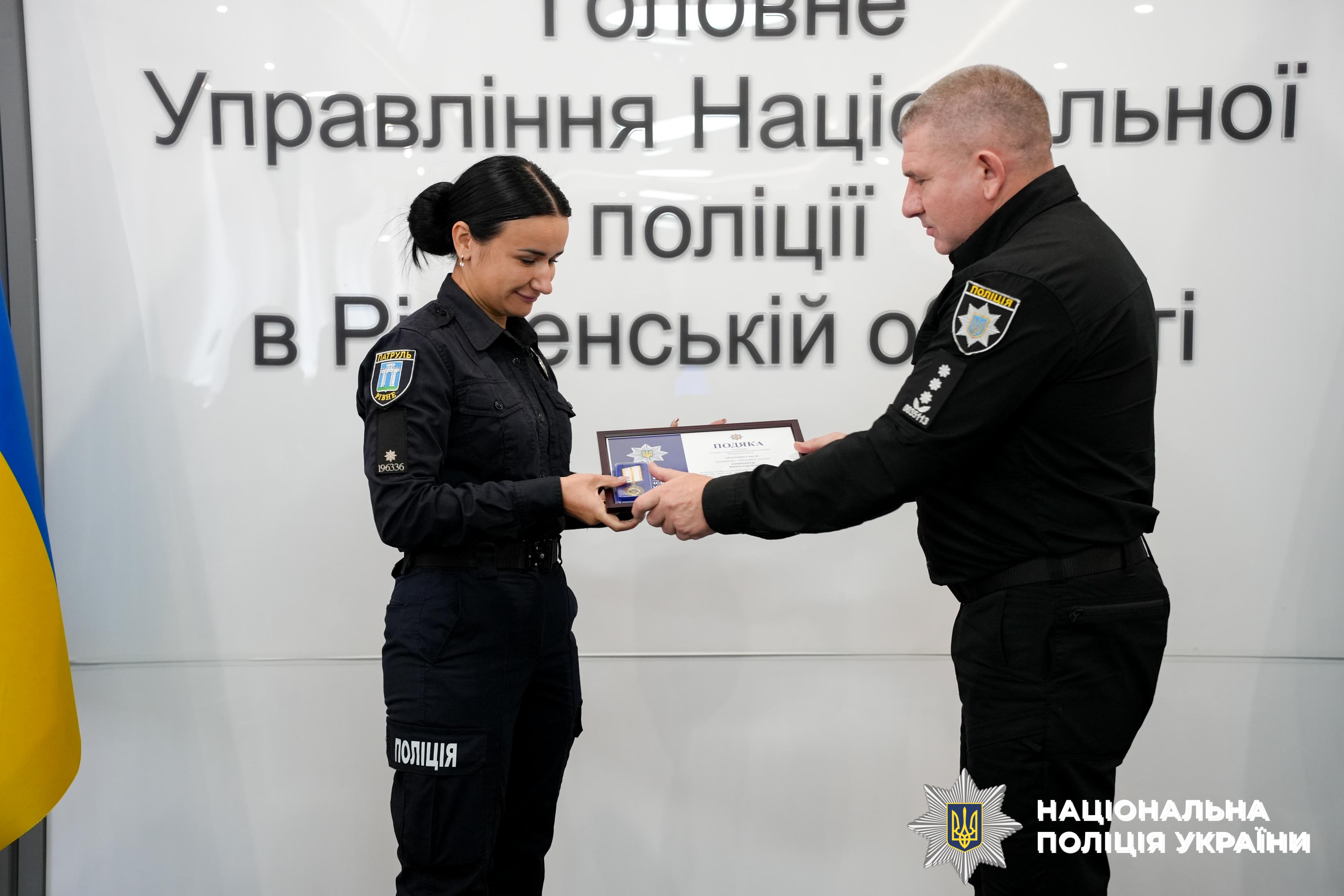 За сумлінне виконання службових обов’язків, високий професіоналізм, захист територіальної цілісності держави та вагомий внесок у боротьбу зі злочинністю начальник ГУНП в Рівненській області вручив поліцейським чергові спеціальні звання, а також відзнаки від Президента України, Міністерства внутрішніх справ, Національної поліції України, обласної та районної рад, а також керівництва поліції Рівненщини.