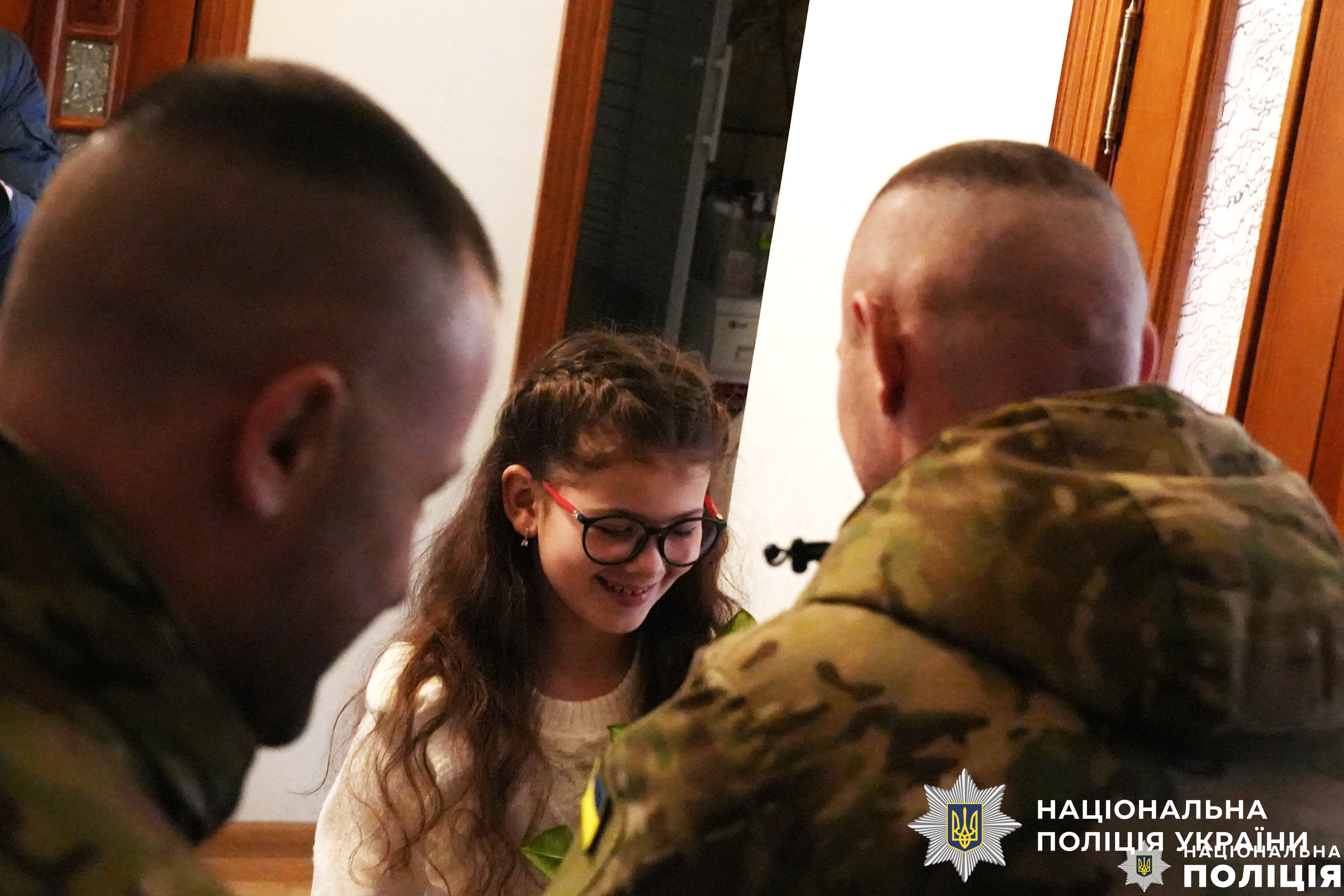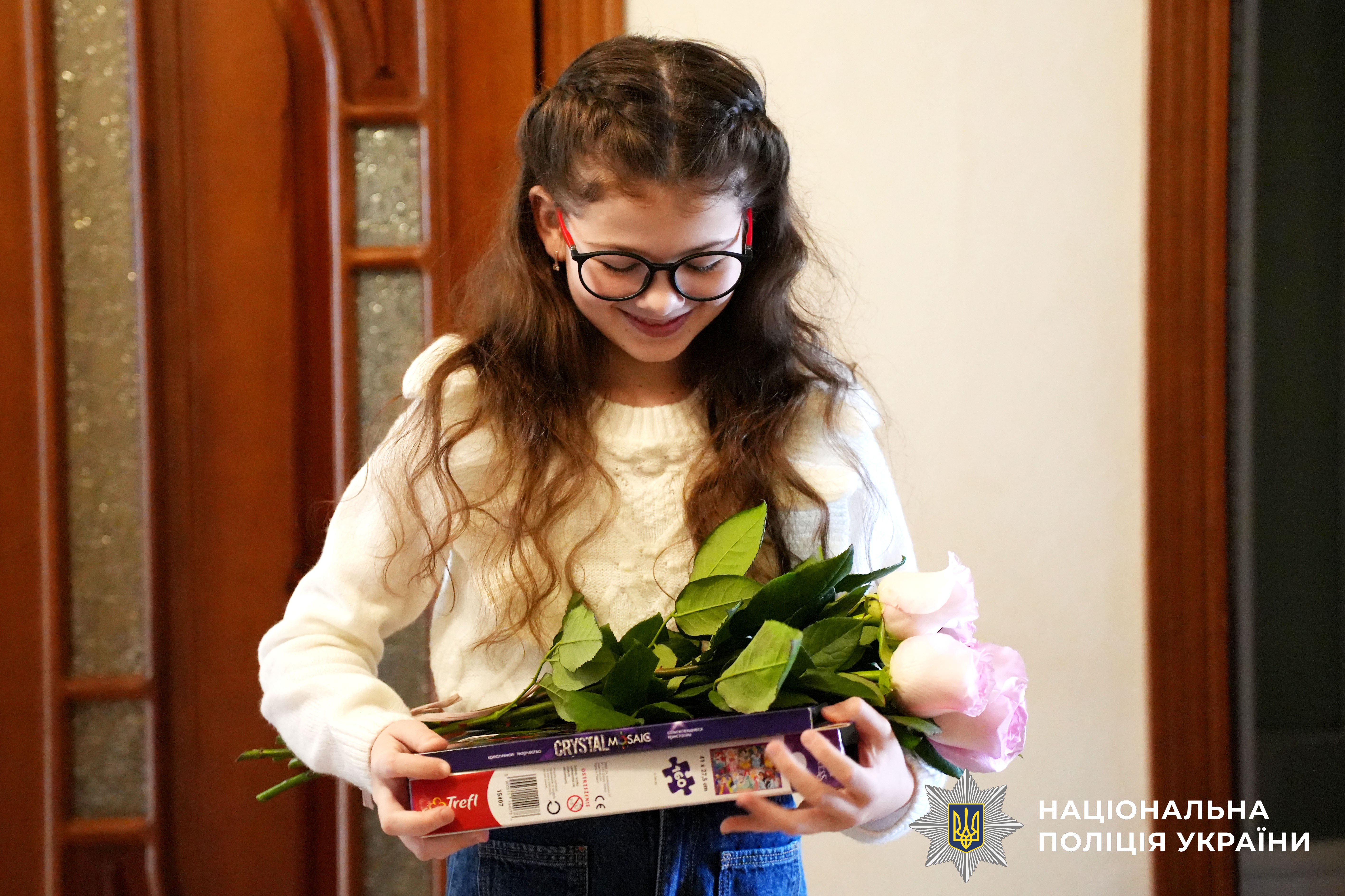 Дівчинка не чекала гостей, утім, дуже зраділа, коли на порозі побачила татових колег, які із подарунками завітали до іменинниці.