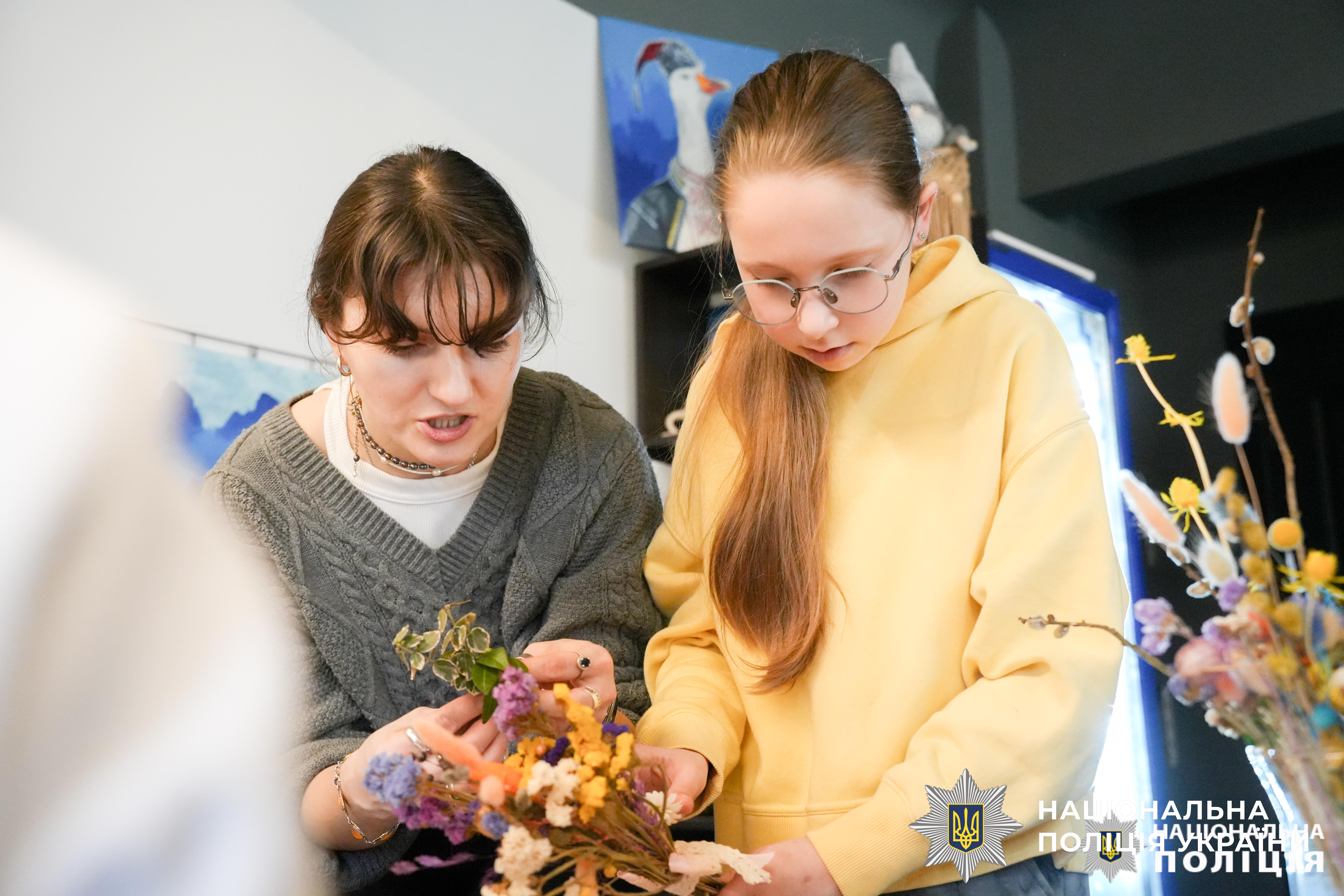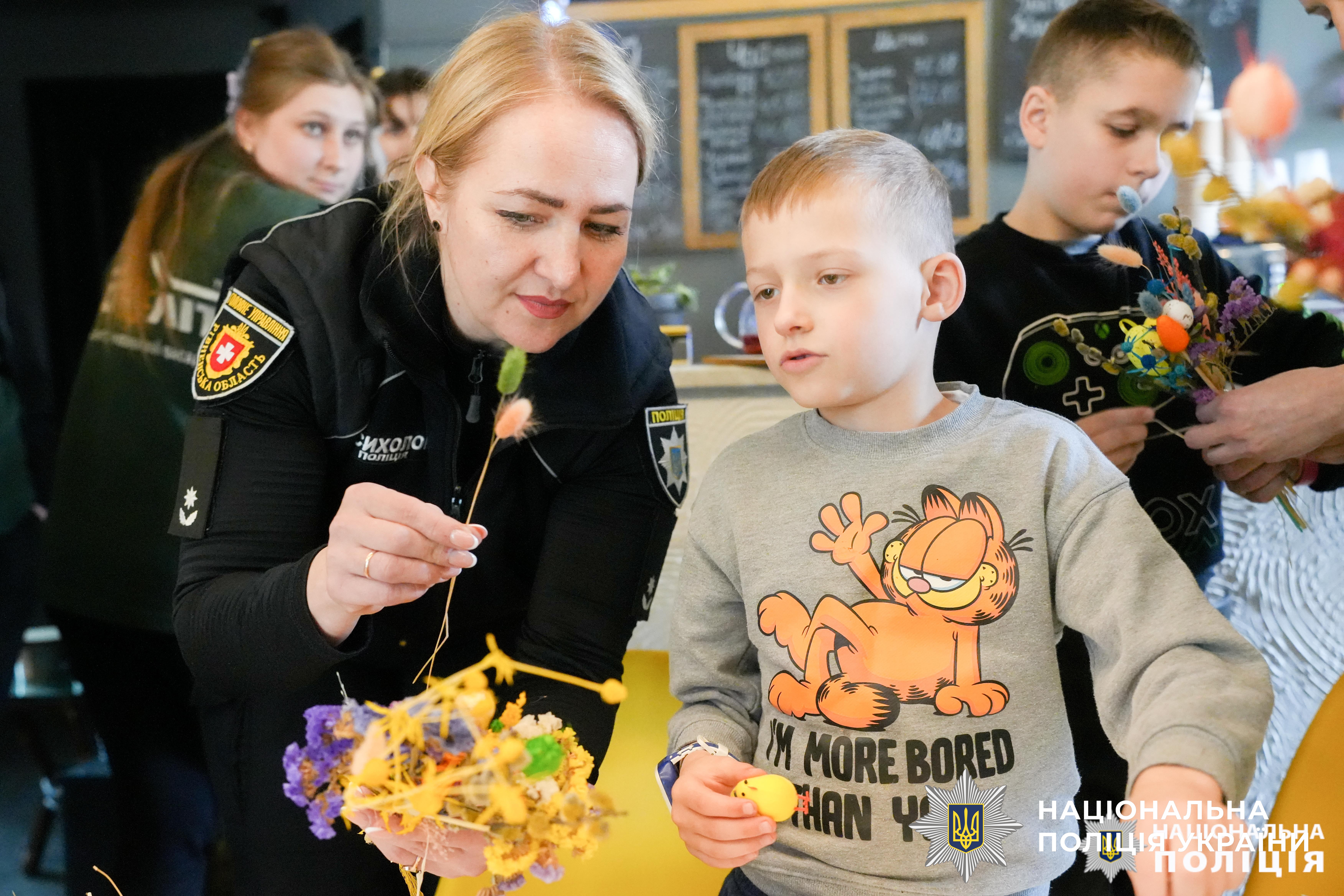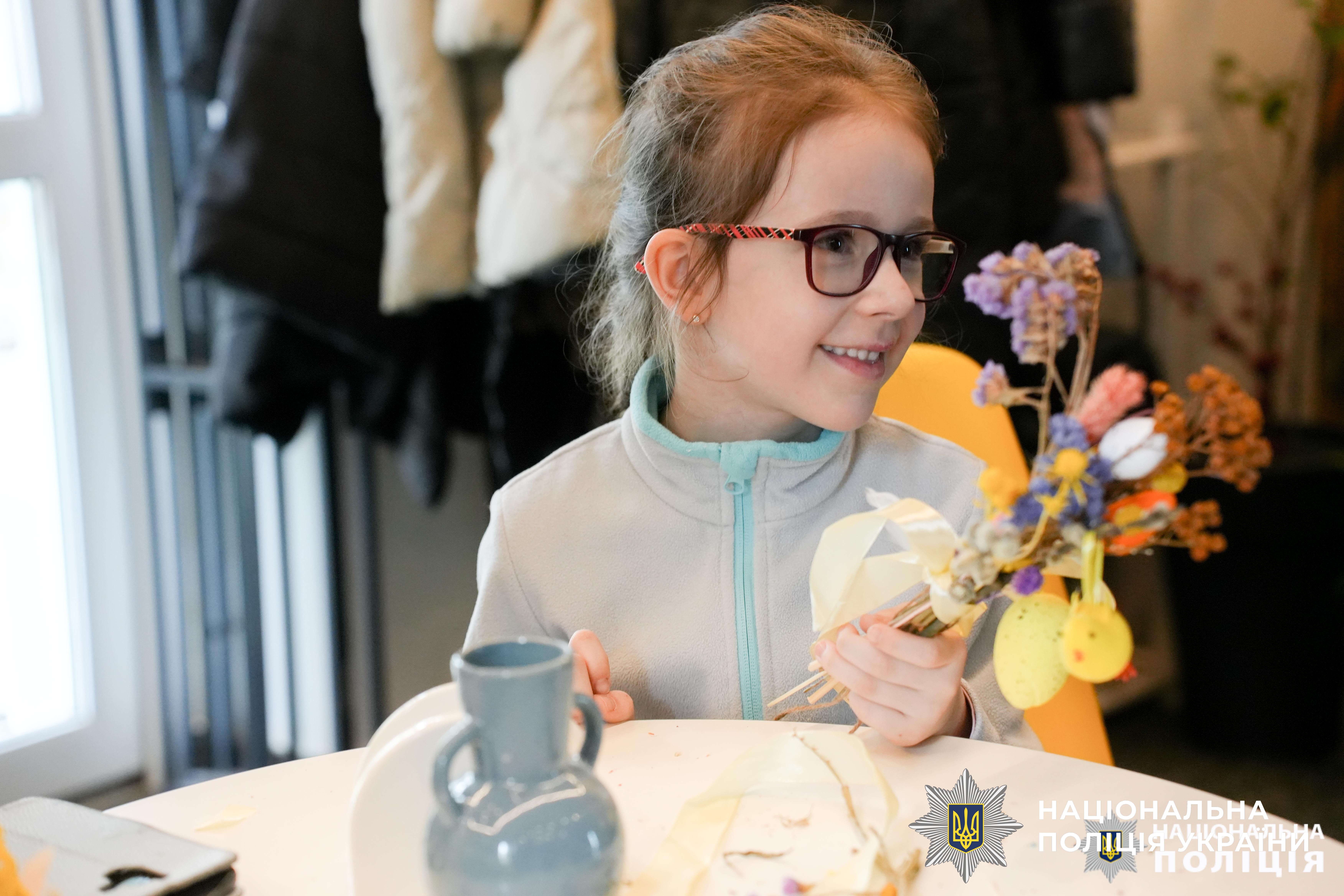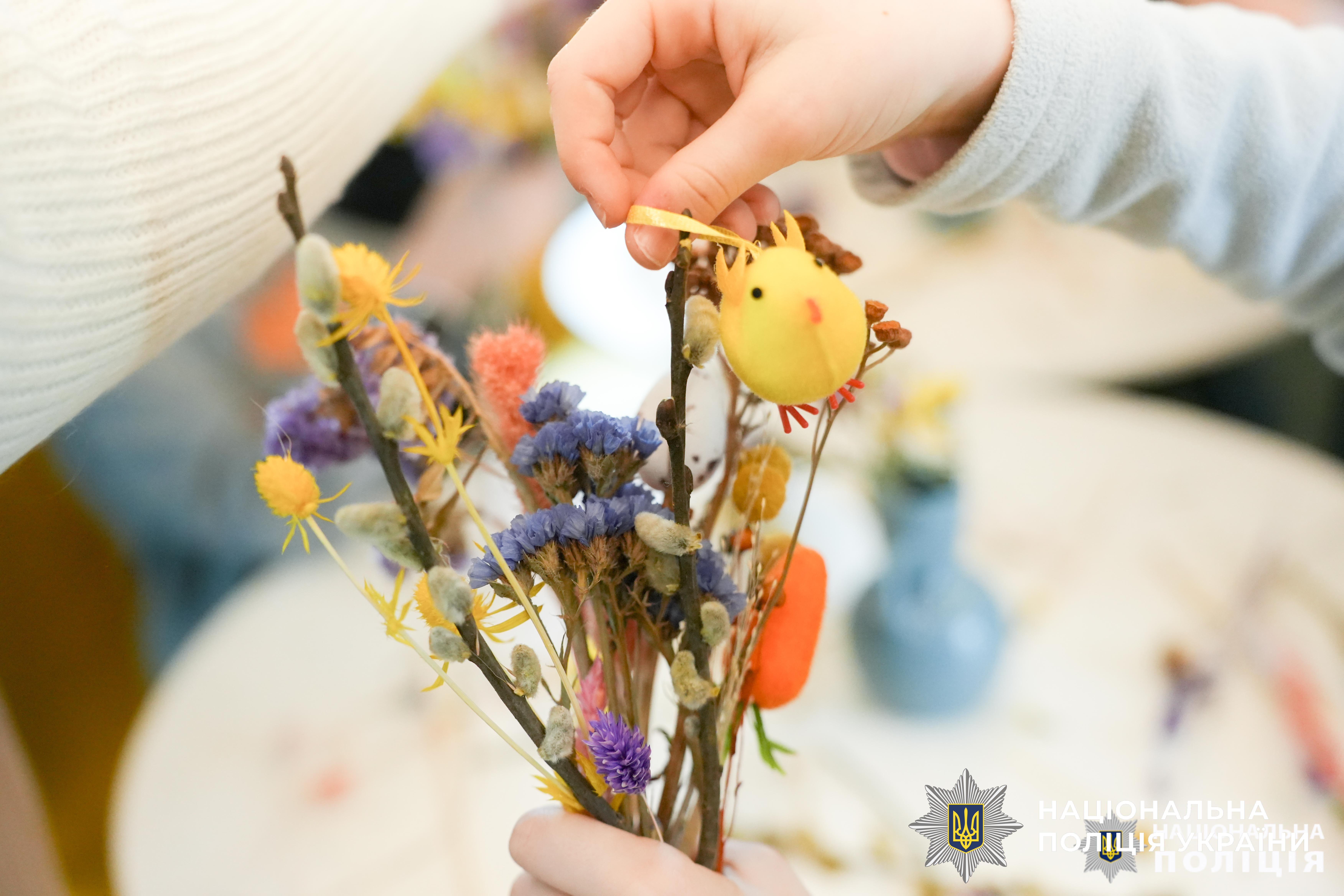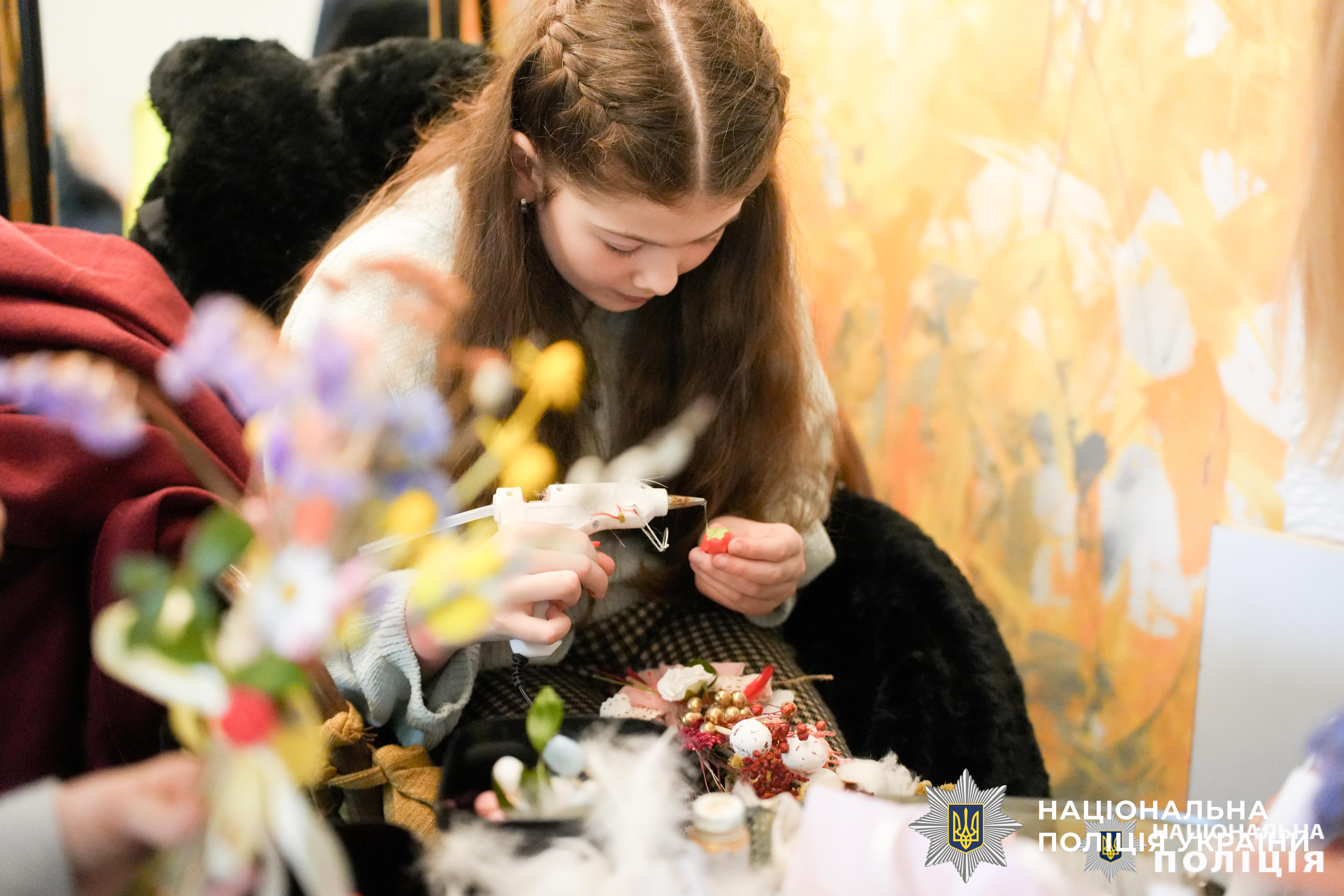 Під уважним супроводом психологів маленькі учасники власноруч створювали святкові композиції з верби - символу життя, сили, відродження та незламності духу. Це діти тих працівників поліції, які отримали тяжкі поранення чи віддали життя за незалежність України