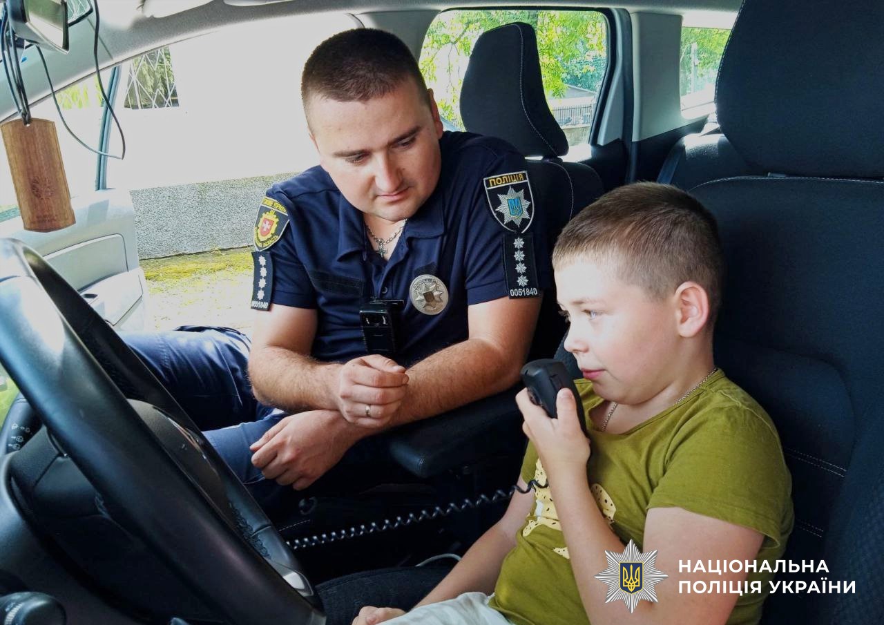 Також діти проінспектували службовий автомобіль: посиділи за кермом, ввімкнули проблискові маячки й говорили у гучномовець. Усіх бажаючих поліцейський офіцер громади покатав в авто.