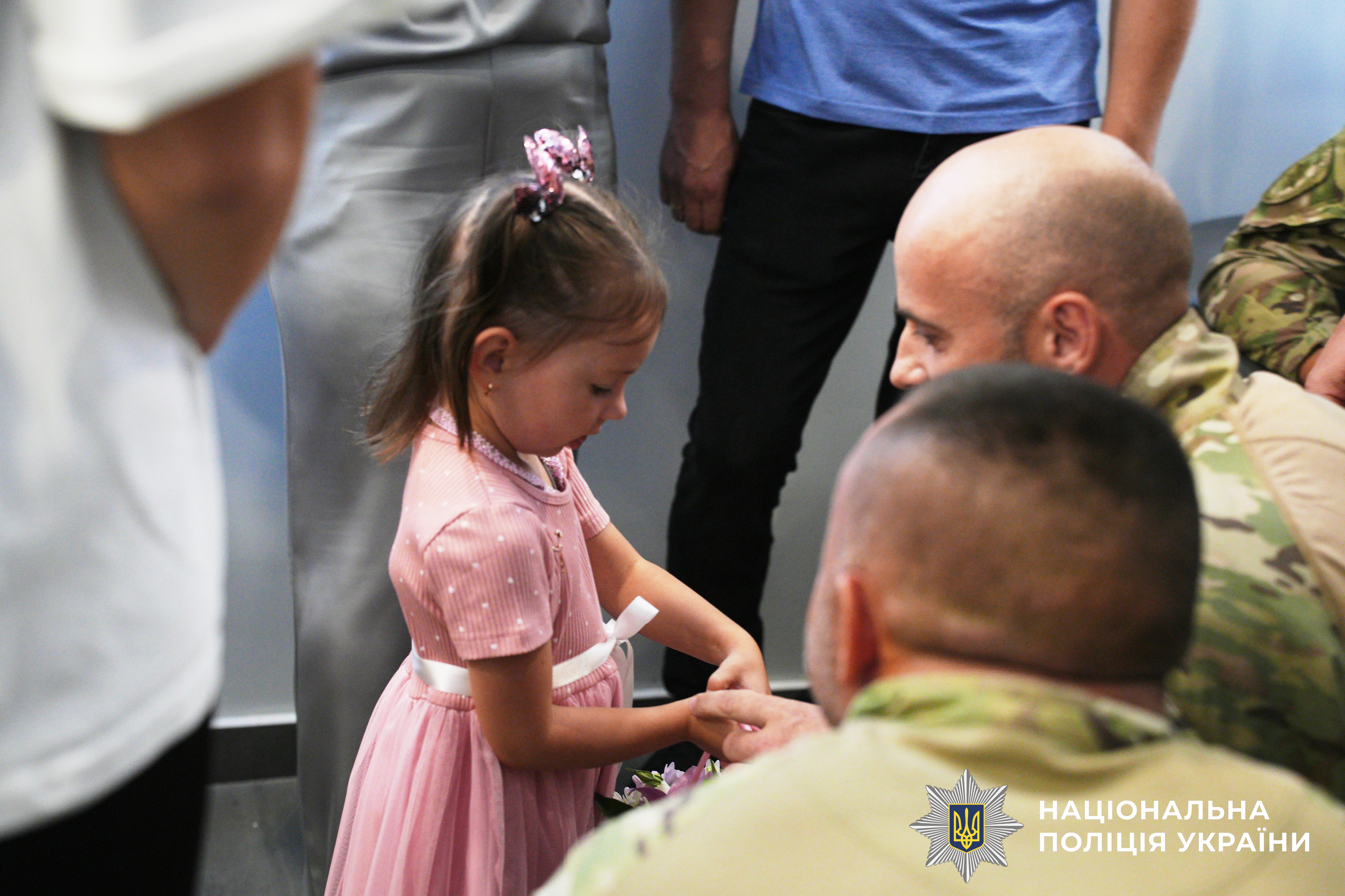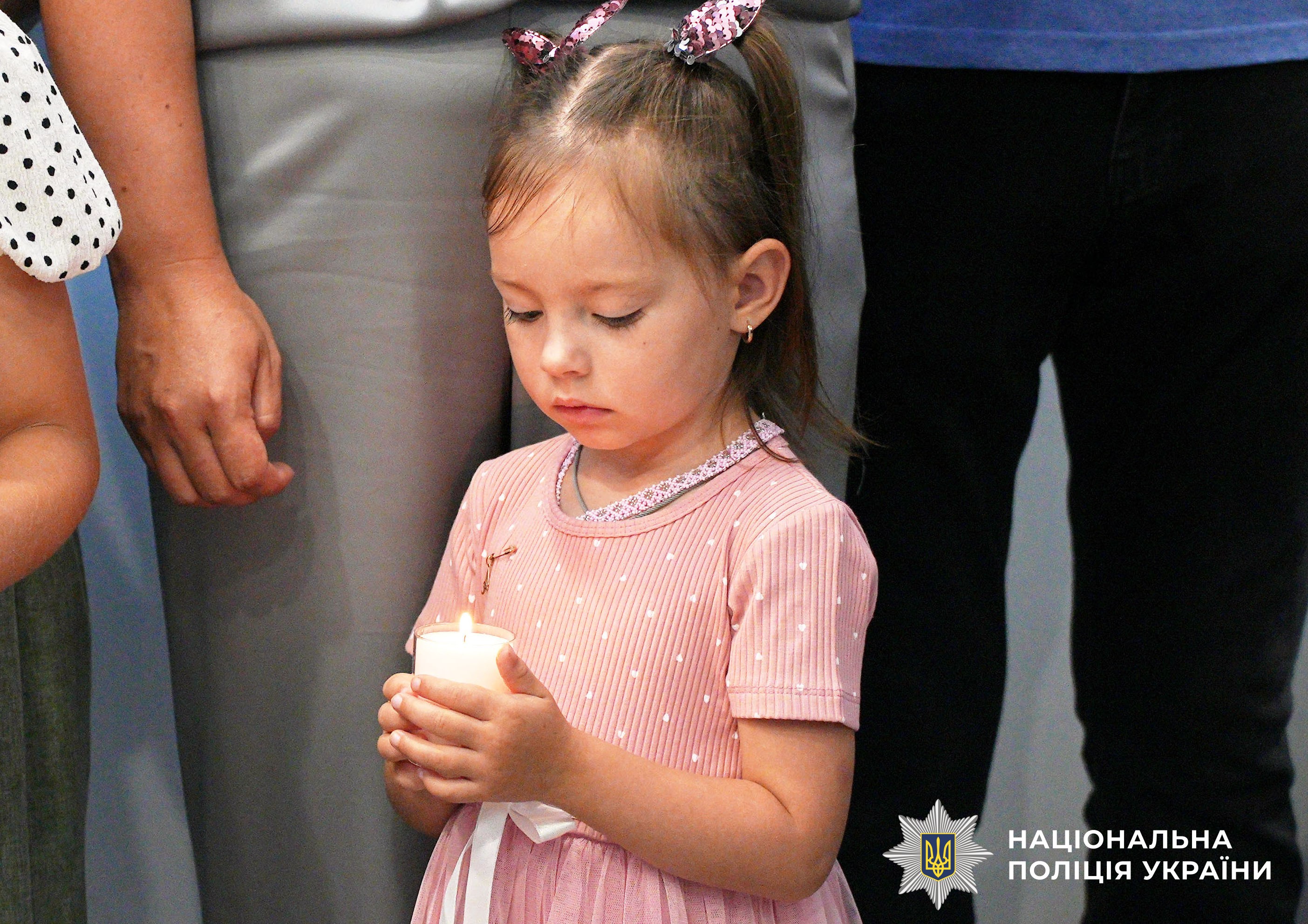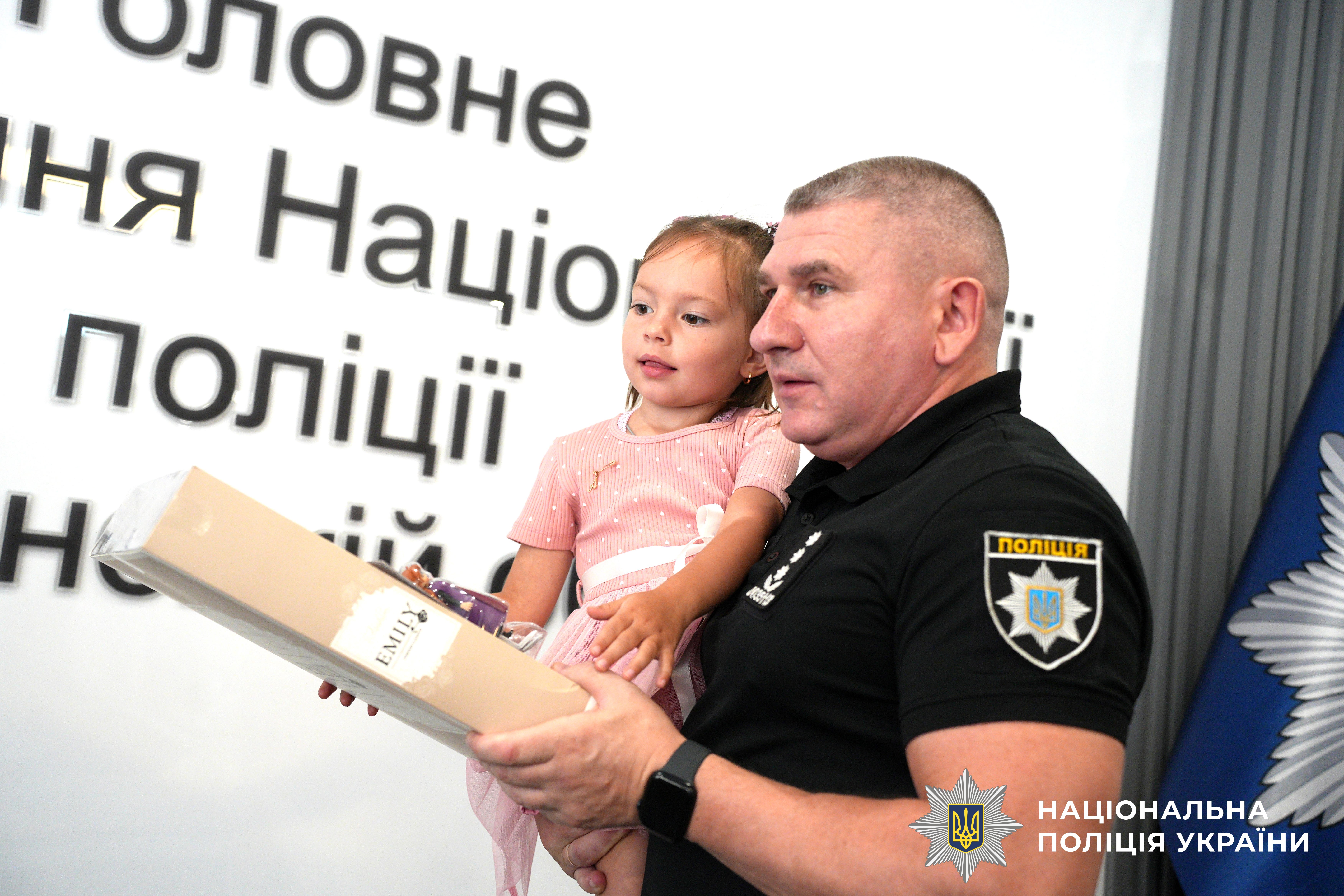 Сьогодні, 22 липня, після молебню в пам’ять про загиблих поліцейських начальник ГУНП Віктор Шанський зустрівся із їхніми рідними. Серед них нині особлива гостя — маленька Аліна Нисинець.