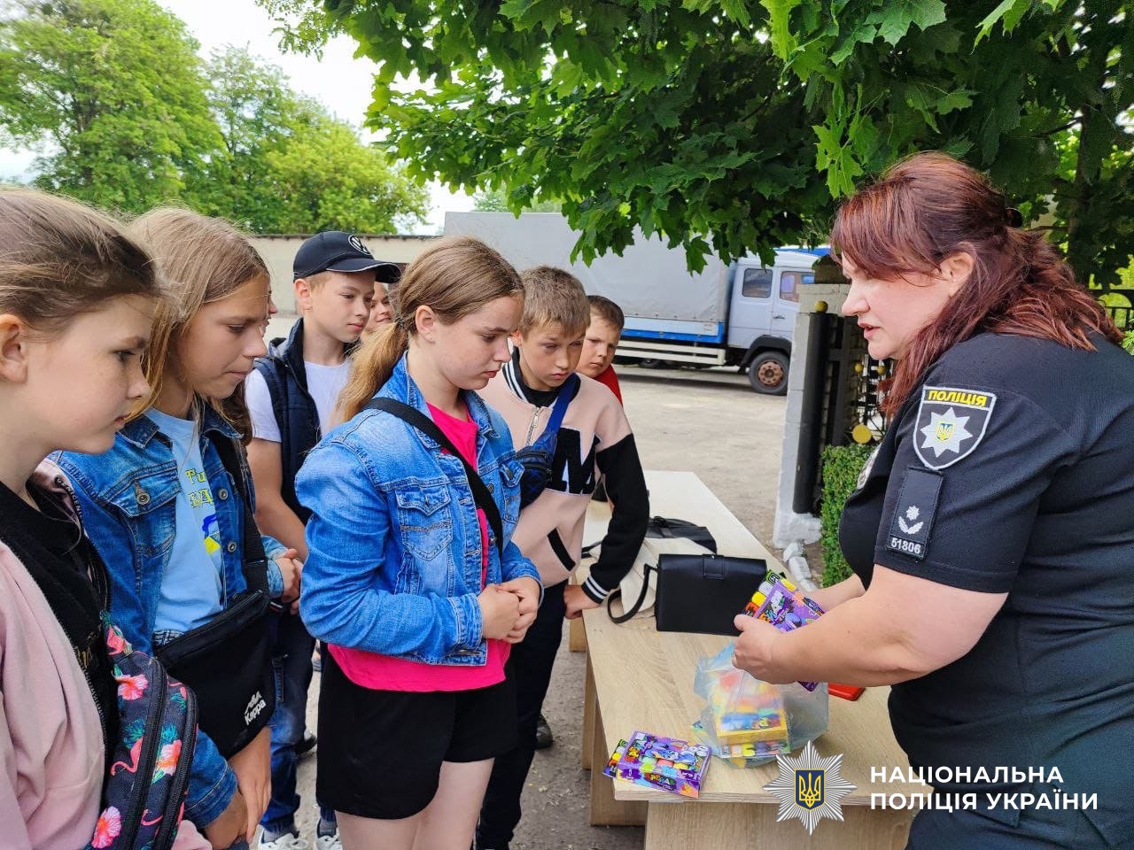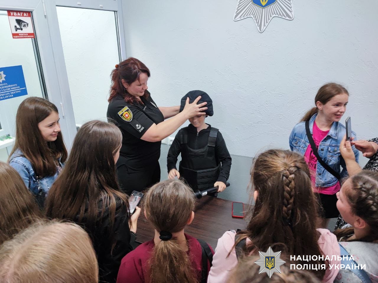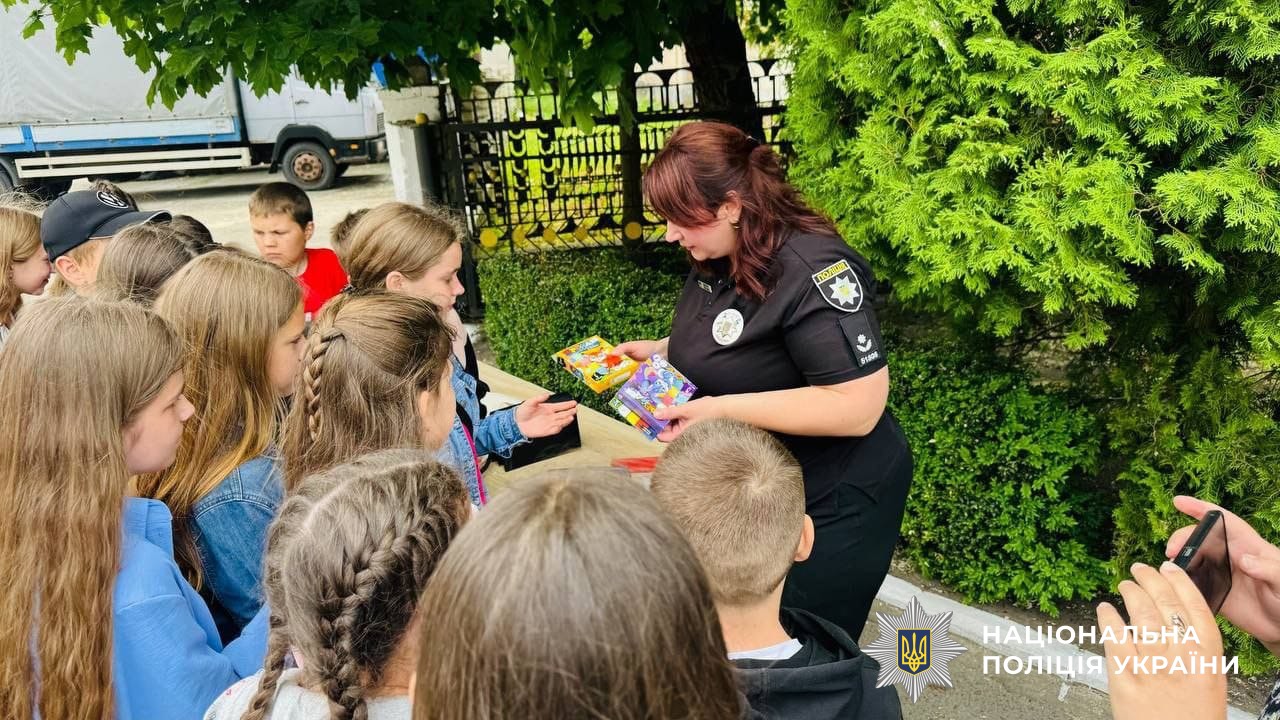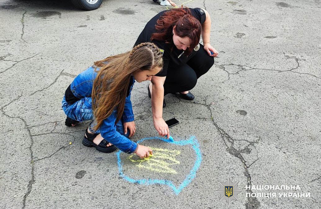 Ліцеїстам продемонстрували роботу новітнього проєкту «Custody Records» та чергової частини. Діти приміряли засоби захисту, а також намалювали на асфальті у дворику патріотичні малюнки, за що отримували символічні подарунки.