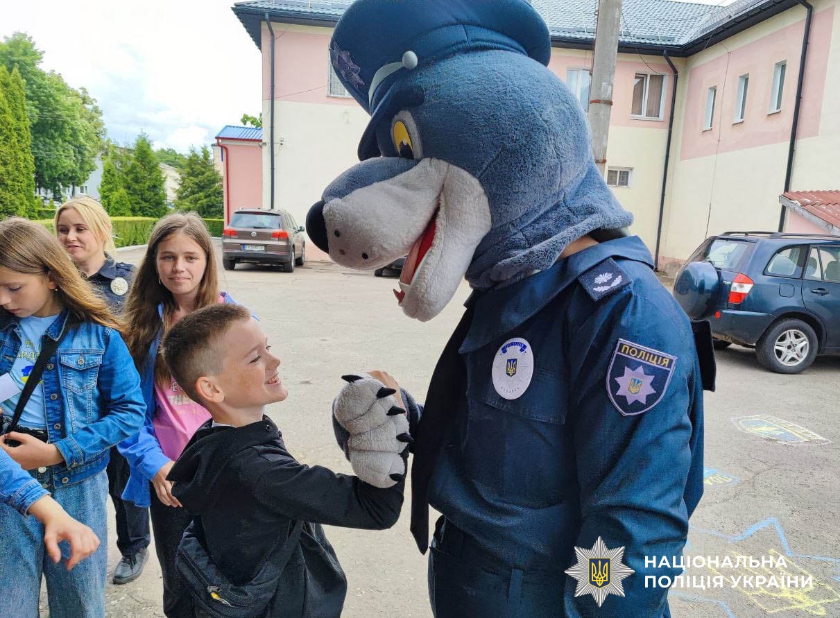 Незабутні емоції та теплі обійми дарував школярам і рядовий Вовчик. Поліцейські роблять усе для того, аби дитячі очі сяяли радістю. Бо вони — майбутнє.