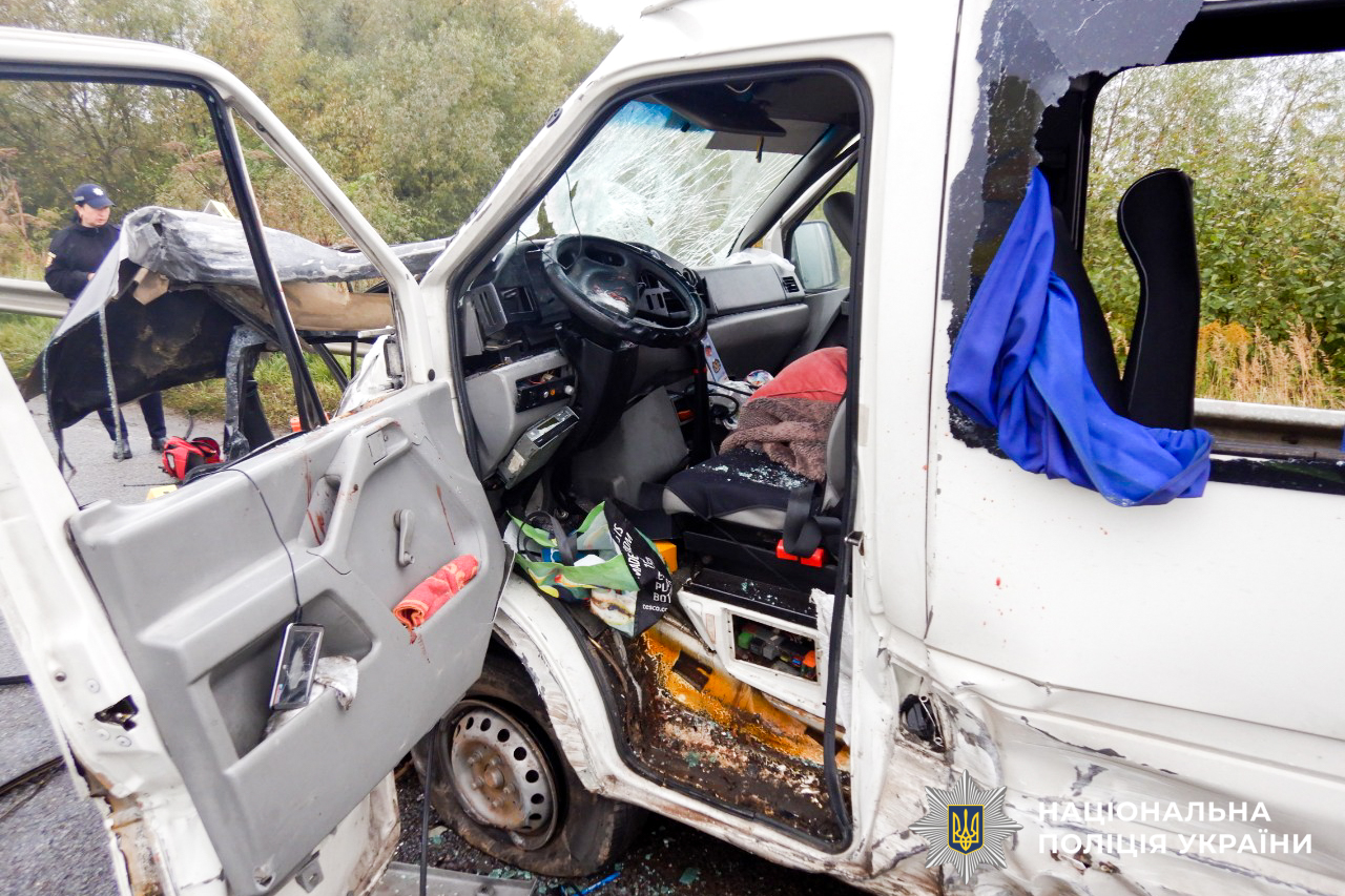 Водія «Volkswagen LT» та п’ятьох пасажирів мікроавтобуса віком від 30-ти до 43-х років, жителів області, госпіталізували до лікарні. Медики діагностували у них політравми, переломи, забої та черепно-мозкові травми.