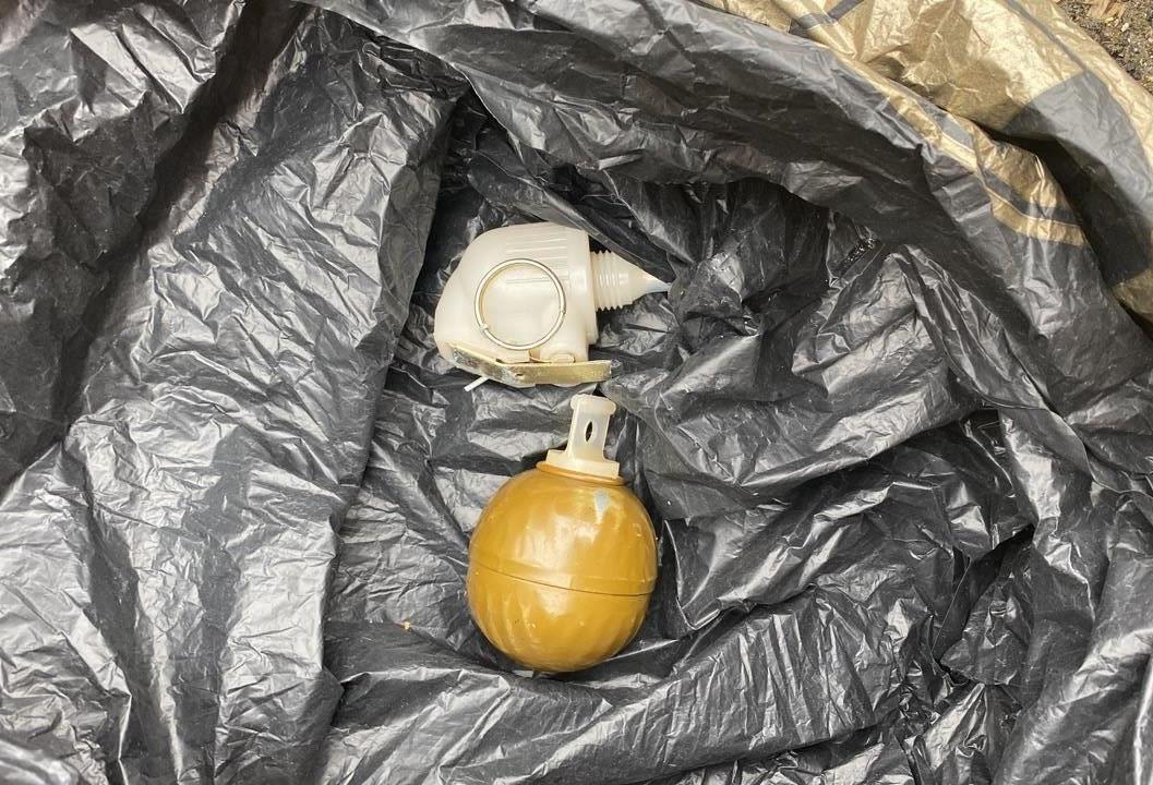 Крім того, під час особистого обшуку вчора поліцейські виявили і вилучили у нього ще два корпуси гранат РГН та запали до них.