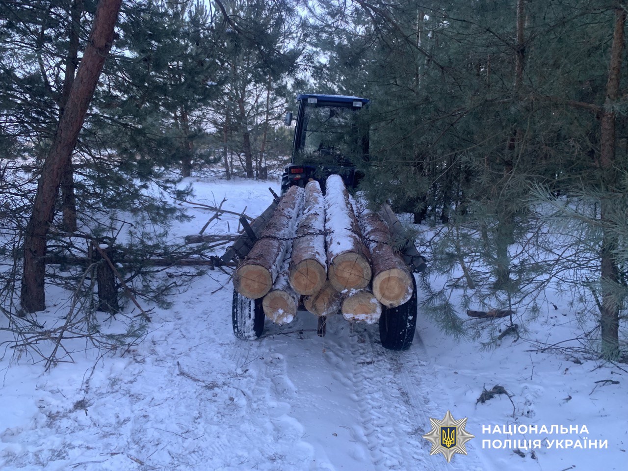 Крім того, під час патрулювання в поле зору працівників СРПП відділення поліції міста Костопіль потрапив трактор із підводою, завантаженою деревиною. 35-річний житель села Золотолин саме виїжджав із лісового масиву. Поліцейські вилучили транспортний засіб та сім колод сосни.
