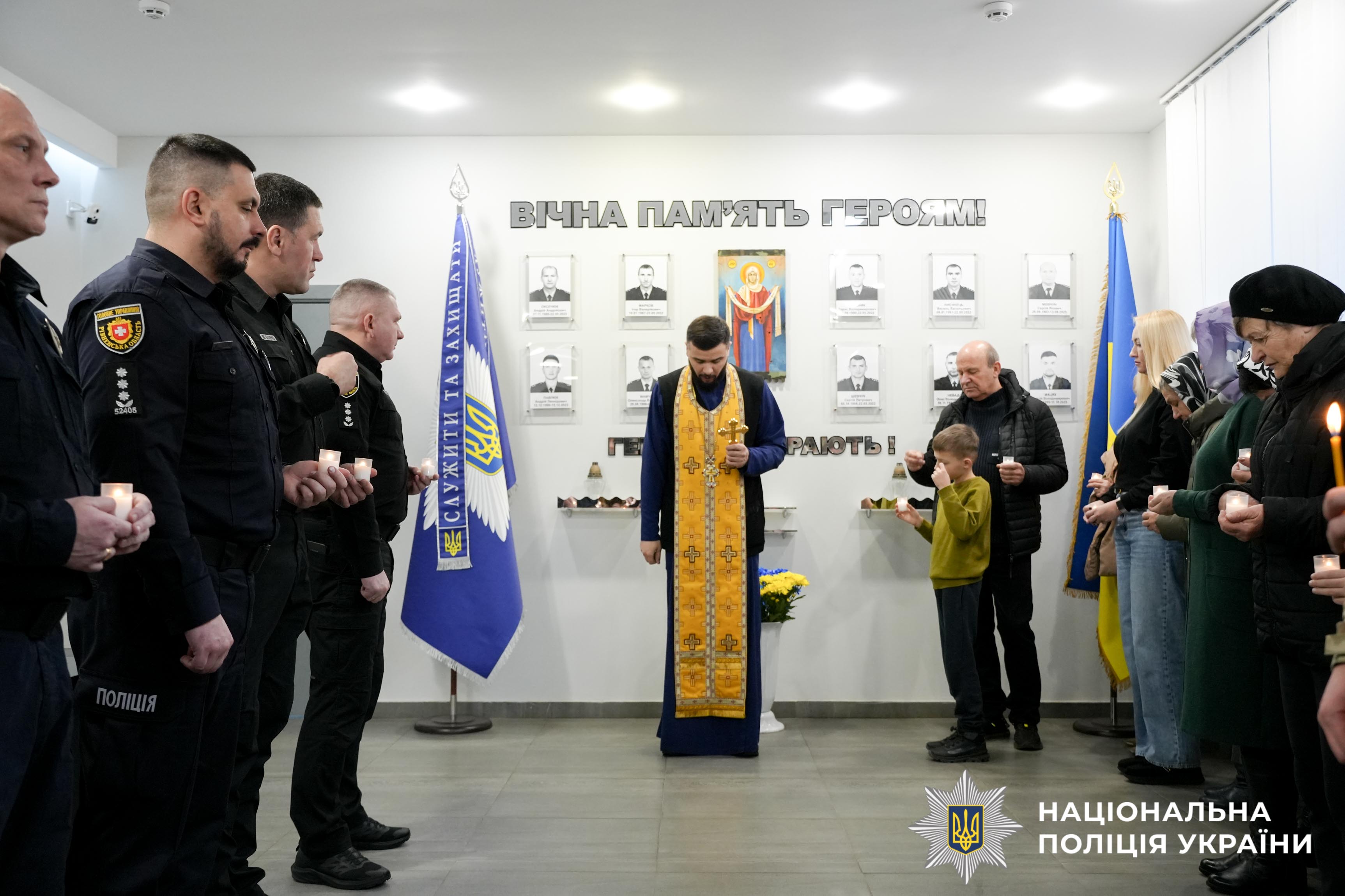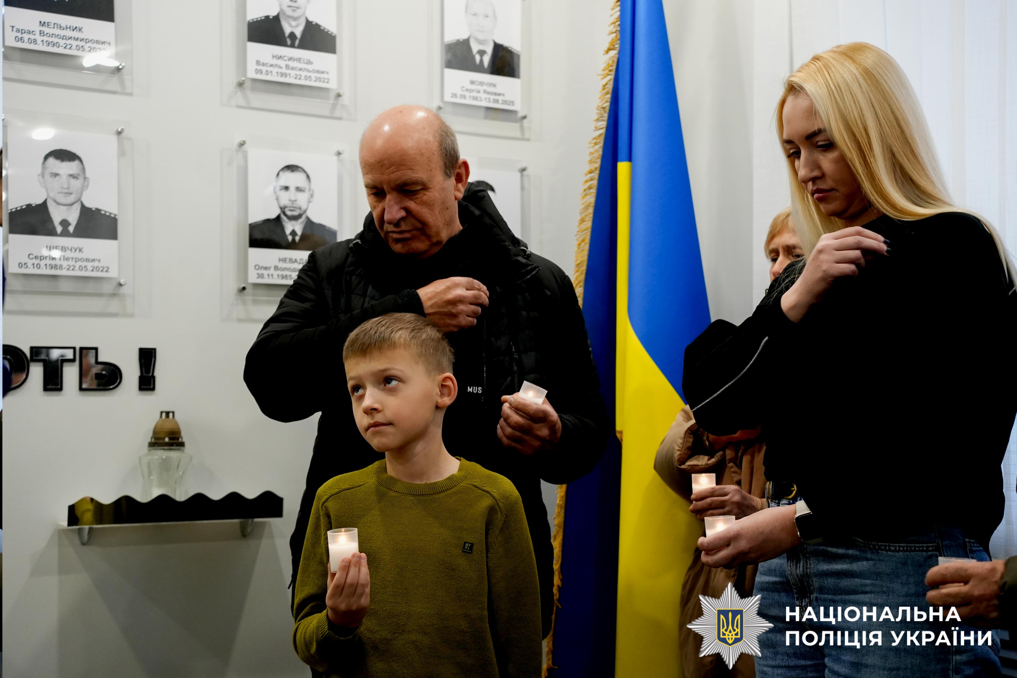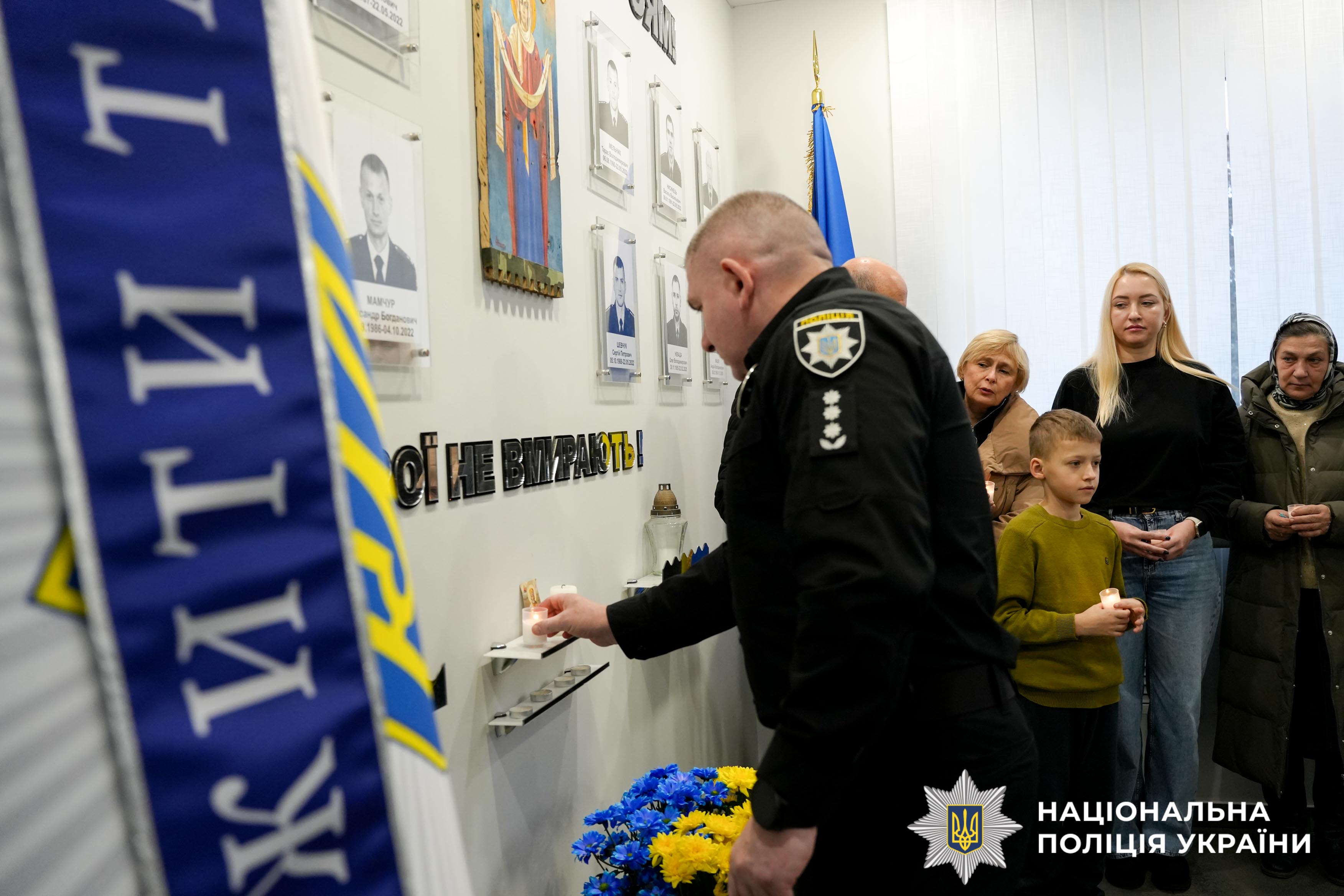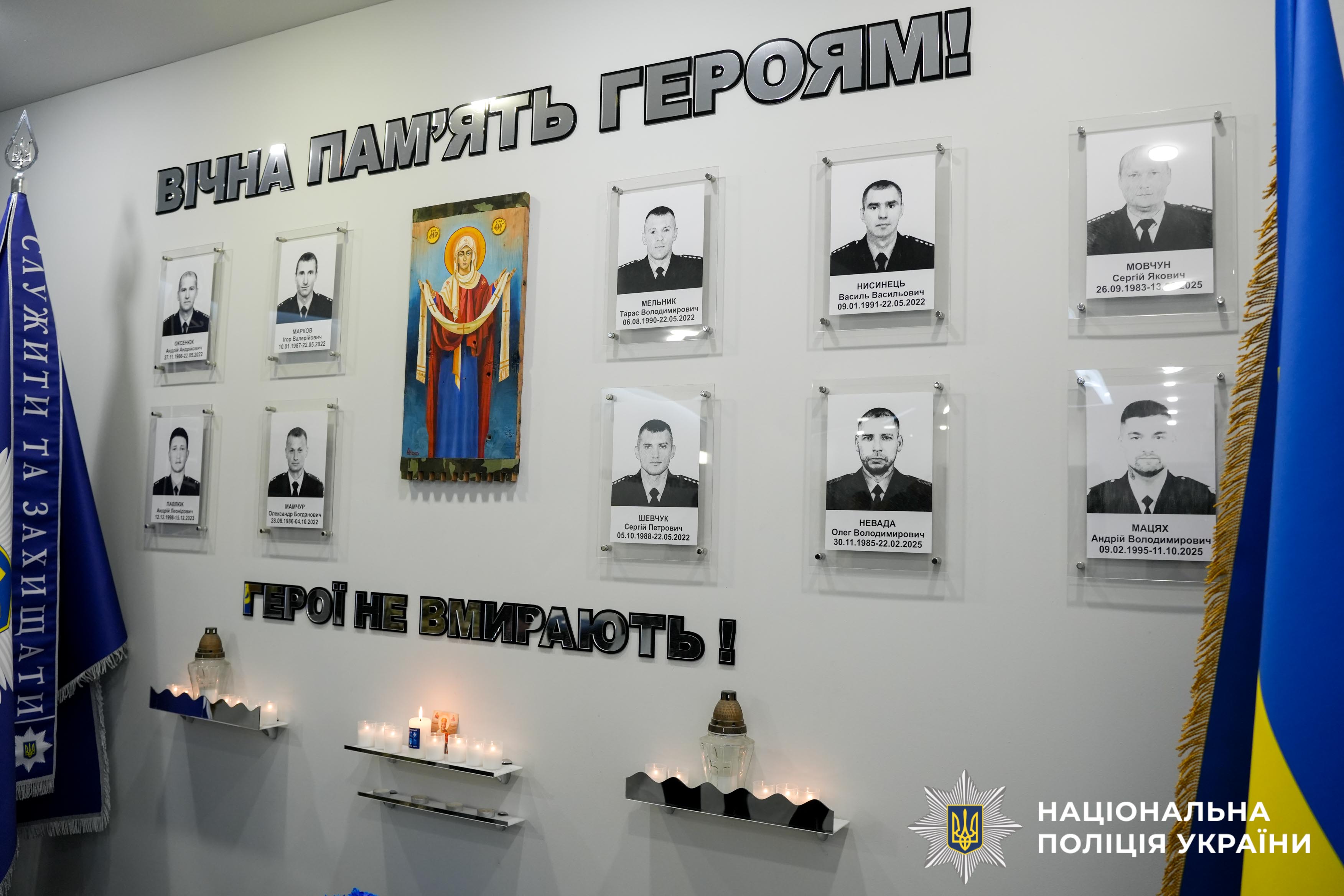 Щодня 10 чорно-білих фото у фронт-офісі ГУНП нагадують нам, яку ціну ми платимо за мир… Імена цих мужніх поліцейських навіки закарбовані в історії України, адже їхній подвиг — безсмертний.
