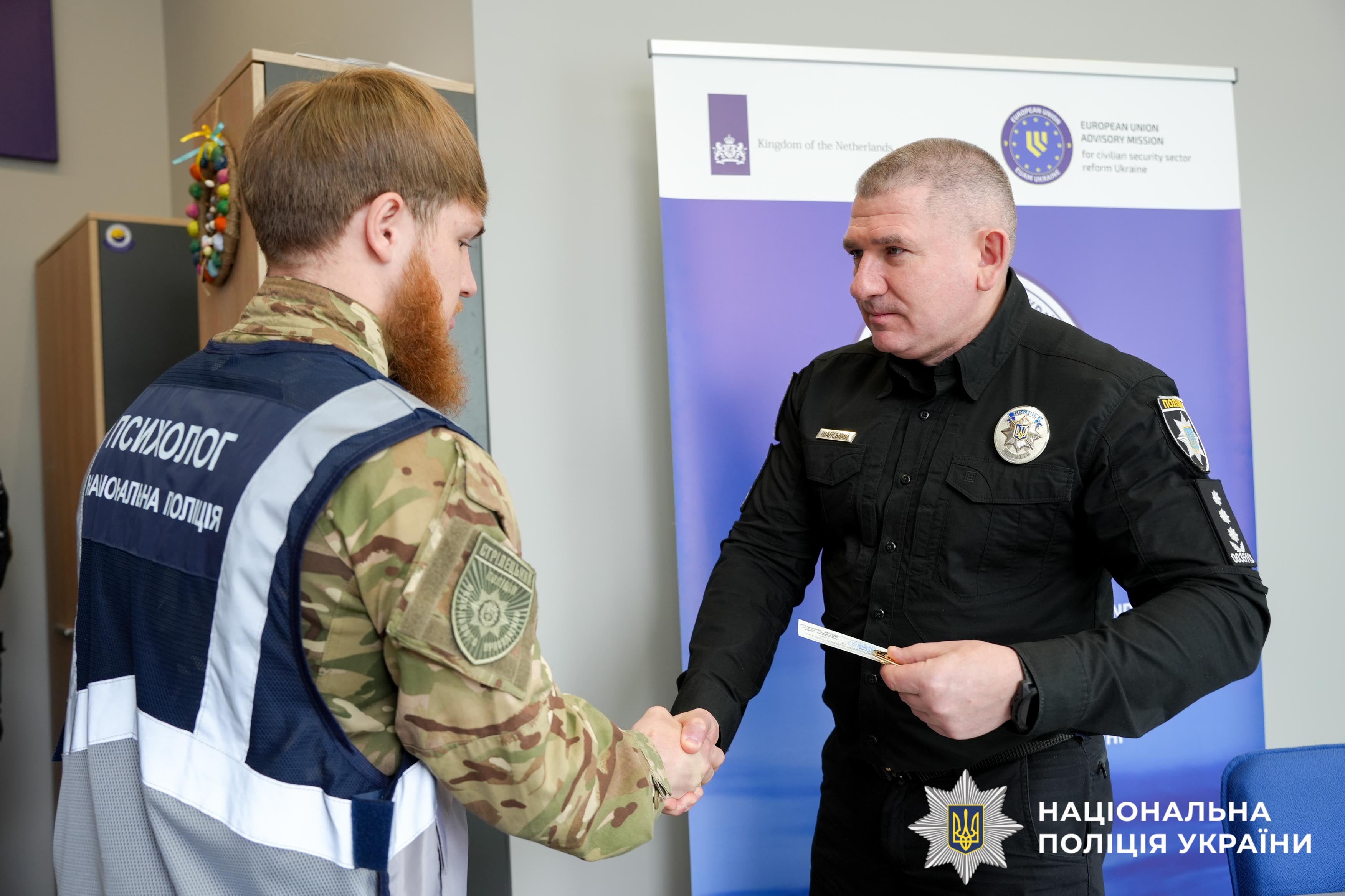 Віктор Шанський подякував психологам за гідну працю та вручив відзнаки. Зокрема, статус учасника бойових дій отримав Сергій Дубинецький, психолог батальйону поліції особливого призначення (стрілецький). 21-річний лейтенант поліції після закінчення університету відразу долучився до бойового підрозділу та понад пів року ніс службу на передовій.