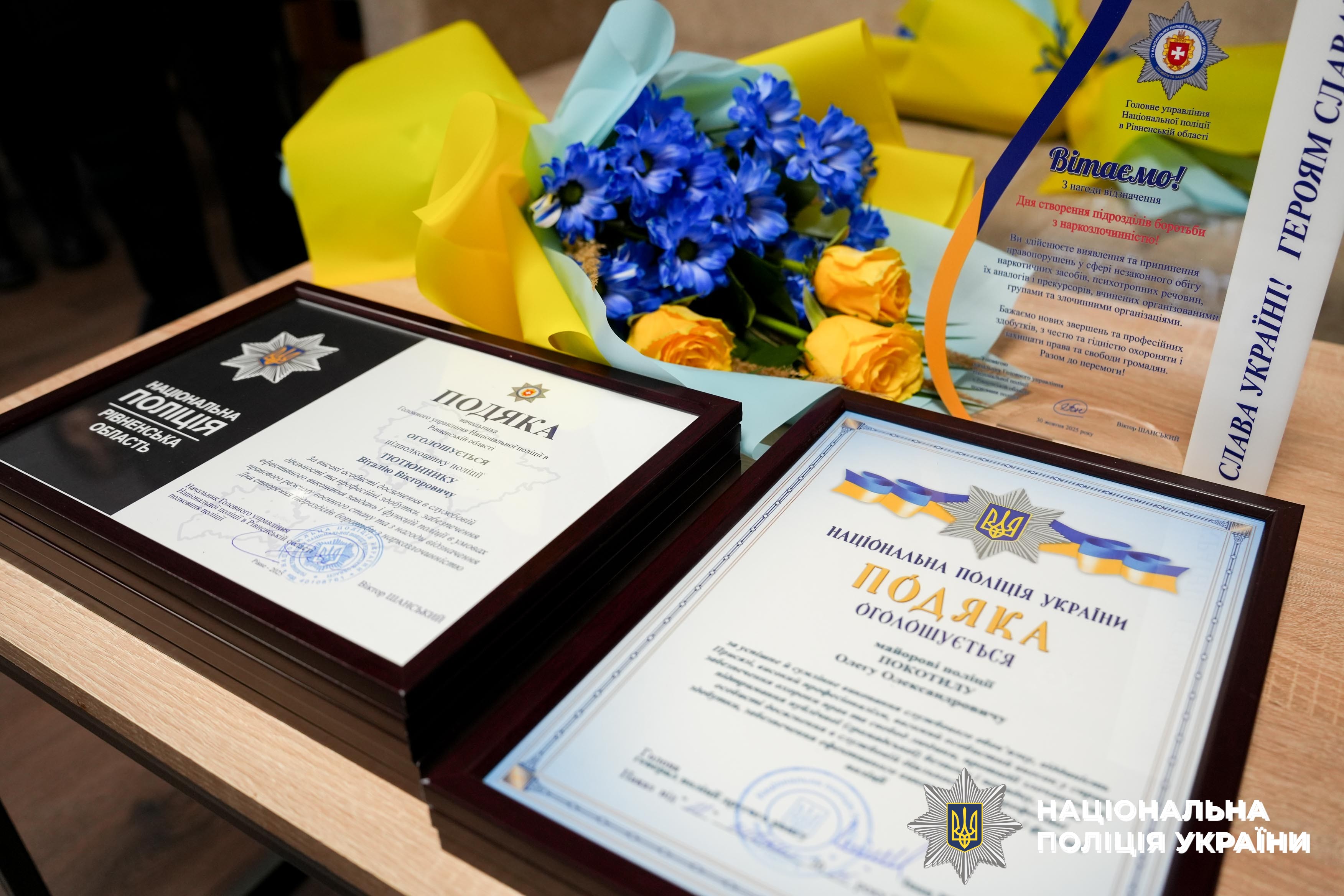 «Ваша щоденна робота — це вагомий внесок у протидію незаконному обігу наркотиків, захист життя та здоров’я громадян. Ви стоїте на передовій боротьби з одним із найнебезпечніших видів злочинності, - зазначив очільник поліції Рівненщини Віктор Шанський. – Тож бажаю вам міцного здоров’я, витримки, професійних успіхів та нових досягнень у службі на благо українського народу».
