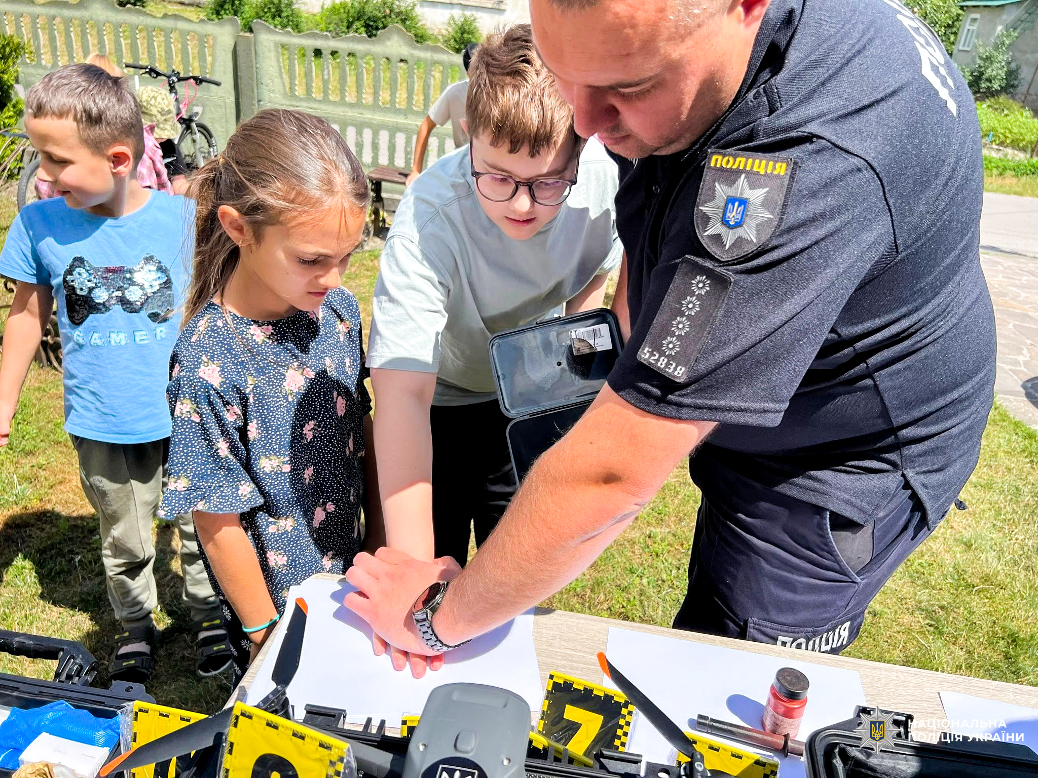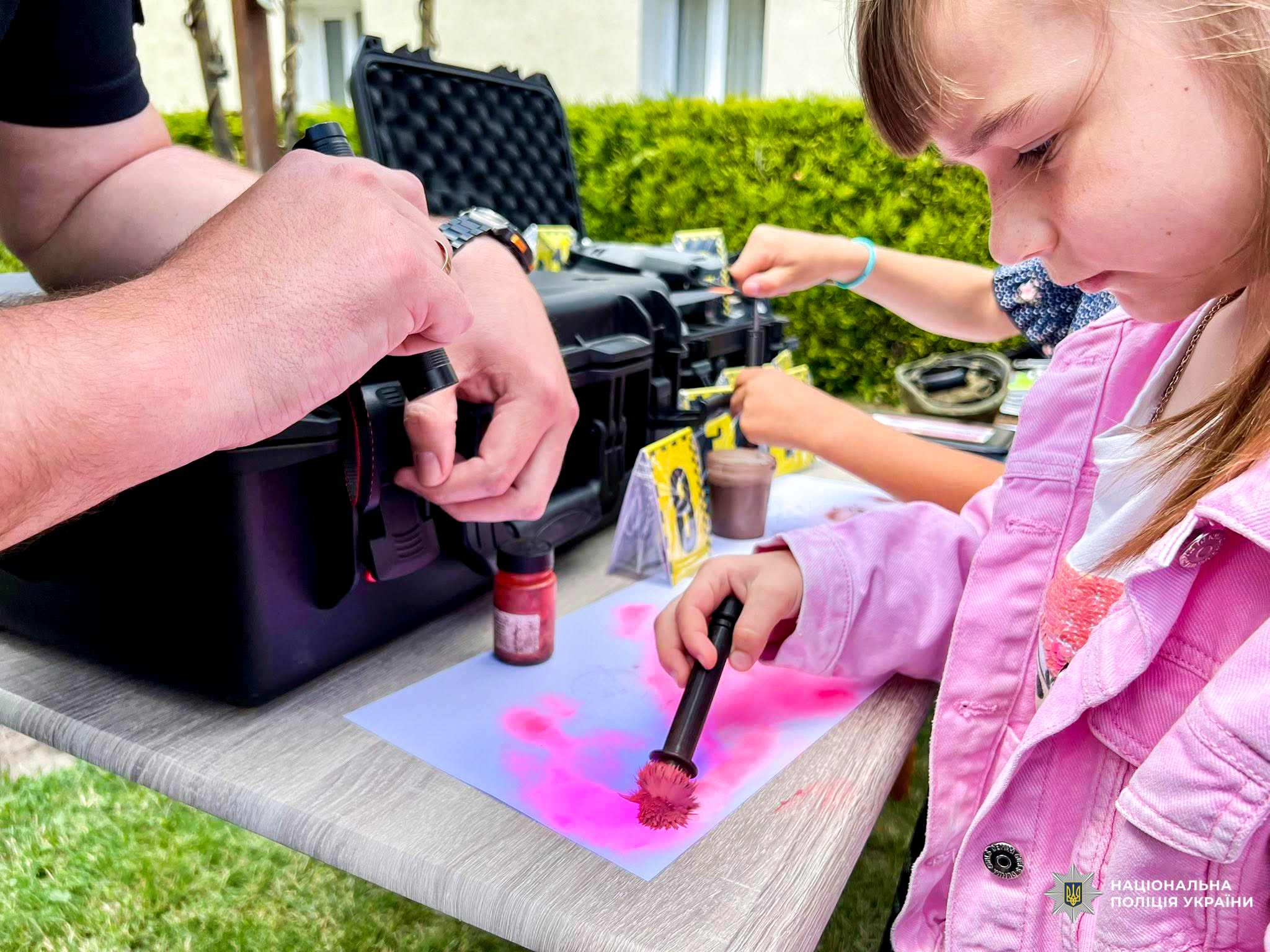 Однак, найбільше малечі сподобалася робота криміналіста: юні учасники заходу спробували вилучити відбитки пальців із поверхні. Також правоохоронці піднімали у повітря дрон, який неодноразово допомагав їм під час пошуку зниклих.