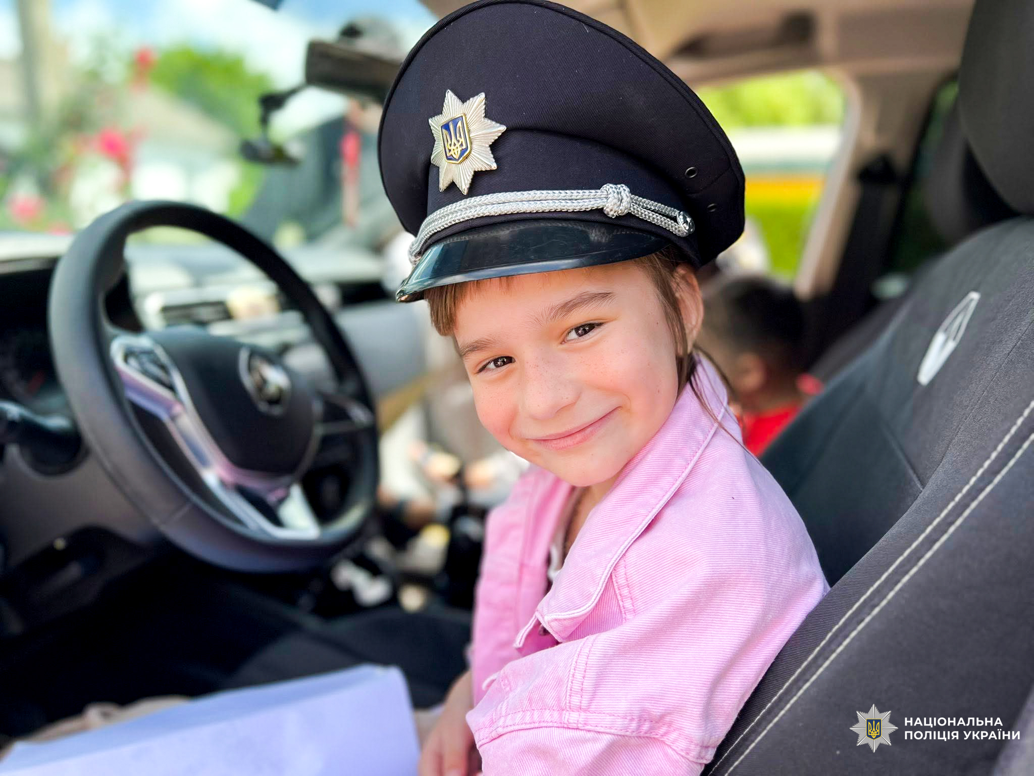 Дітям продемонстрували спеціальні засоби, а потому дозволили приміряти поліцейську амуніцію та посидіти у службовому авто.