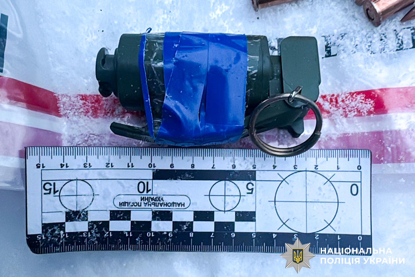 Слідчий повідомив фігуранту про підозру у вчиненні злочину, передбаченого ч.1 ст.263 (незаконне поводження зі зброєю, бойовими припасами або вибуховими речовинам) КК України. Усе вилучене скеровуватимуть на експертизу.