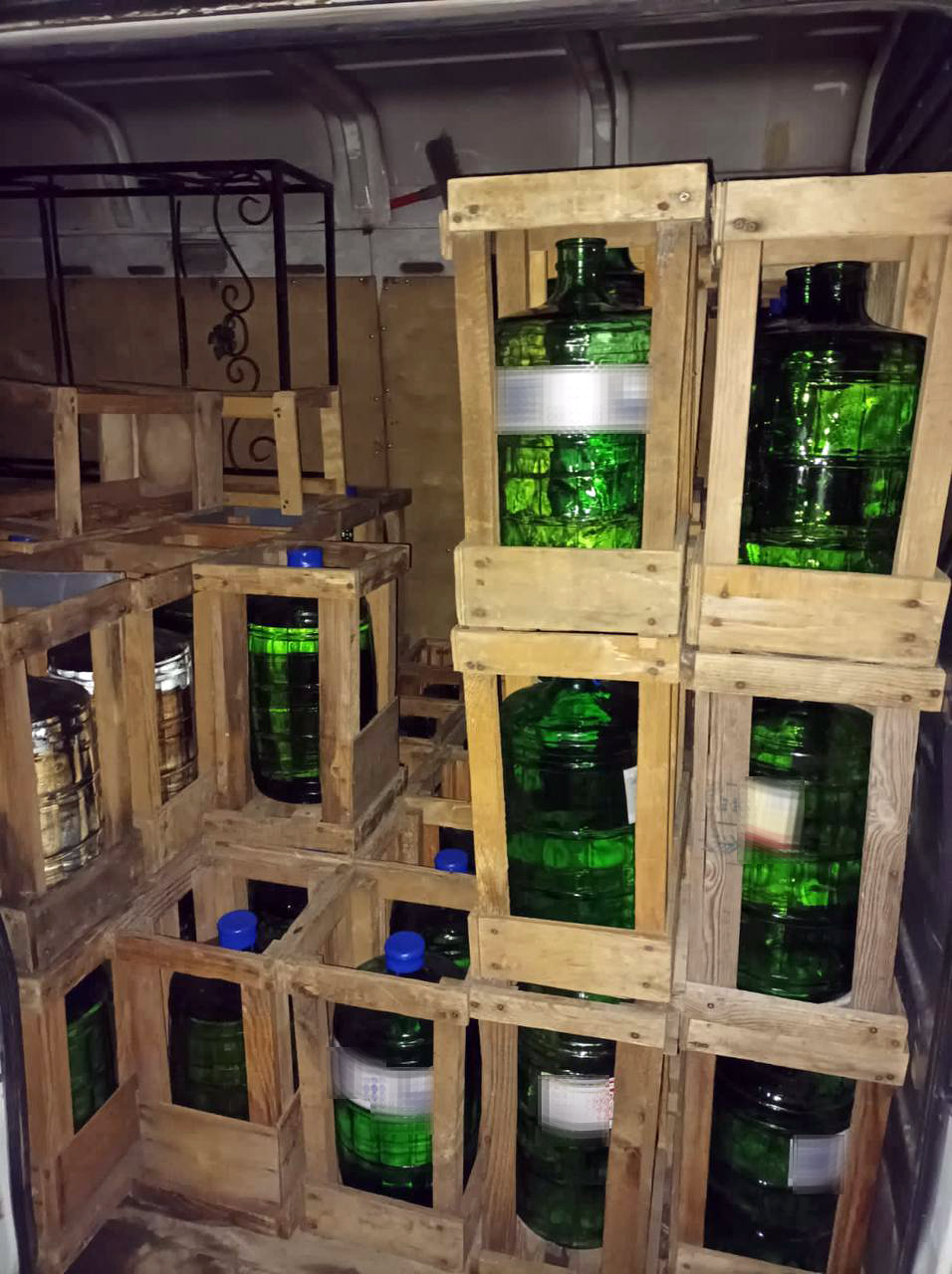 Під час огляду буса правоохоронці виявили в багажному відділенні скляні ємності об’ємом по 10 літрів, в яких містилася рідина із різким запахом спирту.