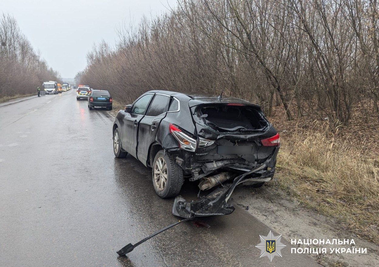 Від удару «BMW» став некерованим та виїхав на зустрічну смугу, де зіткнувся із службовим авто патрульних поліцейських, які рухалися в зустрічному напрямку.