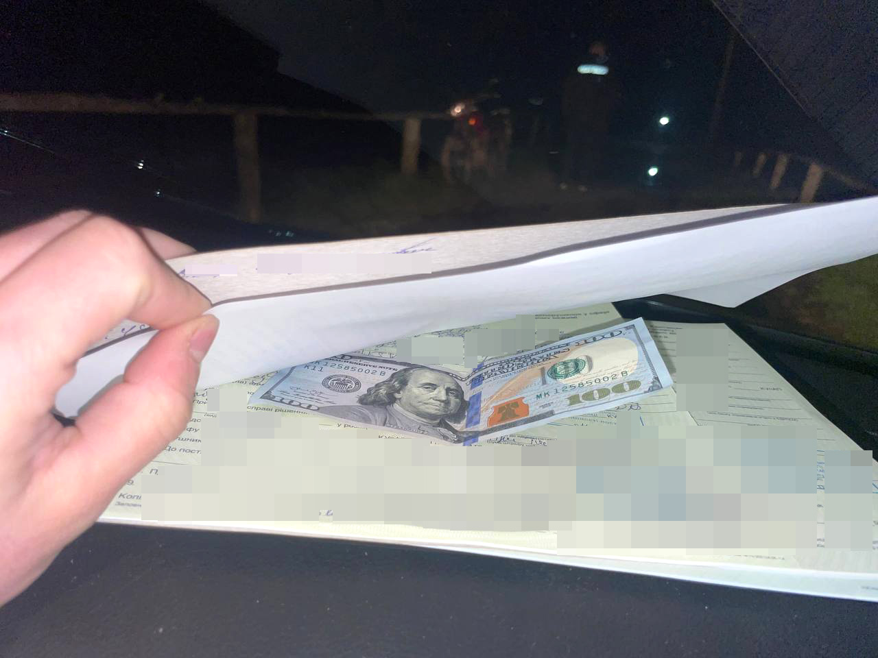 З метою уникнення адмінвідповідальності порушник запропонував поліцейським неправомірну вигоду. Попередження про кримінальну відповідальність його не зупинило: у папку з документами, яка знаходилась в службовому авто, нетверезий керманич поклав 100 доларів США.