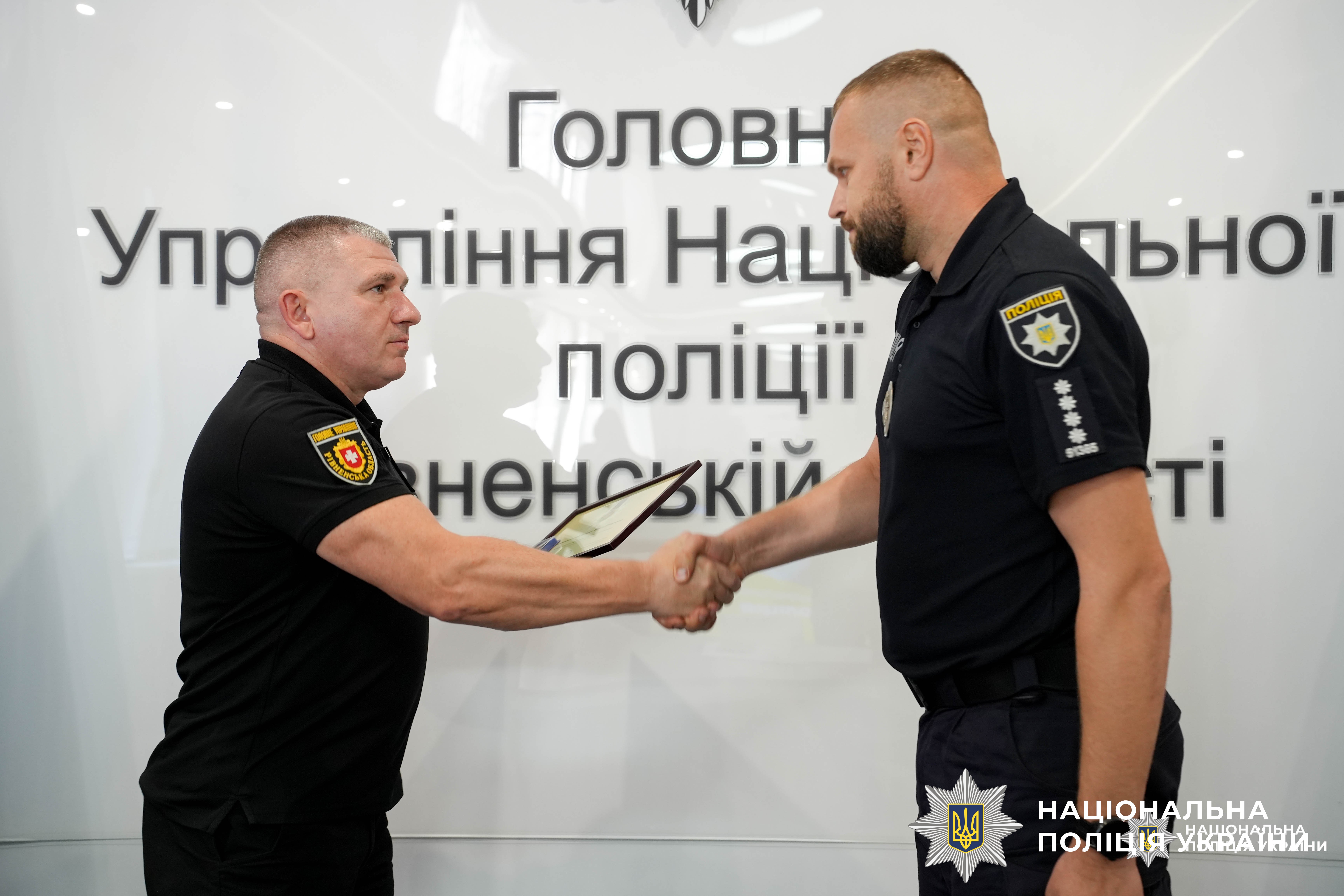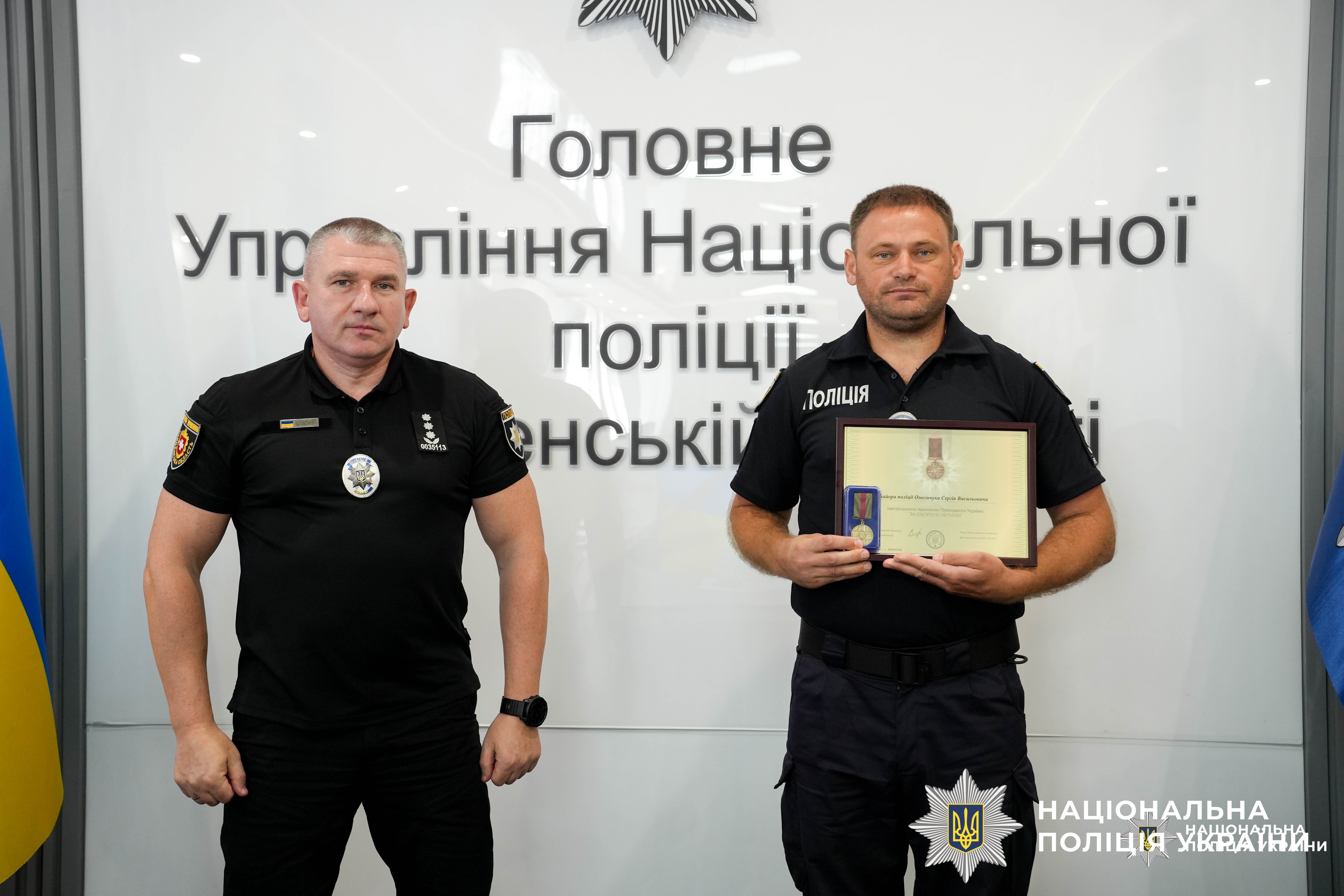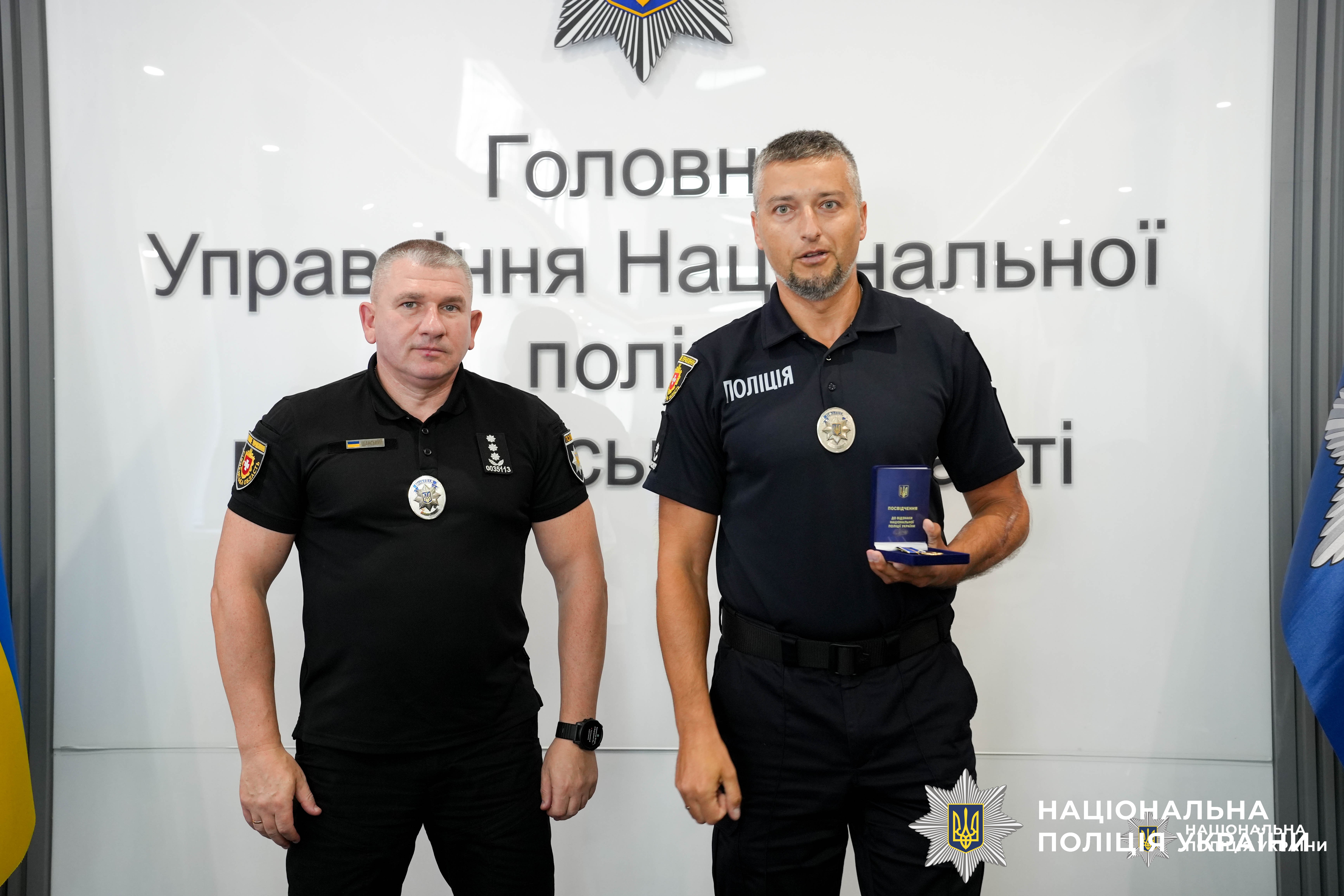 Віктор Шанський вручив п’ятьом поліцейським державні нагороди, а саме Відзнаки Президента України «За оборону України» та медаль «20 років сумлінної служби». Крім того, помічник начальника ГУНП з питань ветеранської політики Михайло Кучер та інспектор 1 категорії відділу забезпечення вибухобезпеки Управління вибухотехнічної служби Олександр Ємець поділилися своїм бойовим досвідом та розповіли, як за допомогою медичної та психологічної підтримки знайшли в собі сили та повернулися у стрій.