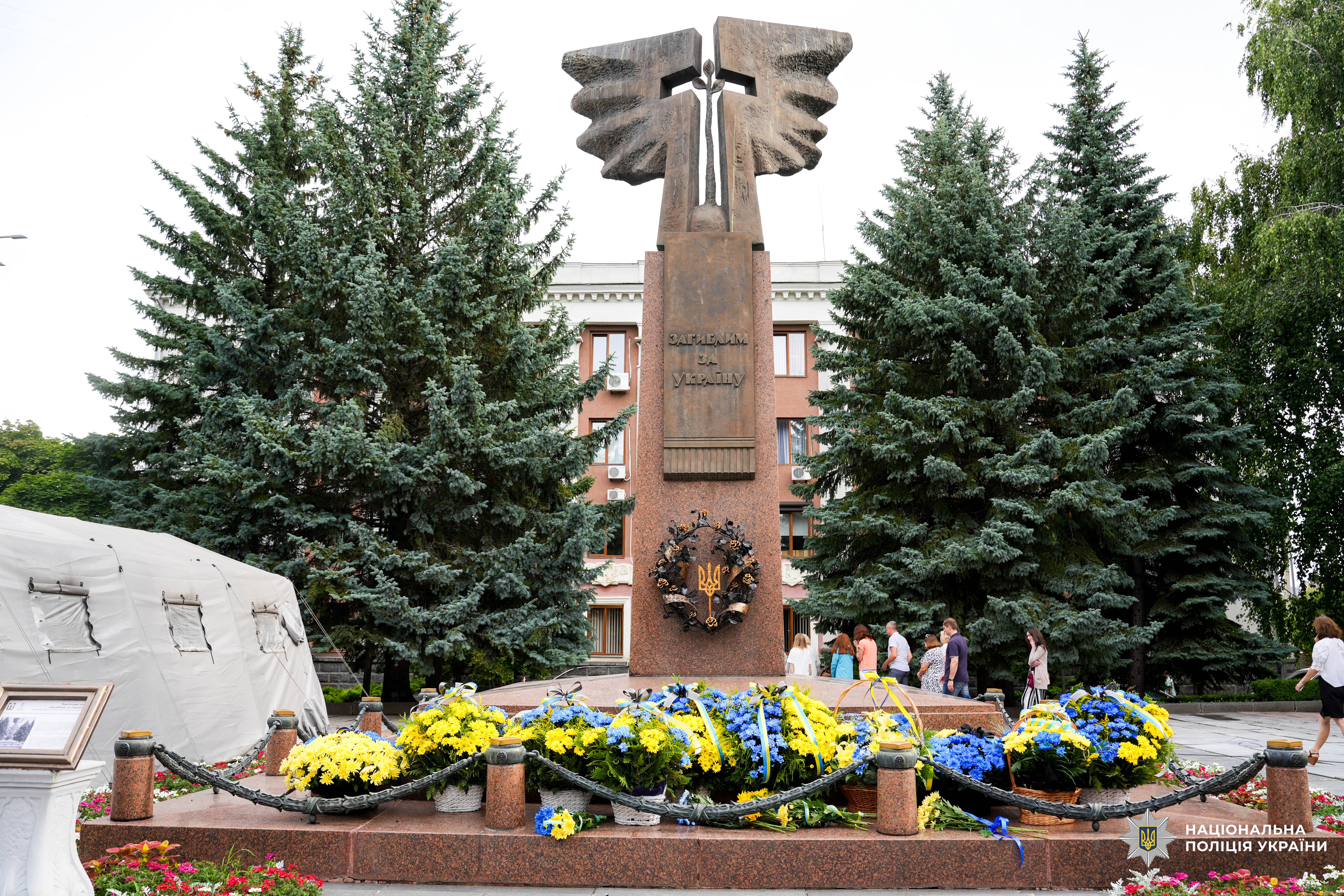 Очільник поліції області Віктор Шанський разом із керівниками силових структур, обласної й міської рад, а також із рівнянами вшанували пам'ять полеглих Героїв та поклали квіти до монументу Загиблим за Україну.