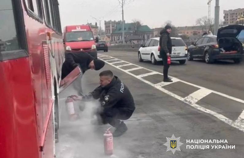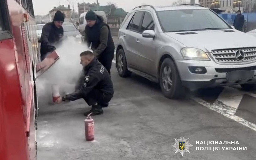 У Рівному поліцейський офіцер громади загасив палаючий тролейбус