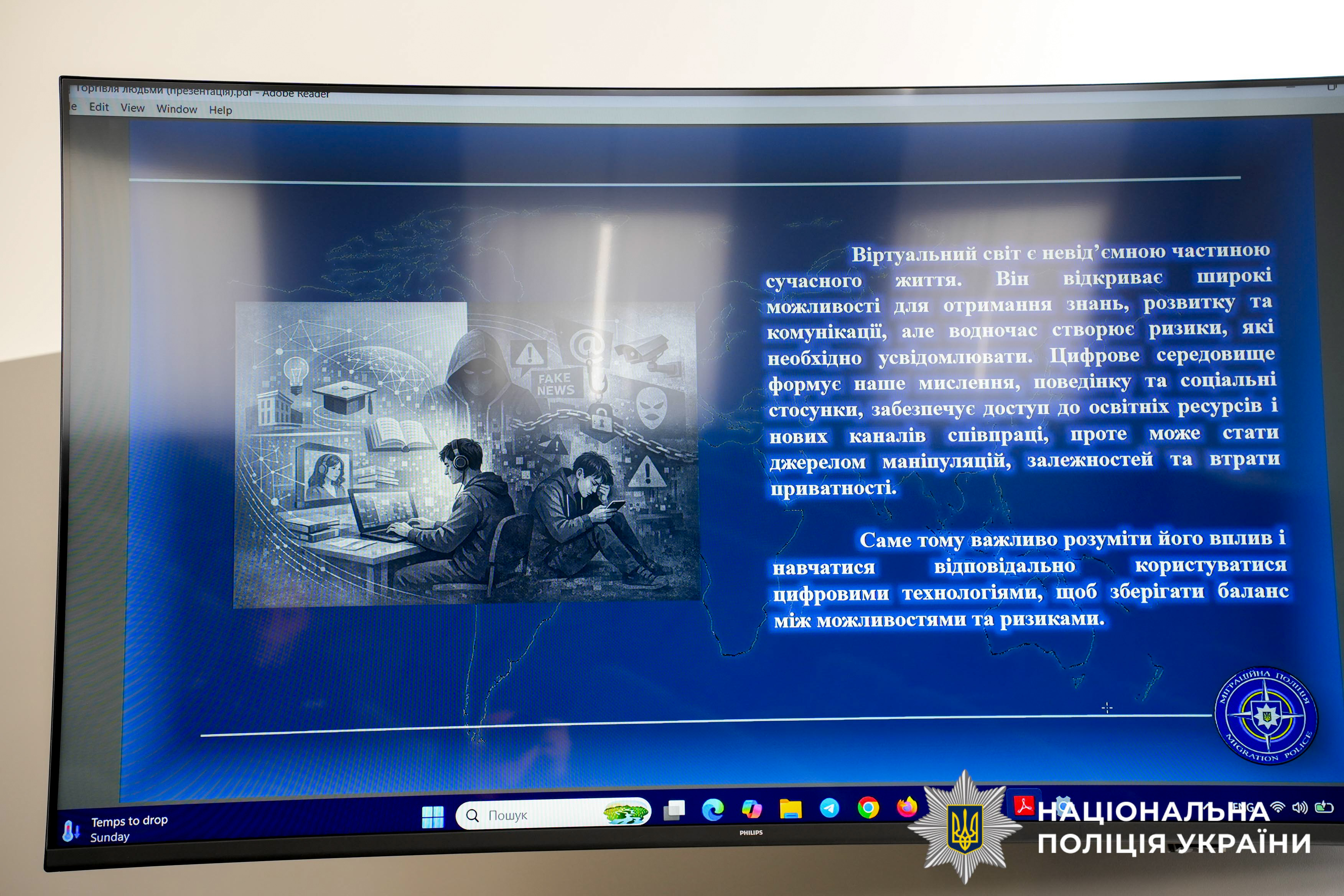 Особливу увагу приділили темі кібербезпеки дітей: працівники міграційної поліції роз’яснили поняття онлайн-грумінгу, нагадали як розпізнавати ознаки сексуальних домагань в інтернеті, а також проаналізували новітні форми та методи експлуатації, які використовують зловмисники.