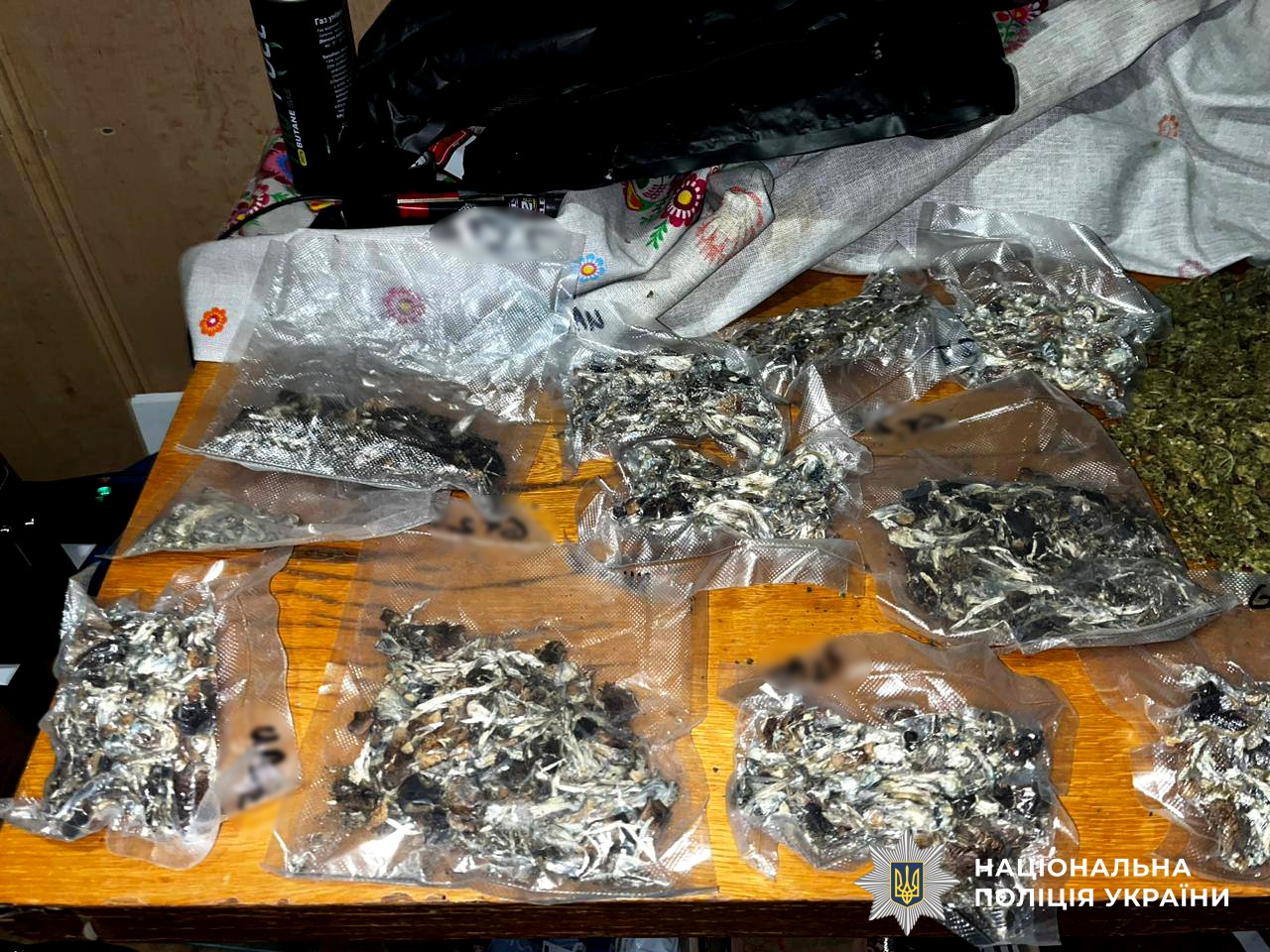 Під час обшуку за місцем його проживання правоохоронці виявили та вилучили 460 г канабісу, 220 г галюциногенних грибів, а також мобільні телефони, банківські картки, електронні ваги, вакууматор. Відомо, що він уже потрапляв у поле зору поліцейських за зберігання наркотиків.