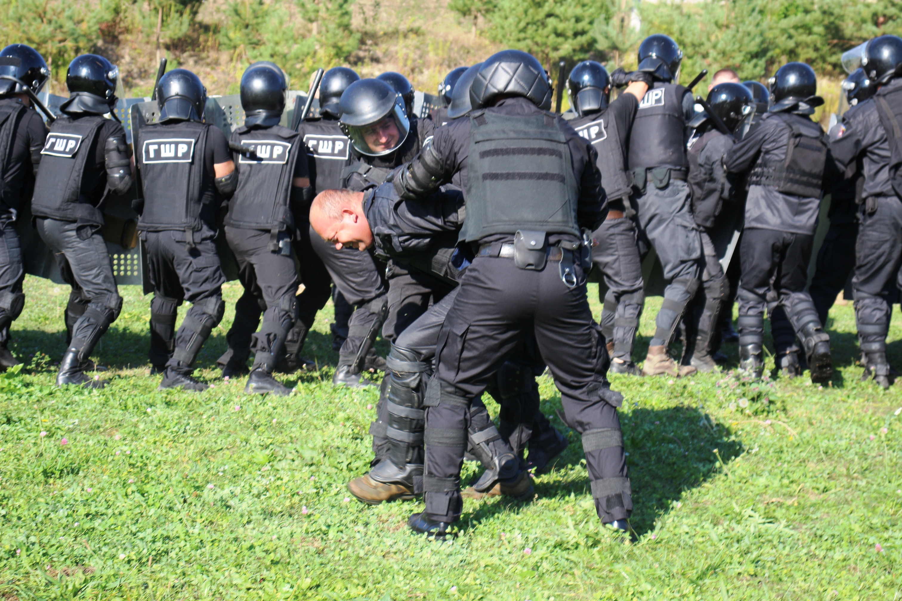 За умовним сценарієм декілька ув’язнених влаштували бунт. Їхні протиправні дії припиняли працівники ГШР. Під час втечі одного з них працівникам підрозділу допомагала затримувати службова собака Арна під чітким керівництвом кінолога.