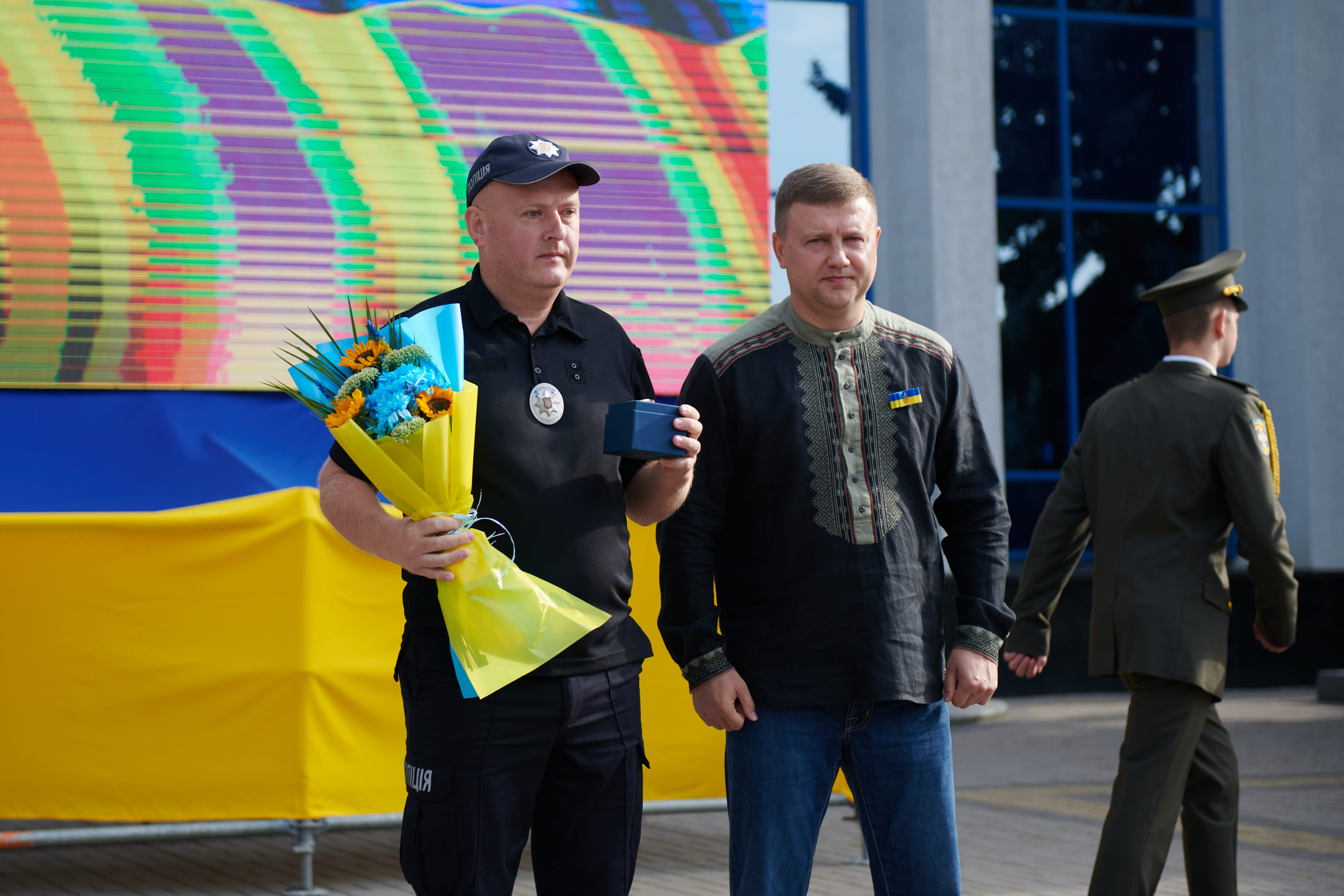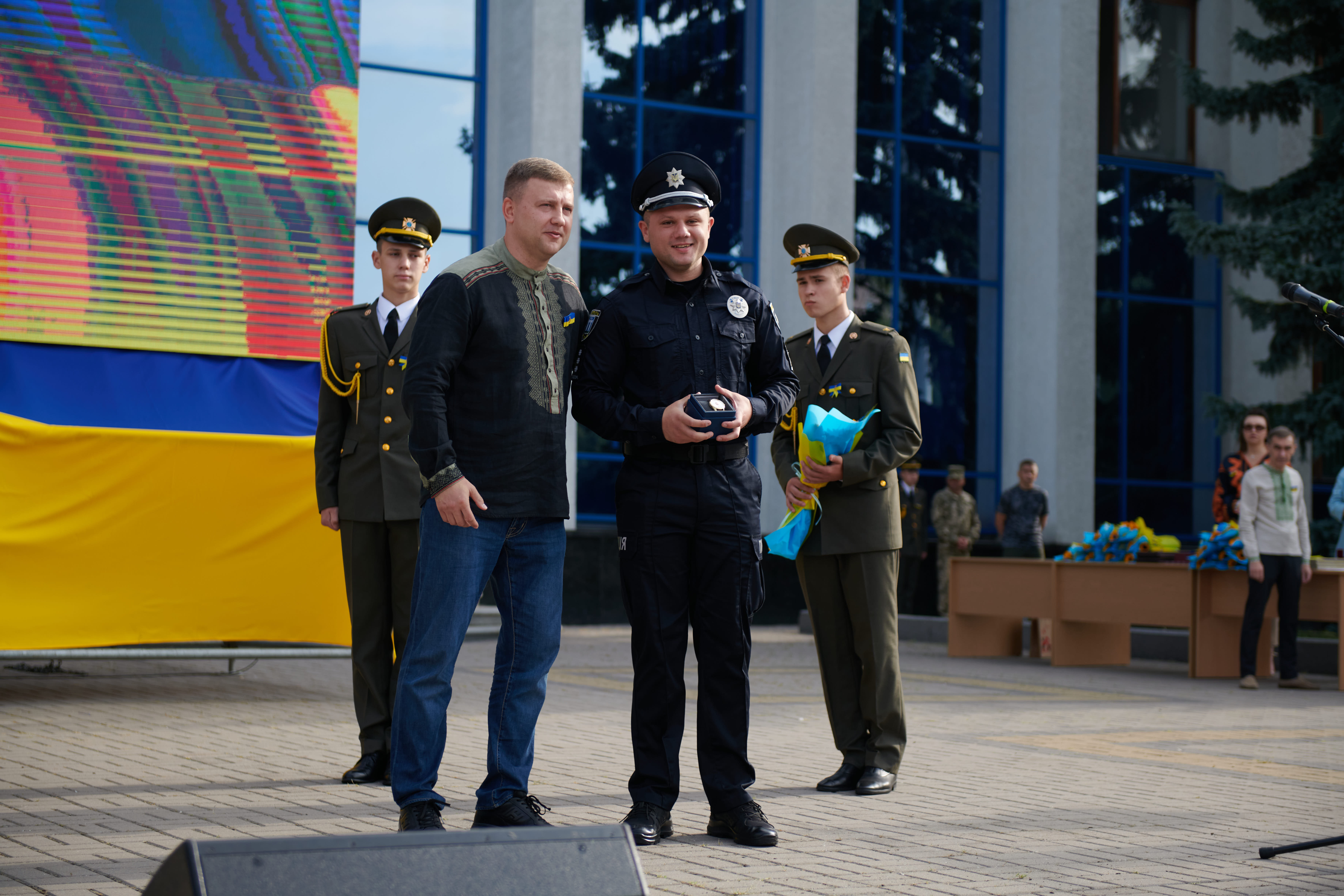 Участь в урочистому піднятті державного стягу в обласному центрі взяв особисто начальник Головного управління Національної поліції Олександр Ганжа.