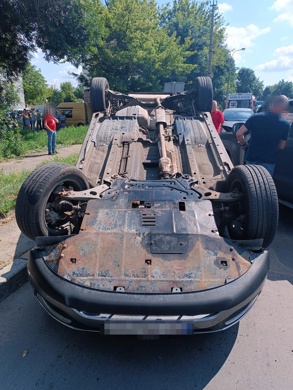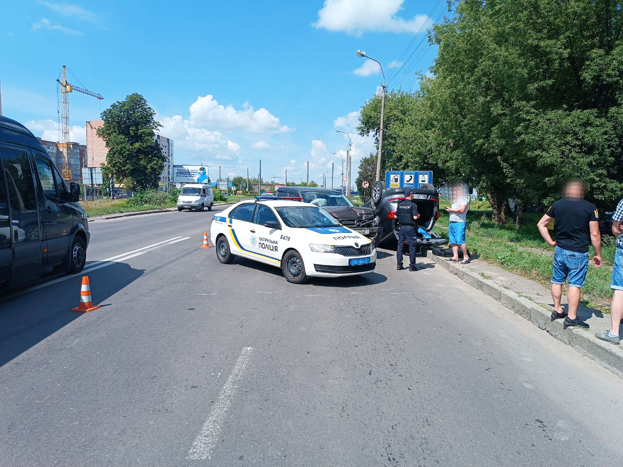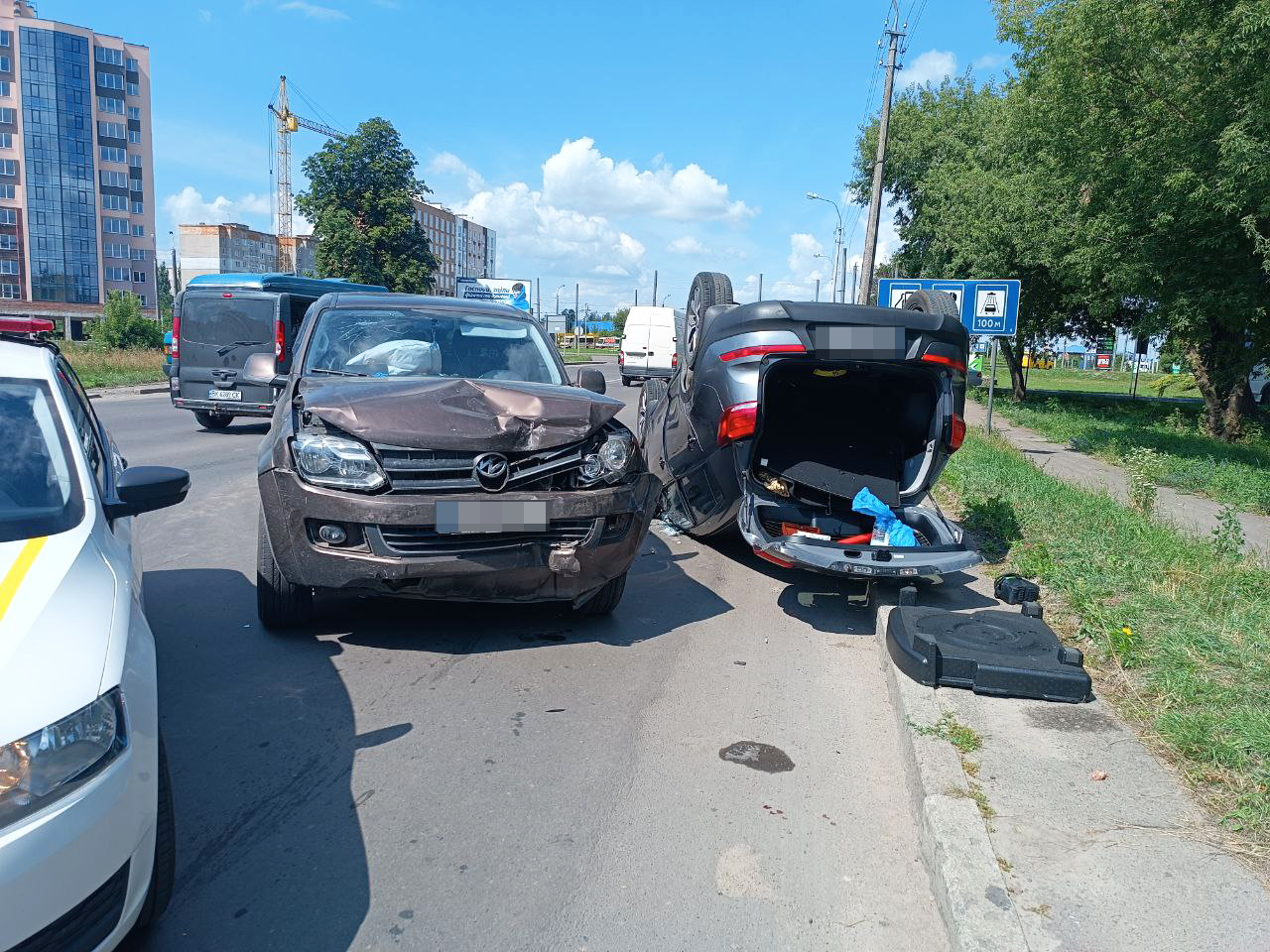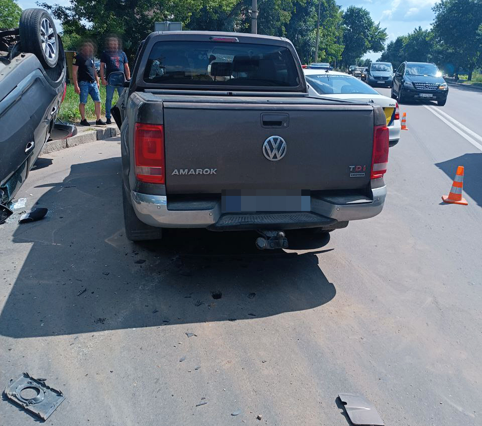 Поліцейські встановили, що 30-річна жителька обласного центру, водійка автомобіля «Kia Sportage», виїжджаючи з прилеглої території, не надала переваги в русі пікапу «Volkswagen Amarok». Внаслідок зіткнення кросовер перекинувся.