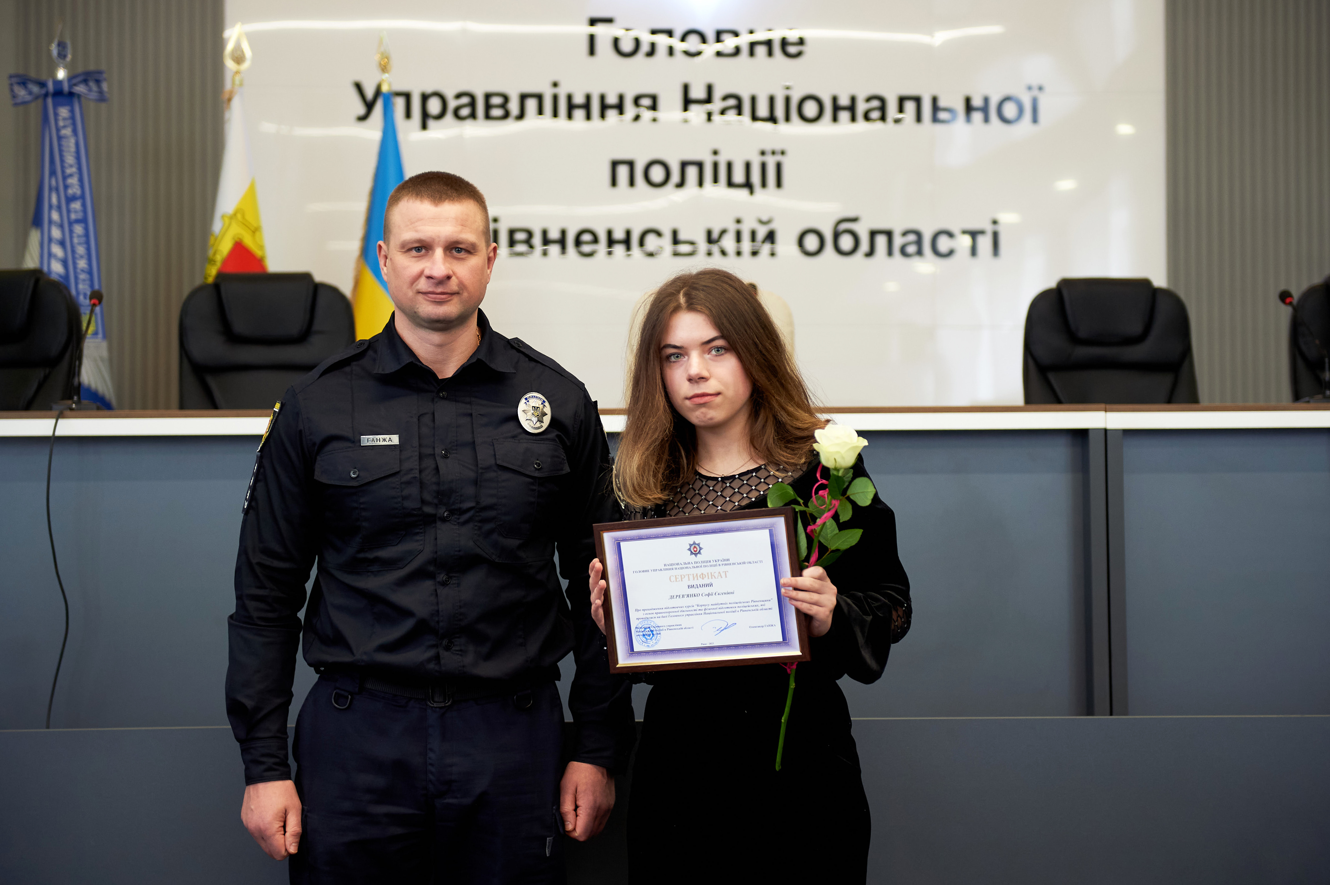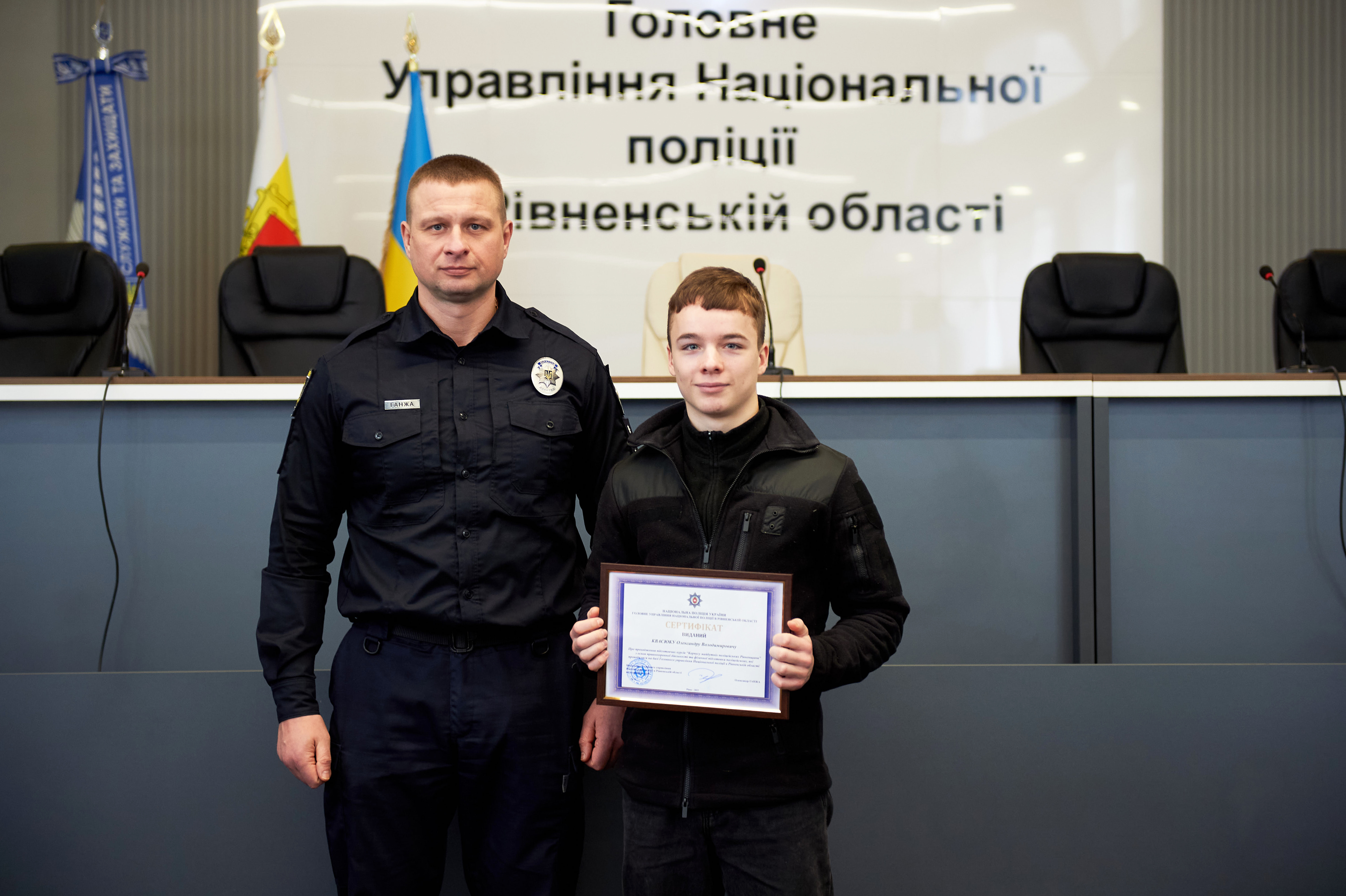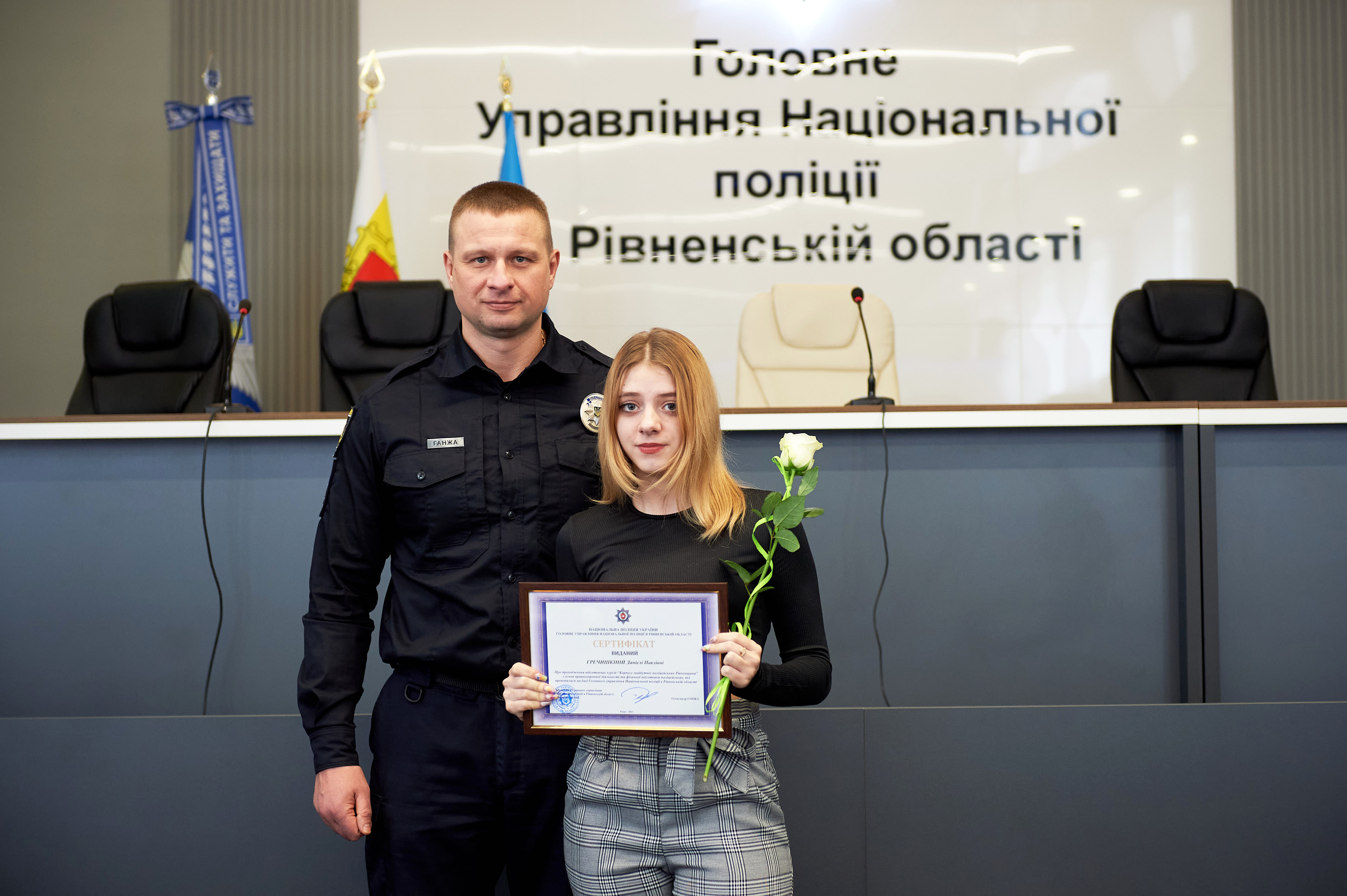 Сертифікати про завершення тримісячного освітнього курсу в ГУНП в Рівненській області отримали сьогодні, четвертого лютого, 33 старшокласники.