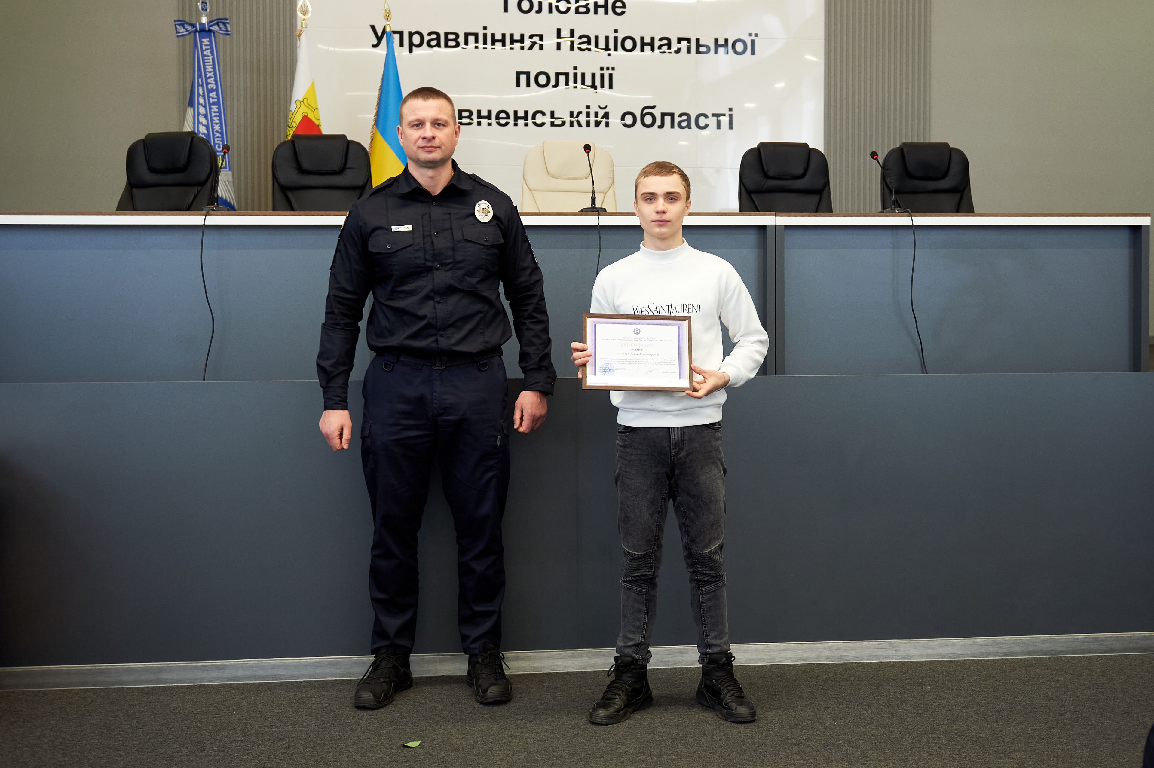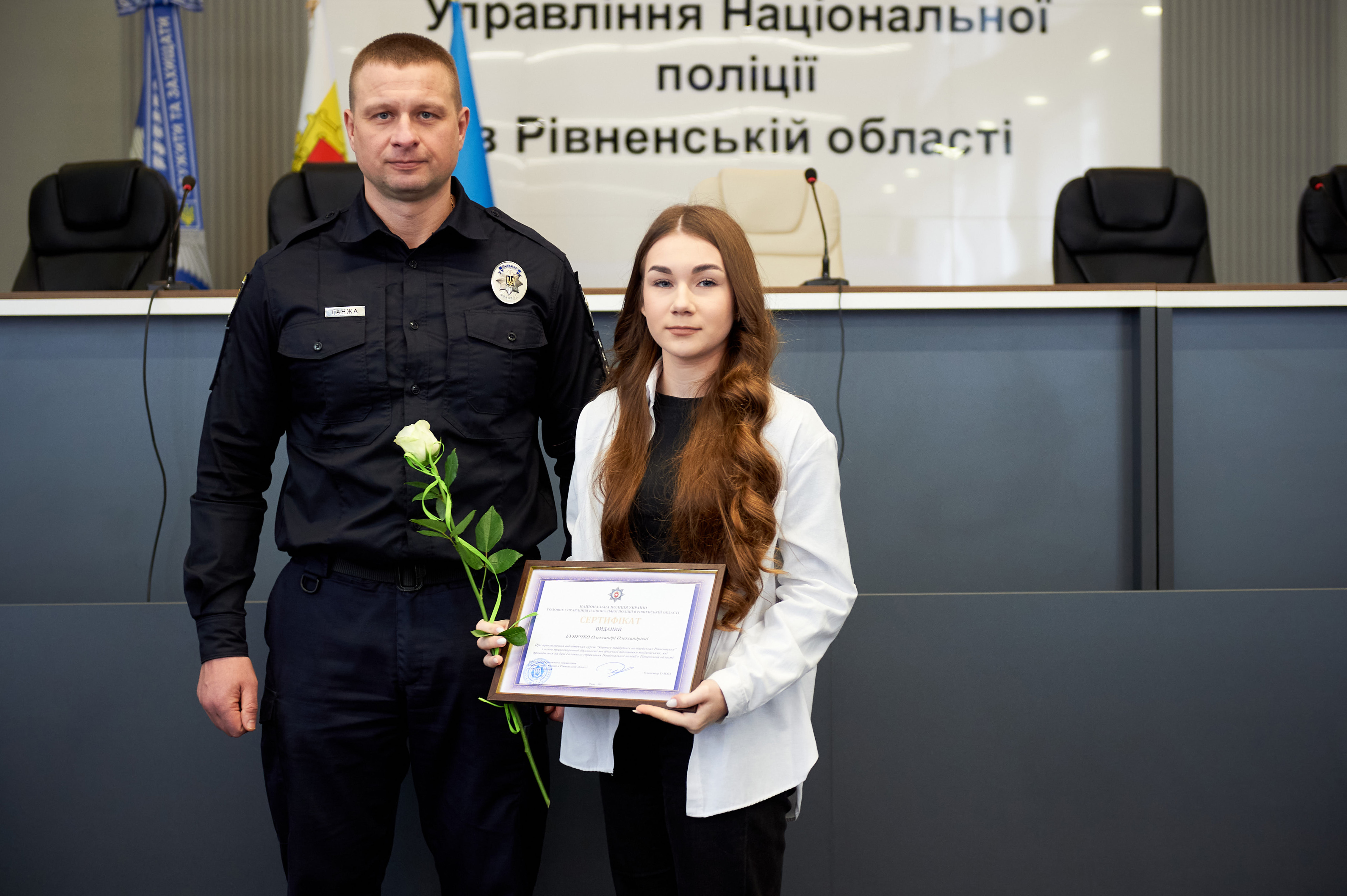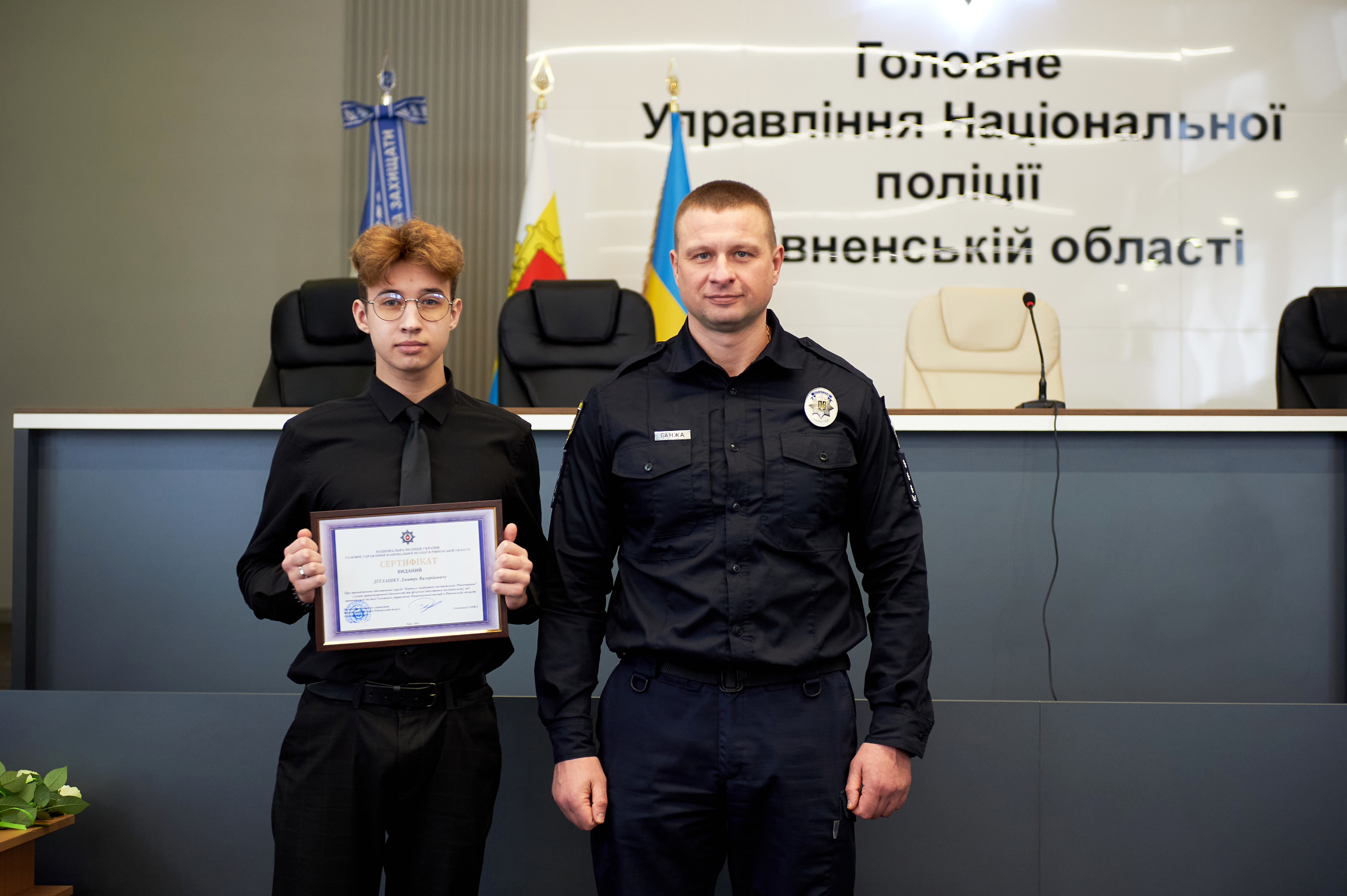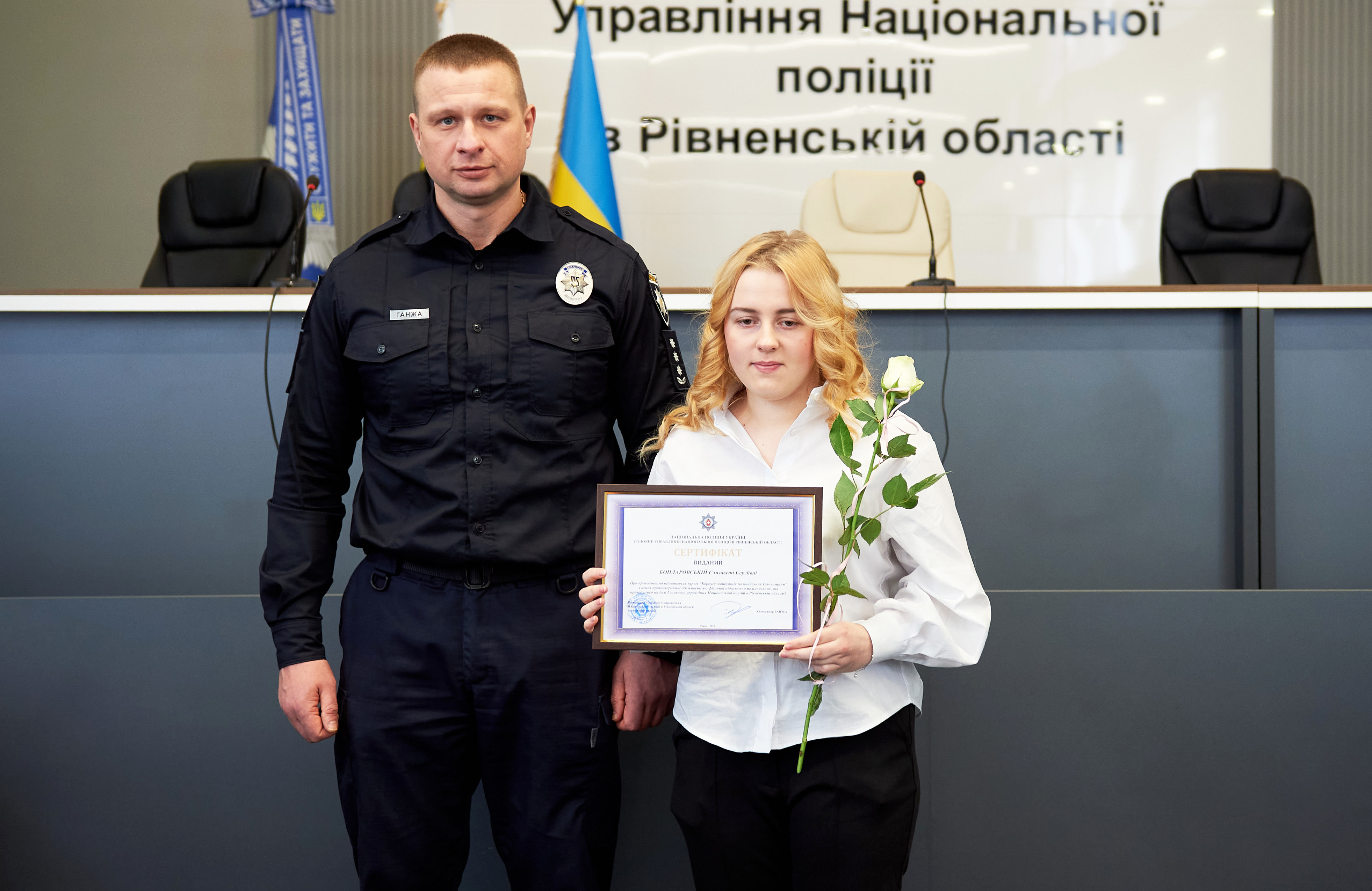 Сертифікати про завершення тримісячного освітнього курсу в ГУНП в Рівненській області отримали сьогодні, четвертого лютого, 33 старшокласники.