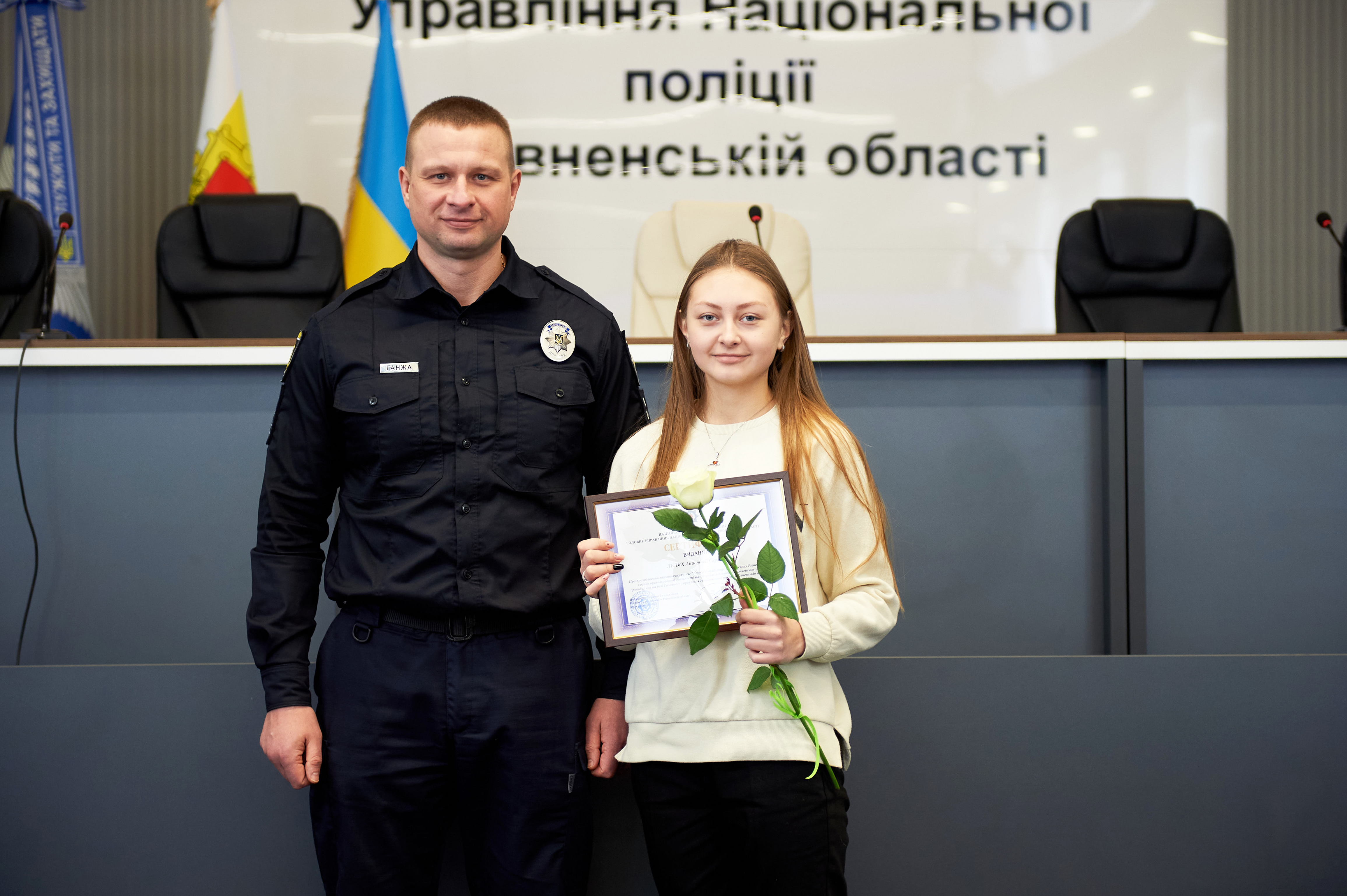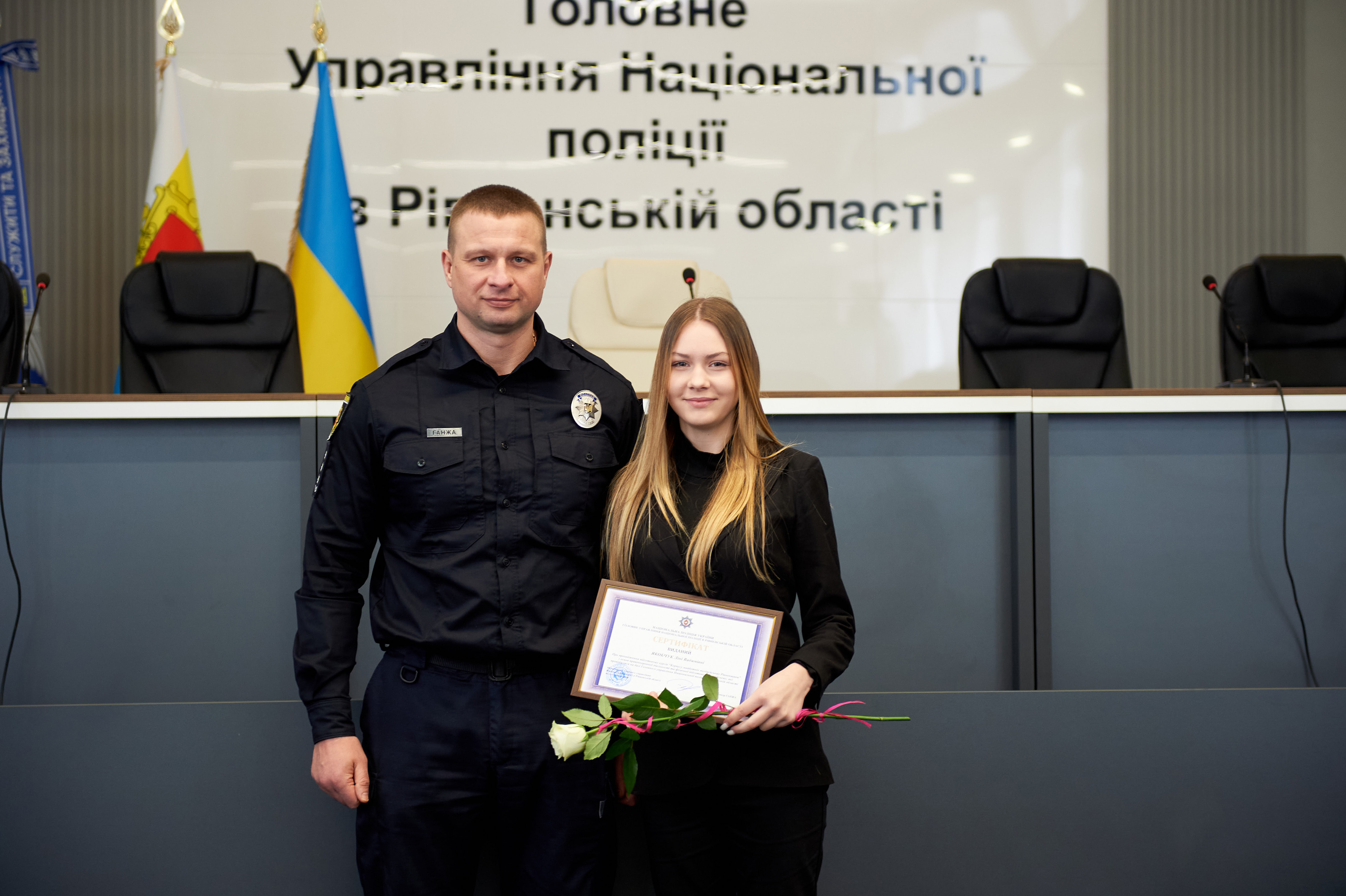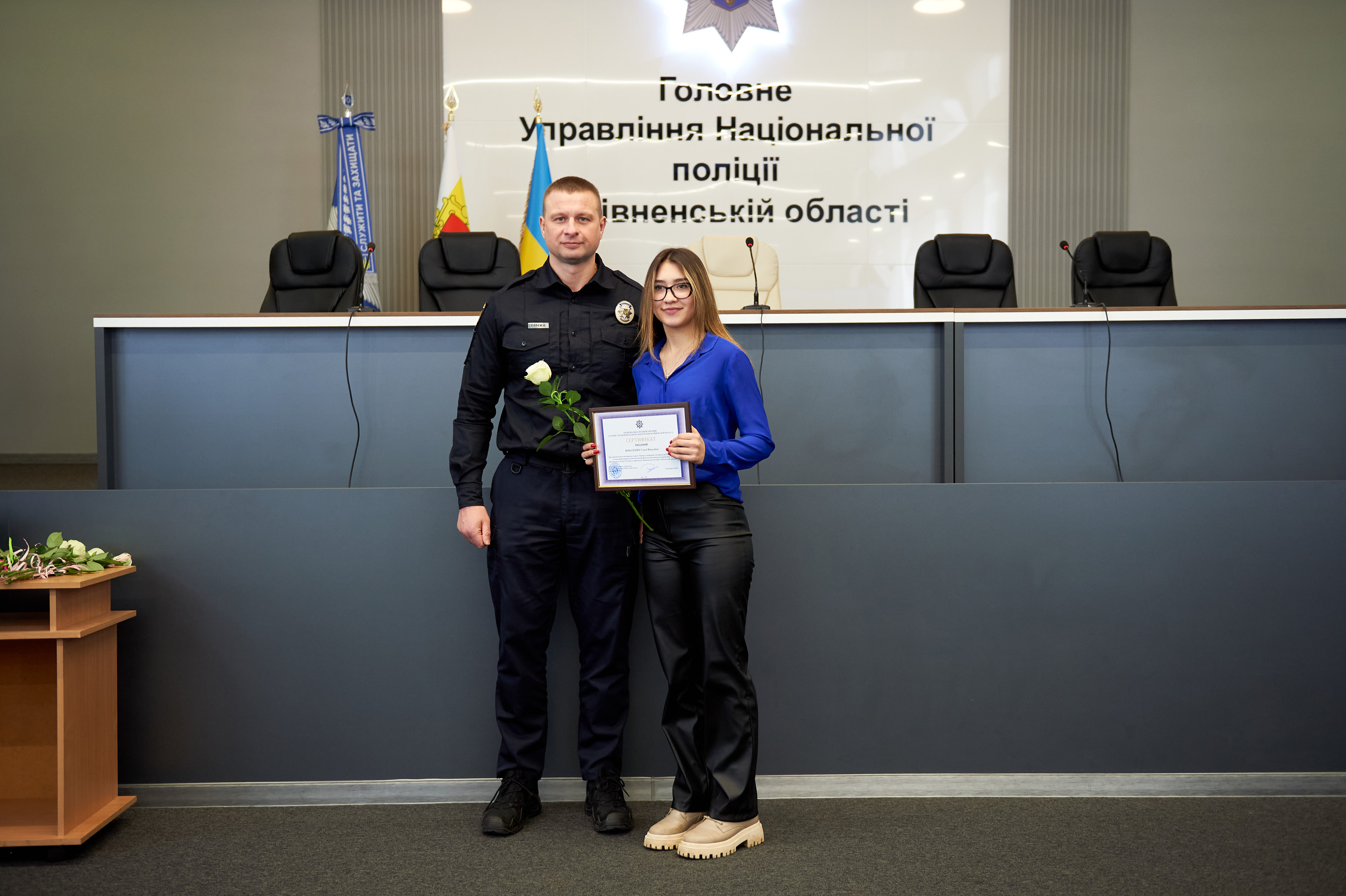У актовій залі Головного управління їх із цією подією привітали начальник Головного управління Національної поліції у Рівненській області Олександр Ганжа, працівники управління кадрового забезпечення та рідні.