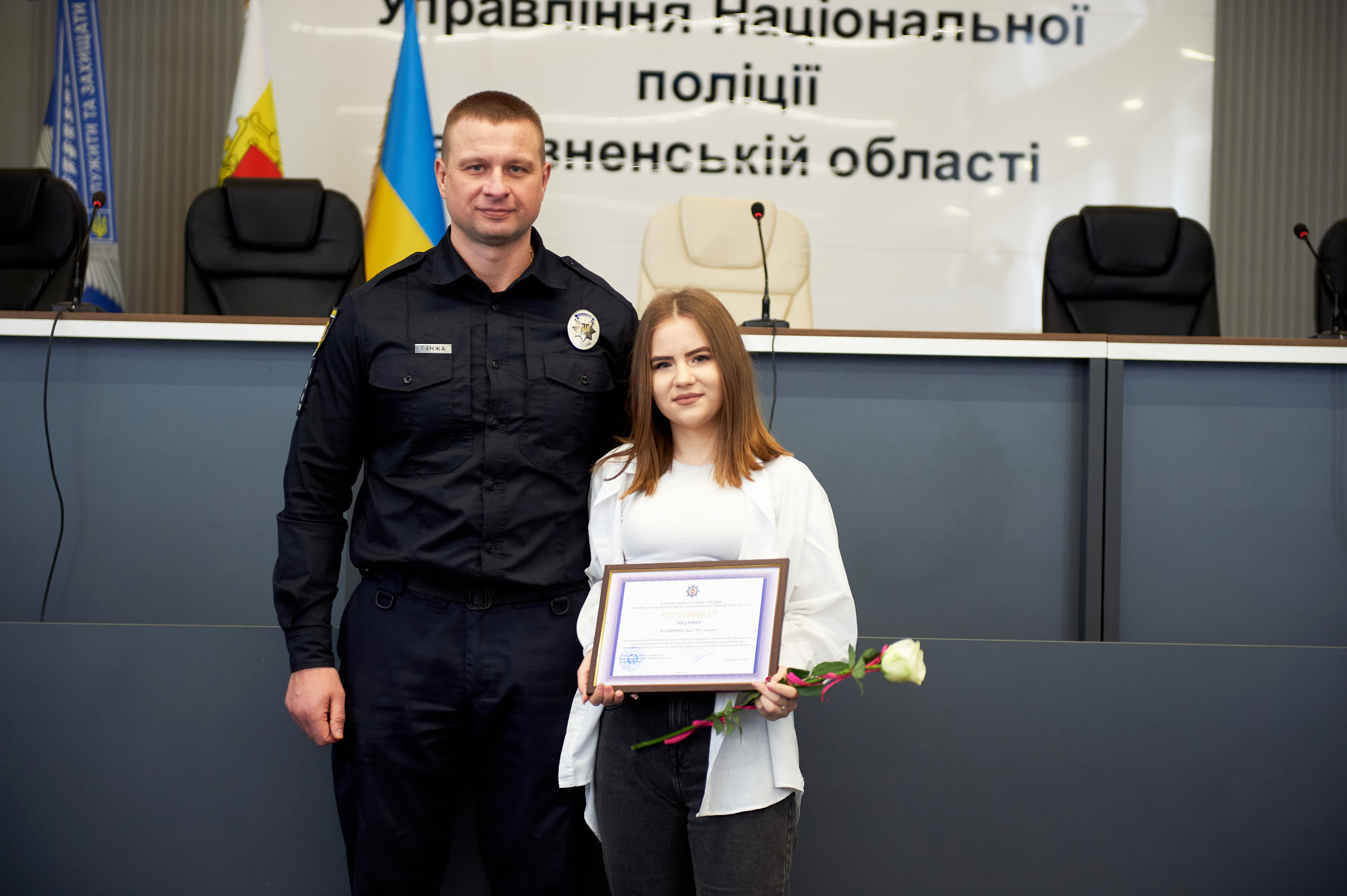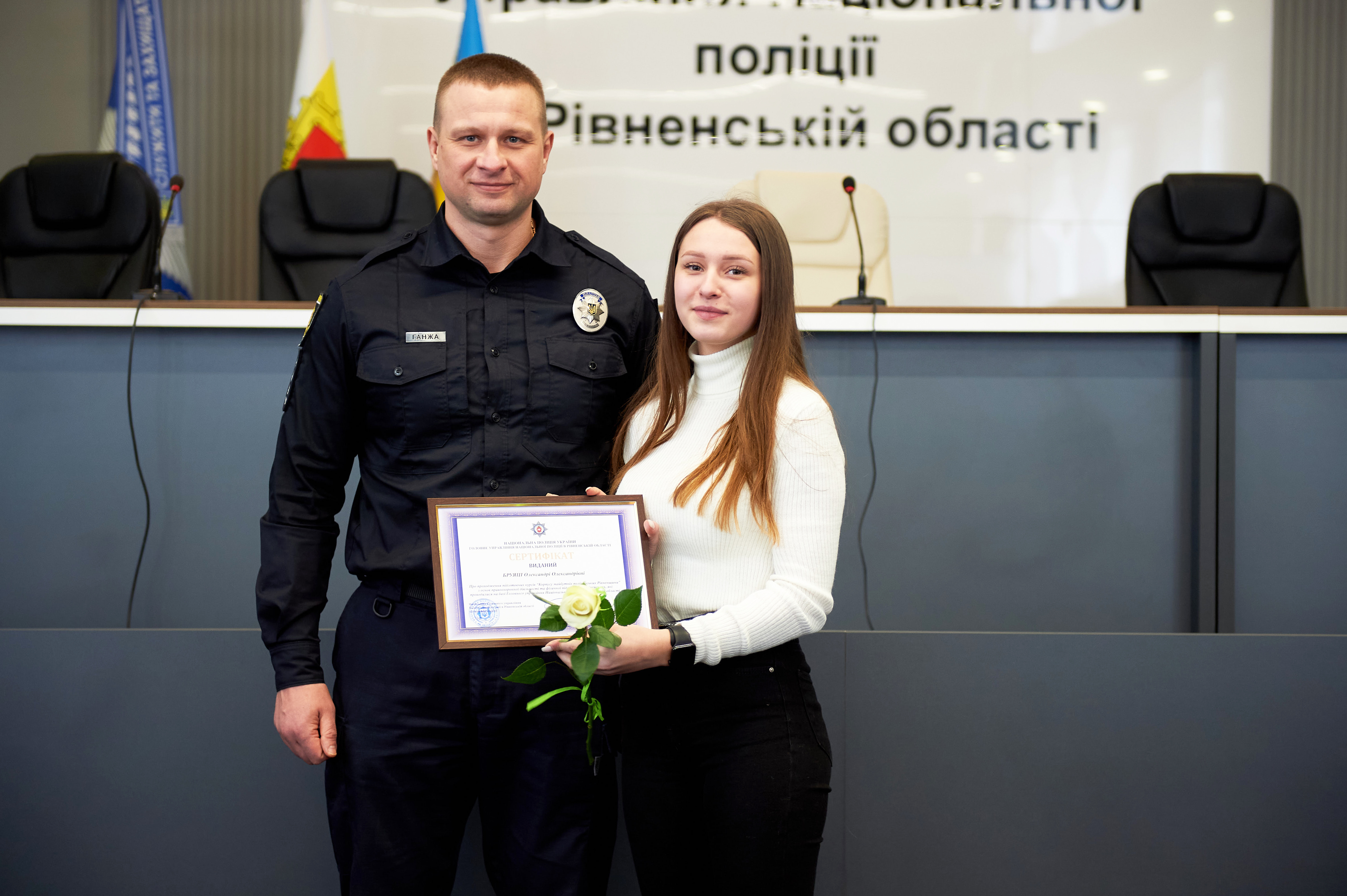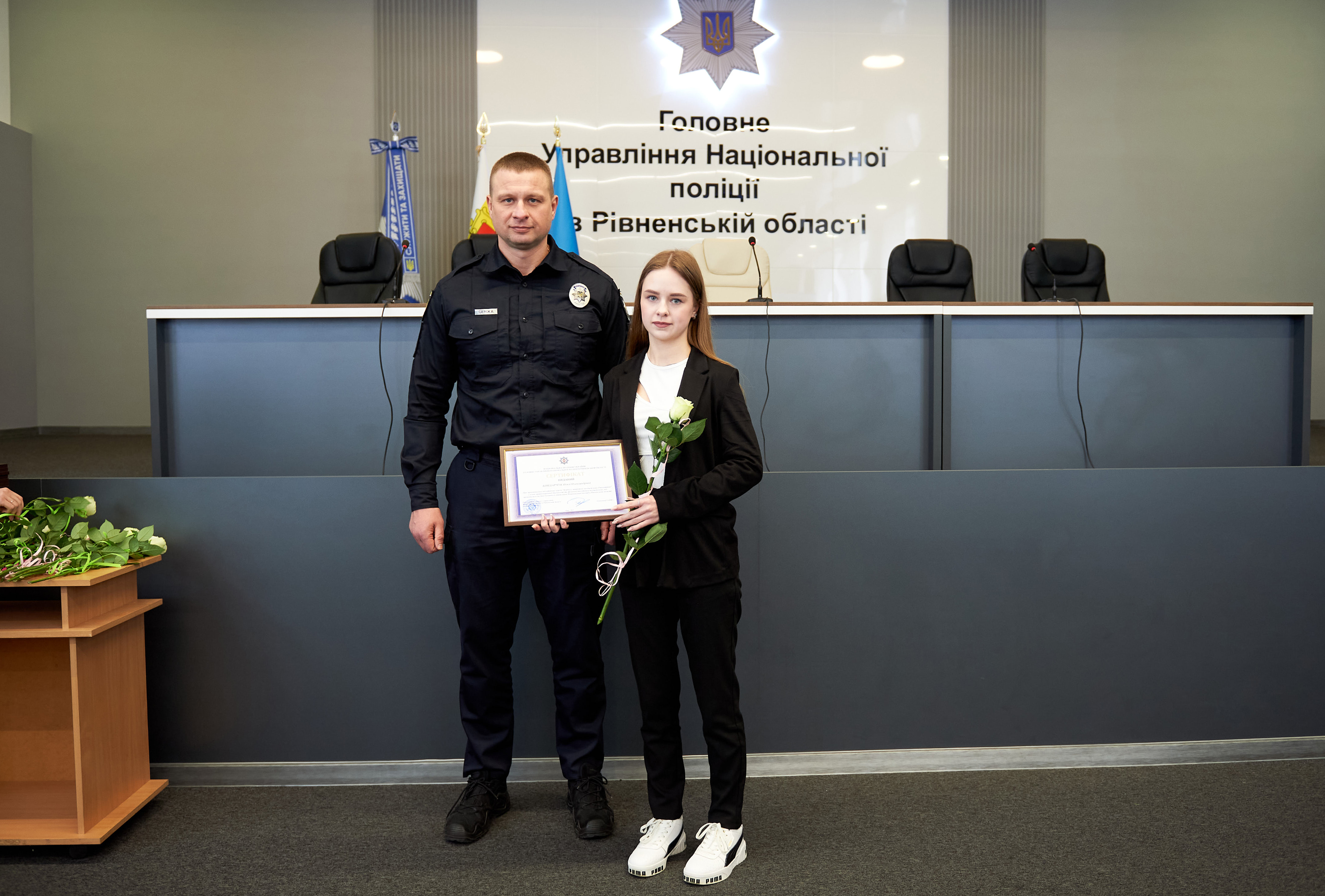 У актовій залі Головного управління їх із цією подією привітали начальник Головного управління Національної поліції у Рівненській області Олександр Ганжа, працівники управління кадрового забезпечення та рідні.