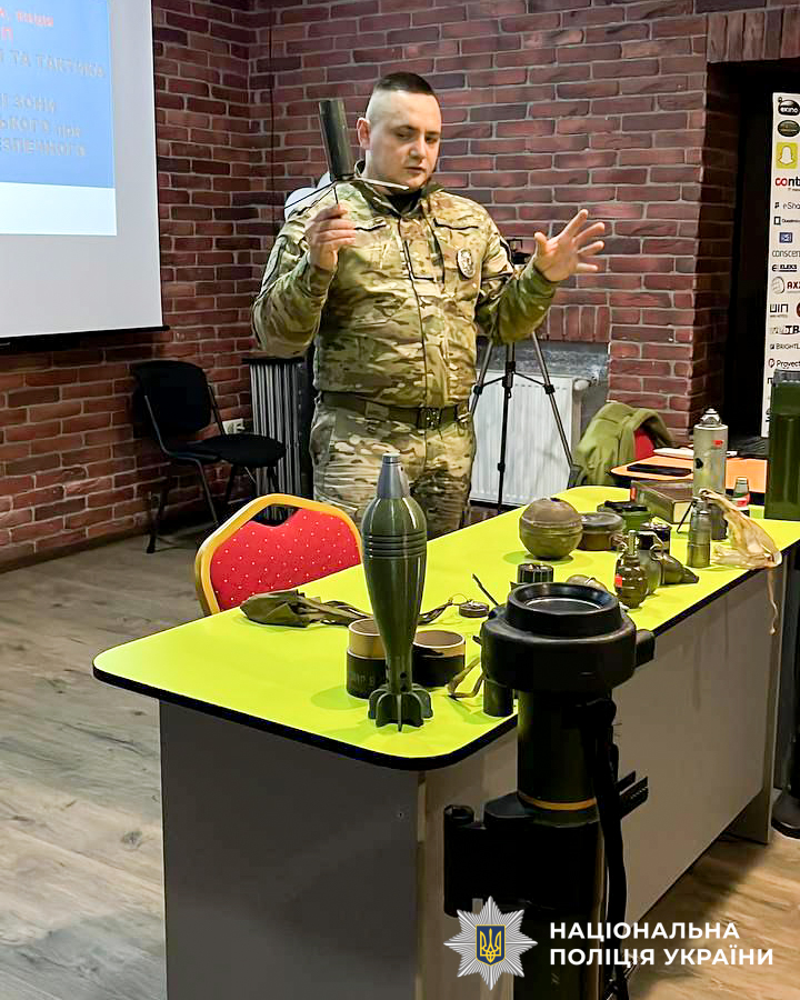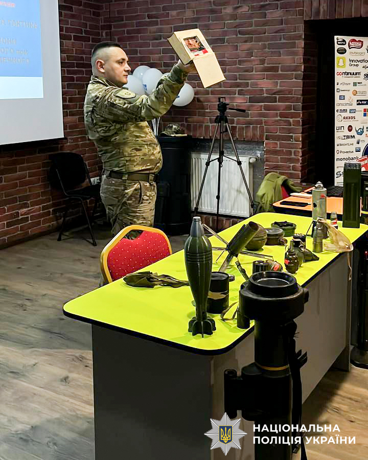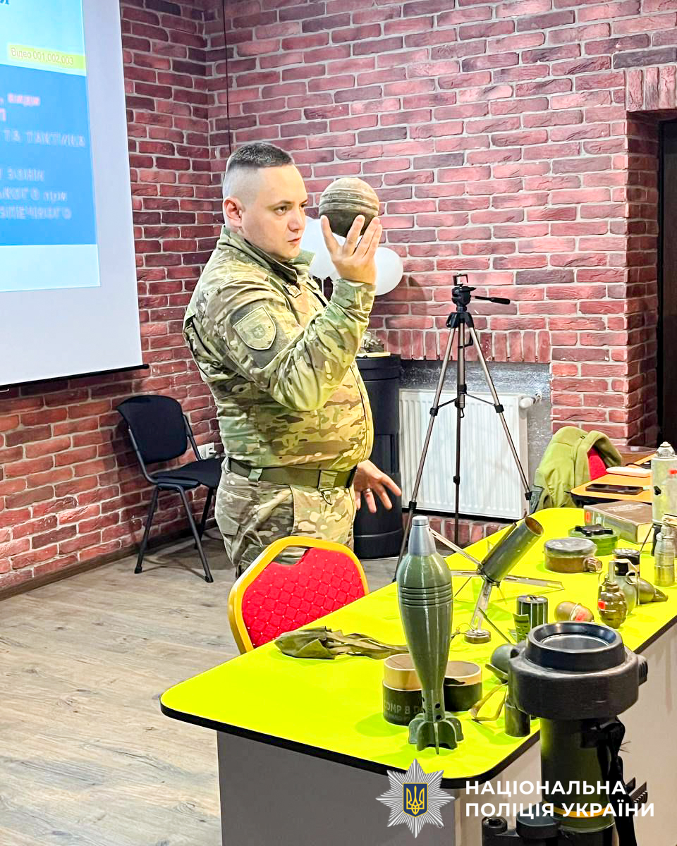 Особливу увагу приділили темі вибухових саморобних пристроїв, підкресливши, що вони можуть бути замасковані під звичайні побутові предмети, і їхня конструкція є непередбачуваною.