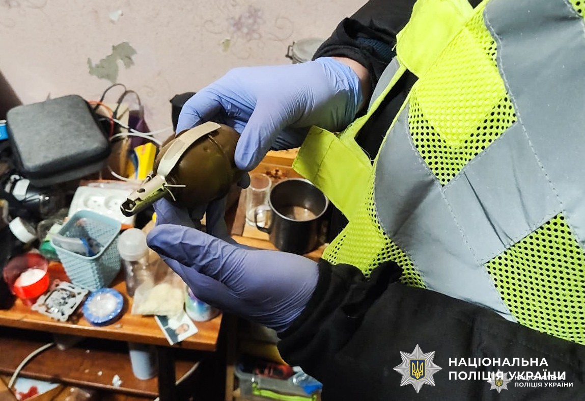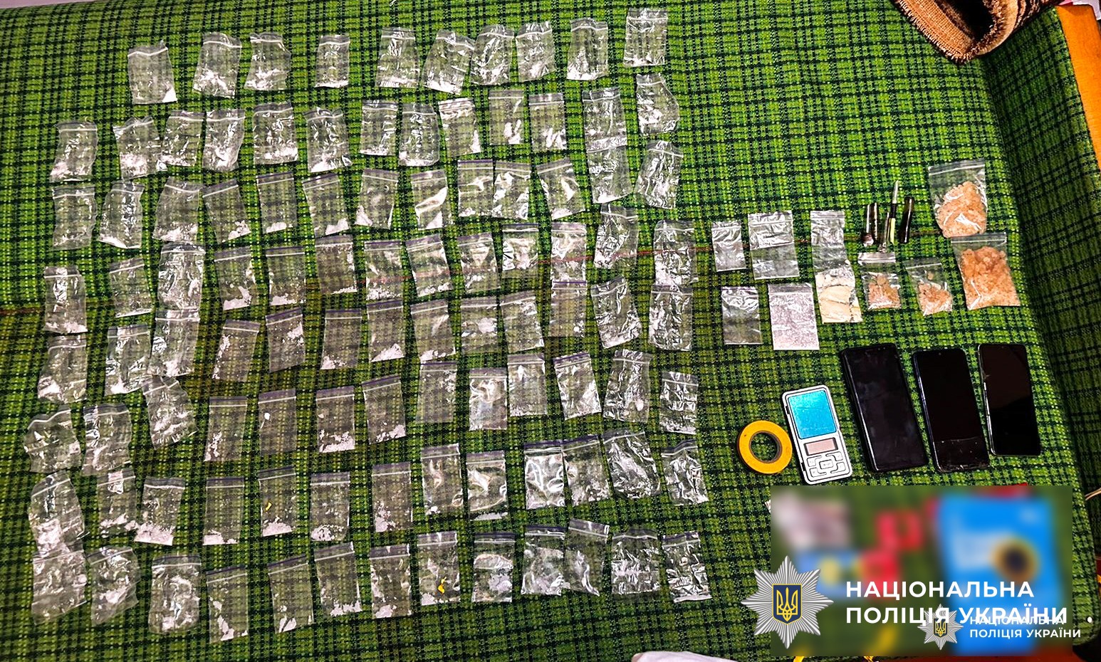 Правоохоронці за силової підтримки спецпризначенців провели санкціоновані обшуки за місцем проживання фігурантів, під час яких виявили та вилучили:психотропну речовину PVP вагою близько 700 грам, мефедрон вагою 60 грам, канабіс 100 грам,9 мобільних телефонів, електронні ваги, 6340 гривень, гранату РГД-5, поштові накладні, фасувальні зіп-пакети, банківські картки та ізольовану стрічку.