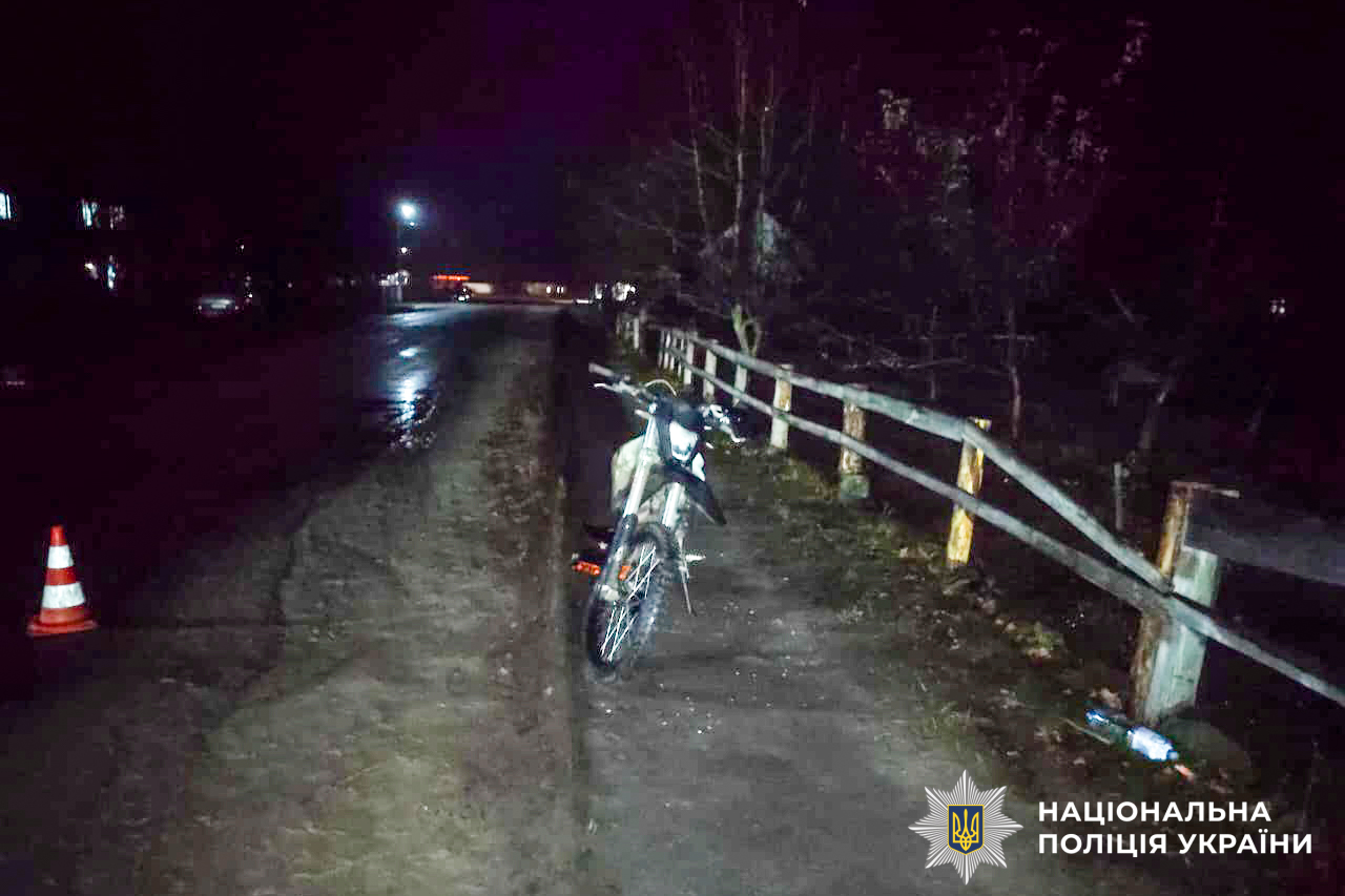 Слідчий попередньо встановив, що водій мотоцикла «Kovi», 17-річний місцевий житель, не вибрав безпечної швидкості руху, не впорався з керуванням та наїхав на металевий паркан.