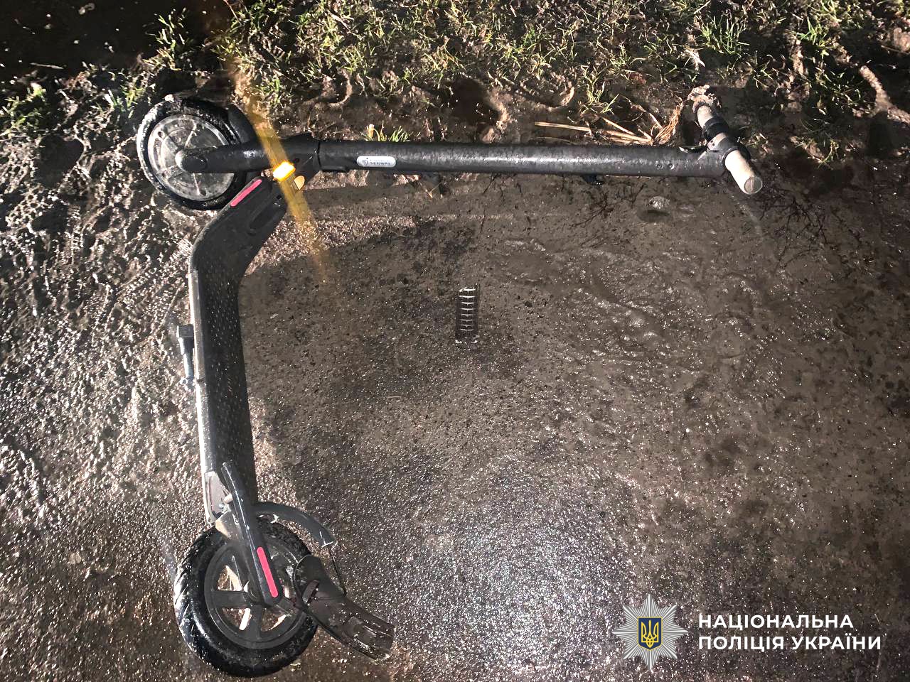 Поліцейські встановили, що водій автомобіля «ВМW», допустив наїзд на 11-річну дівчинку, яка їхала на електросамокаті в зустрічному напрямку. Кермувальник з місця події втік.