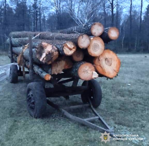 Учора, 17 листопада, на спецлінію 102 надійшло повідомлення від майстра лісу, що неподалік села Журавлине він виявив трактор із саморобним причепом, завантаженим свіжозрізаною деревиною.