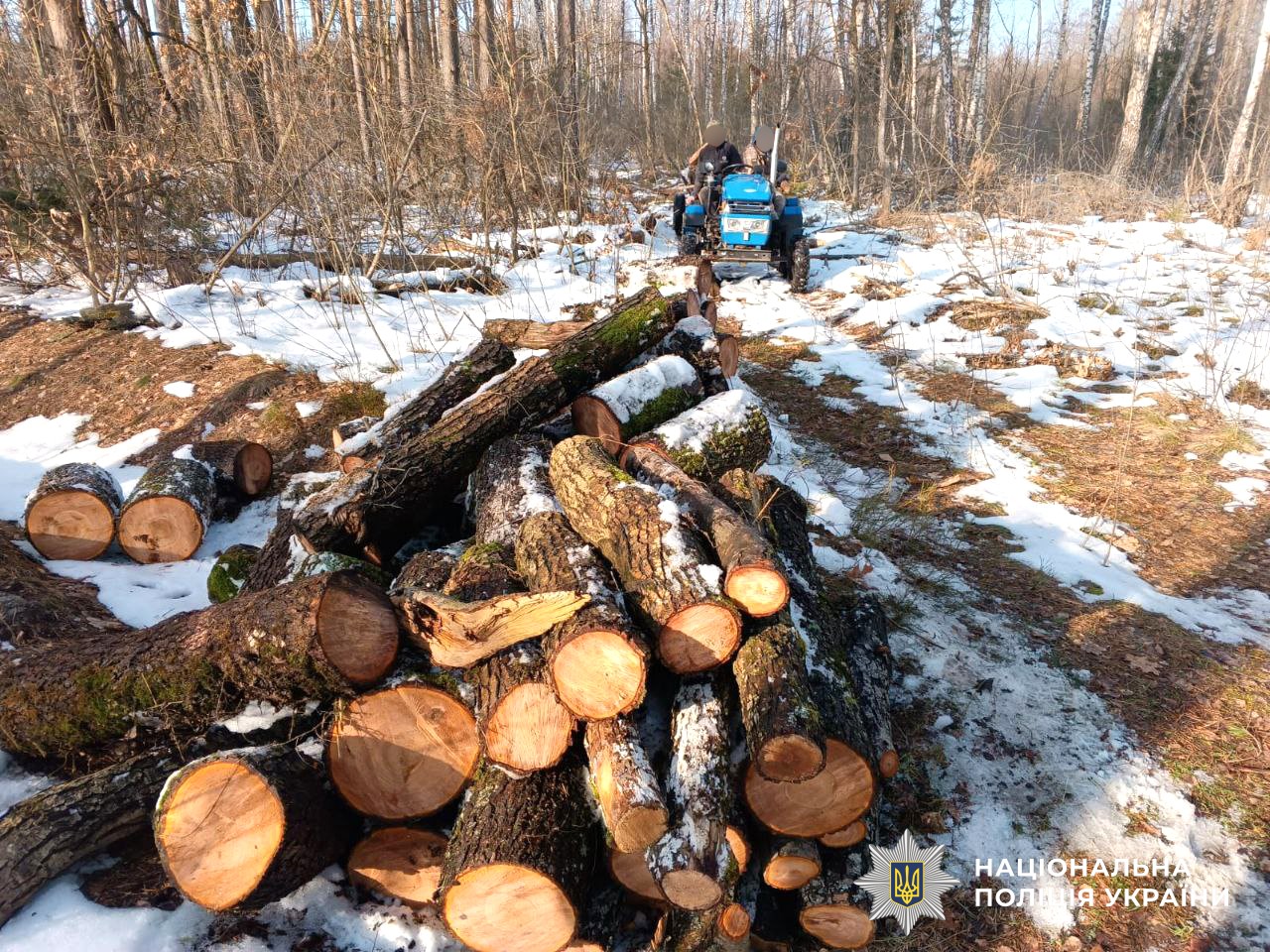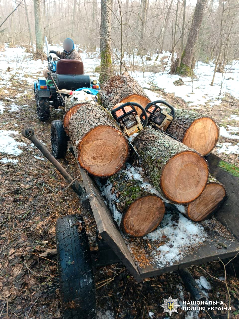 Із місця події правоохоронці вилучили лісопродукцію, незареєстрований у встановленому законом порядку мототрактор, гужову підводу та дві бензопили.