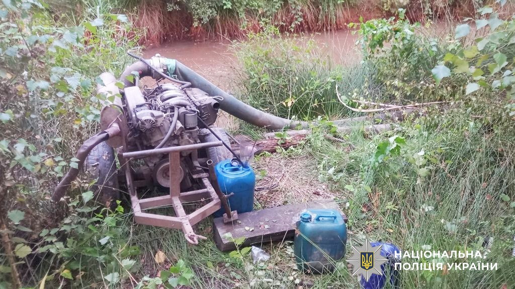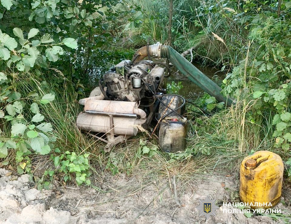 З місця події слідчо-оперативна група вилучила дві мотопомпи кустарного виробництва та обладнання: металеві тички, шрайбер, пожежні рукави тощо.