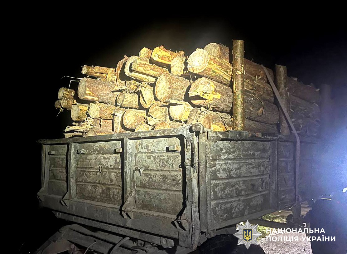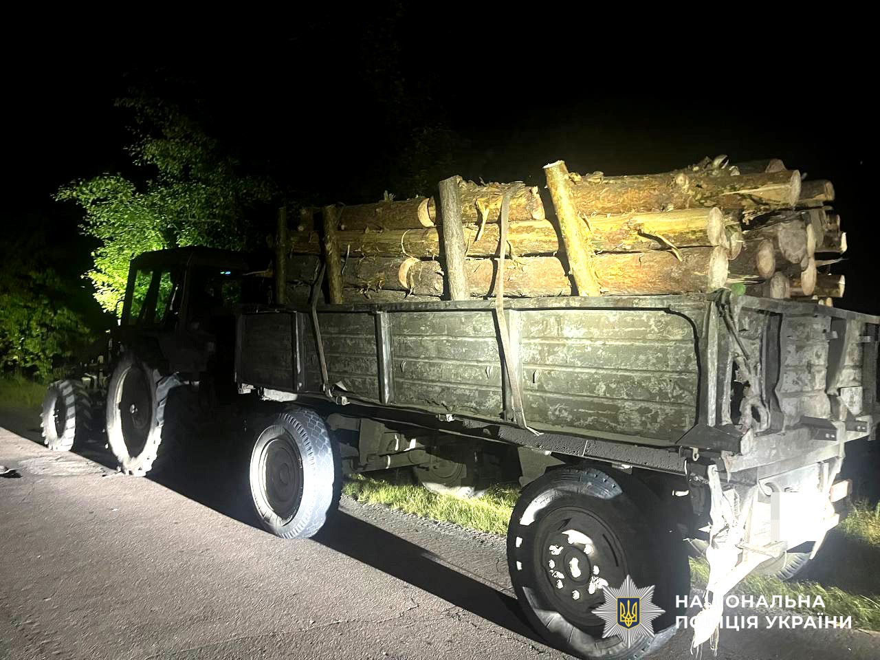 Слідчо-оперативна група задокументувала кримінальне правопорушення: за результатами проведеного огляду вилучено транспортний засіб із причепом, завантаженим сосновими колодами об'ємом орієнтовно сім метрів кубічних.