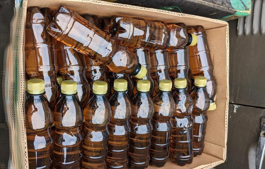 Під час перевірки документів 44-річний житель села Масевичі помітно нервував, казав, що поспішає, а у салоні — порожні коробки. Під час огляду транспортного засобу з'ясувалося, що чоловік перевозив 3566 пачок цигарок без акцизних марок. Крім того, у транспортному засобі був і фальсифікований алкоголь: 340 скляних пляшок ємністю по 0,5 літра, 45 пакетів по 9 літрів кожен, 1400 пластикових пляшок по 0,5 л та 30 — літрових.