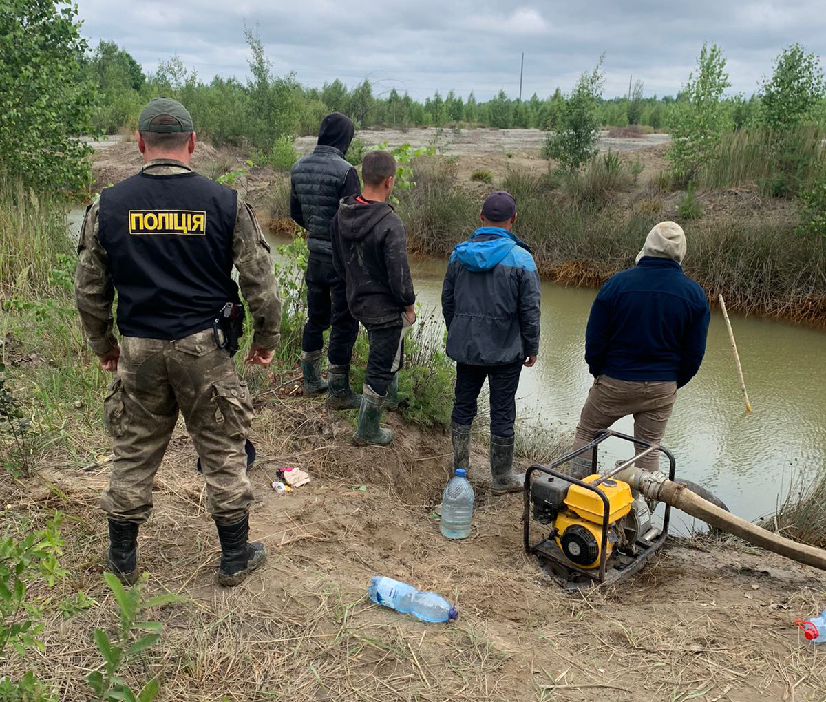 Жителі Володимирця віком від 24 до 31 років за допомогою мотопомпи кустарного виробництва шляхом гідророзмиву ґрунту видобували «сонячне» каміння.